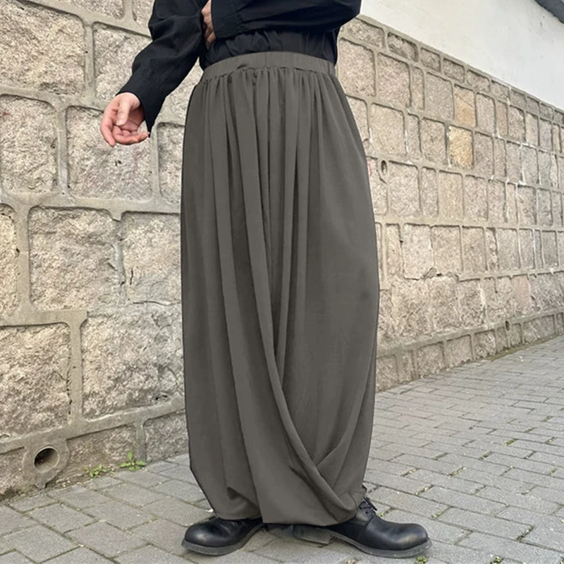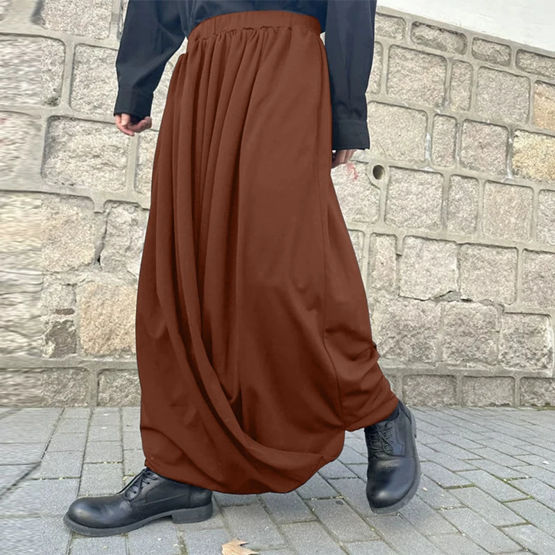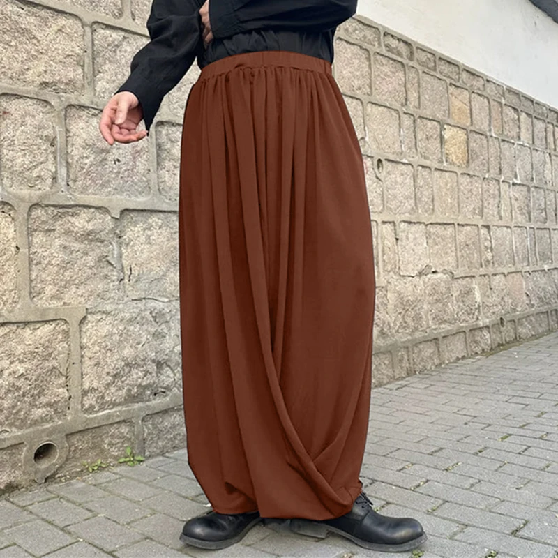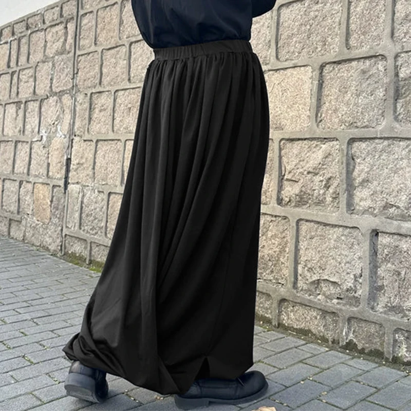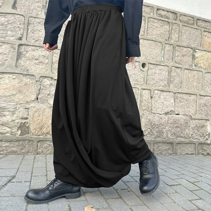 WIAOFELLAS - Men Irregular Pants Solid Color Joggers Elastic Waist Joggers Wide Leg Trousers Skirts Streetwear Loose Long Pants