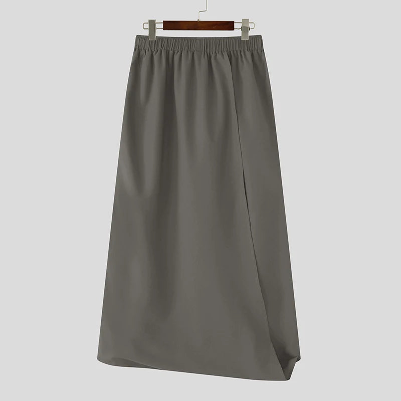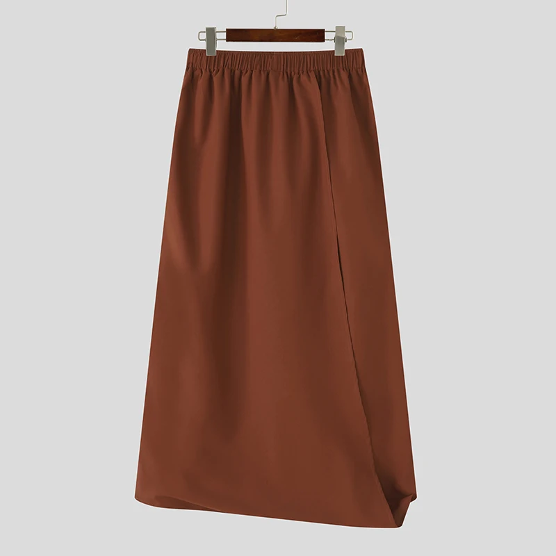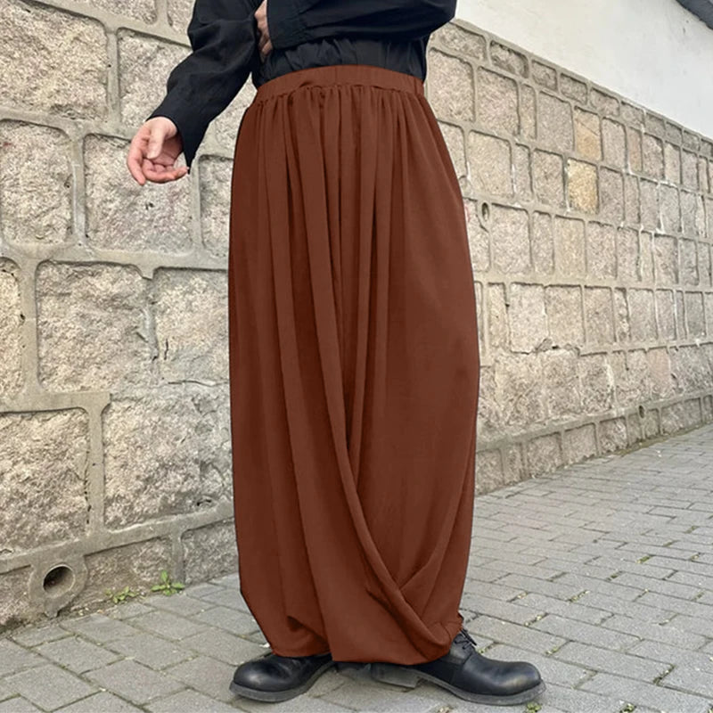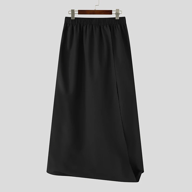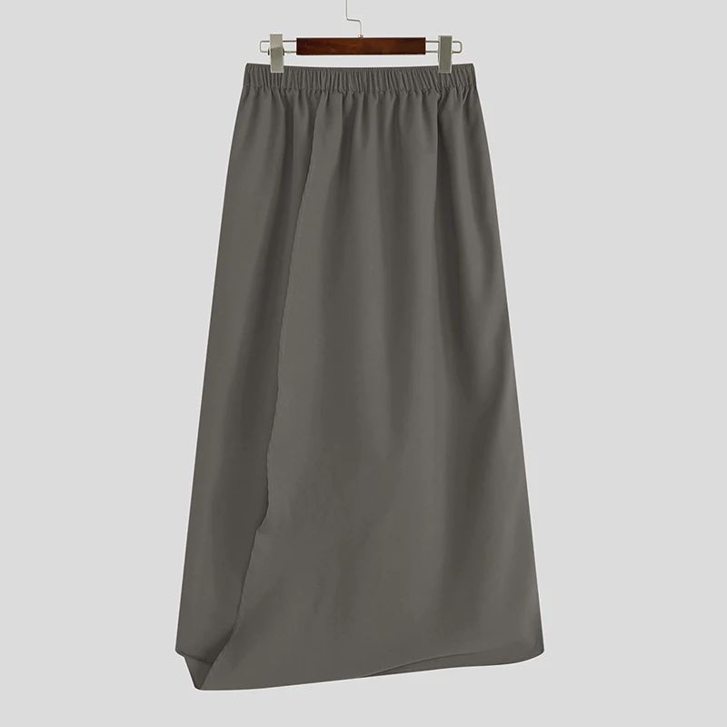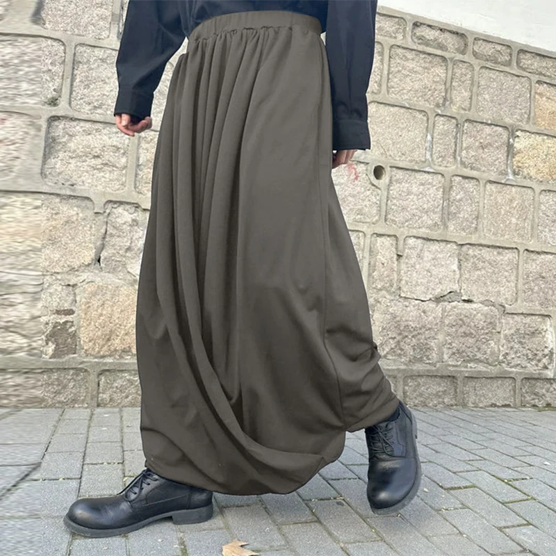 WIAOFELLAS - Men Irregular Pants Solid Color Joggers Elastic Waist Joggers Wide Leg Trousers Skirts Streetwear Loose Long Pants