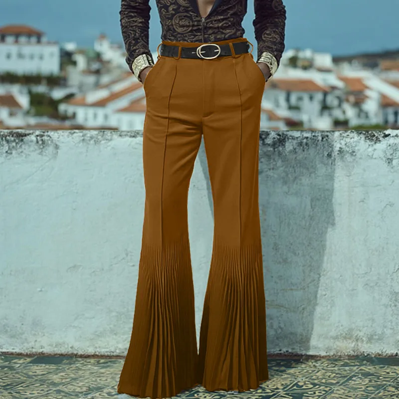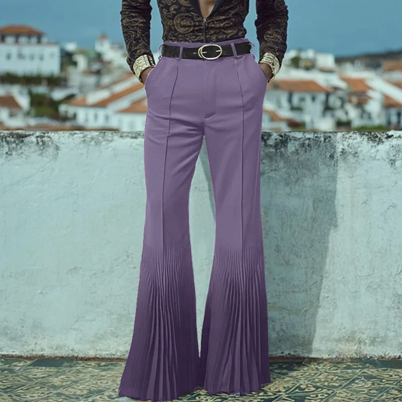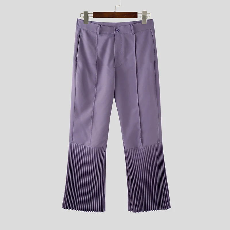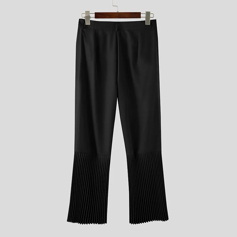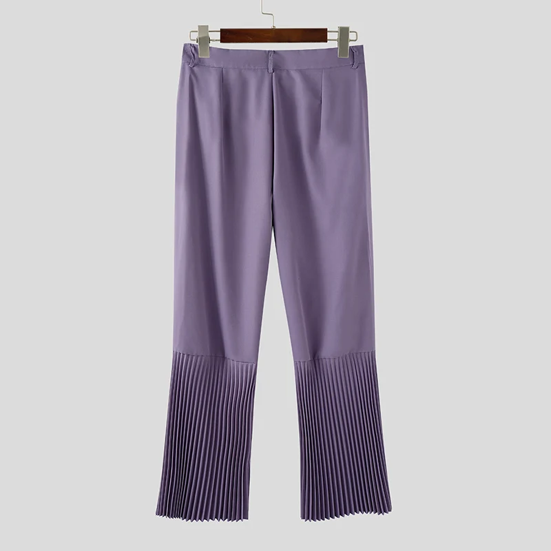 WIAOFELLAS - Men Pants Solid Color Button Pleated Casual Trousers Men Streetwear Loose Joggers Personality Fashion Male Flare Pants
