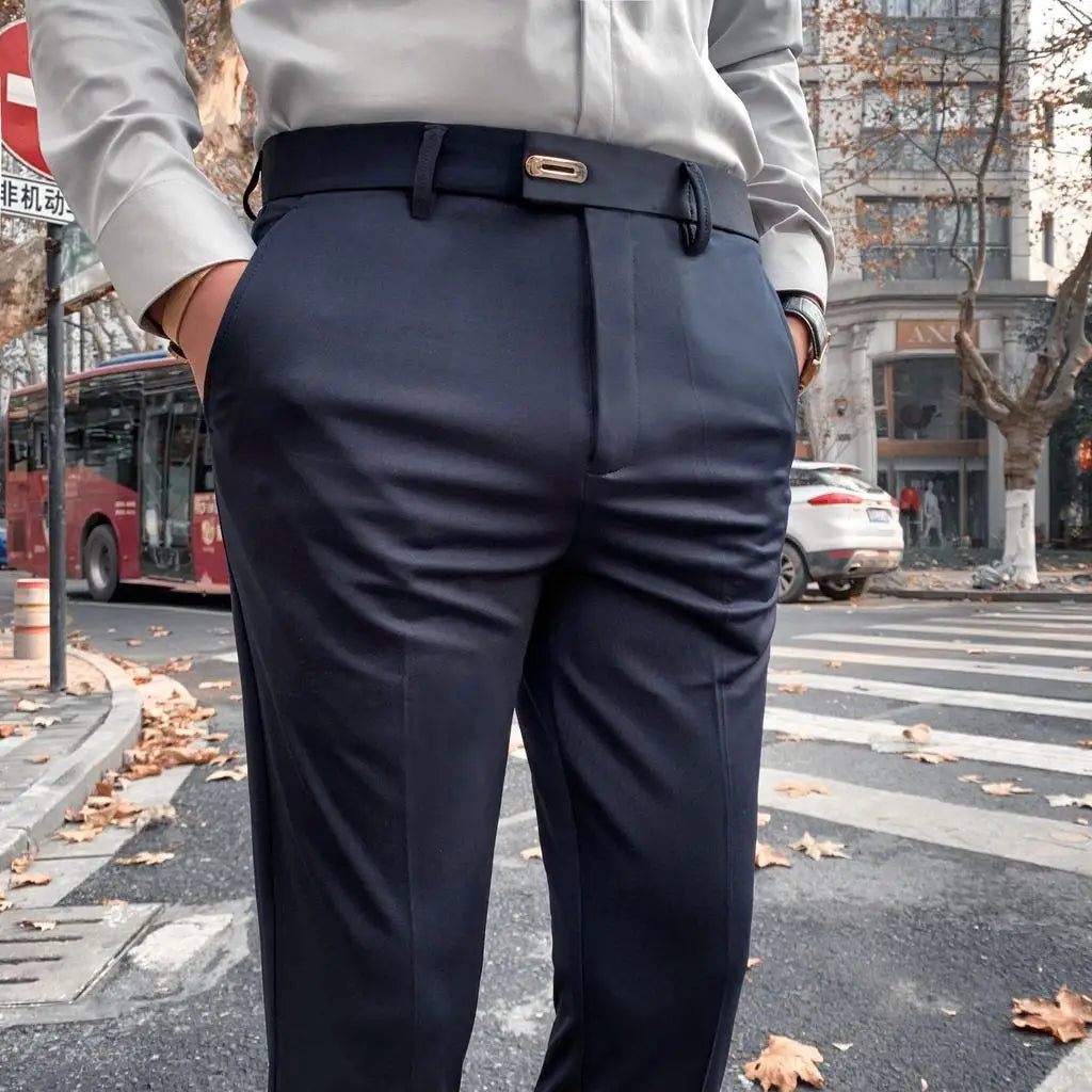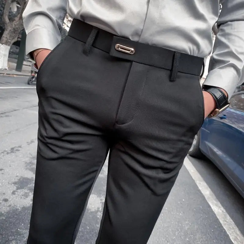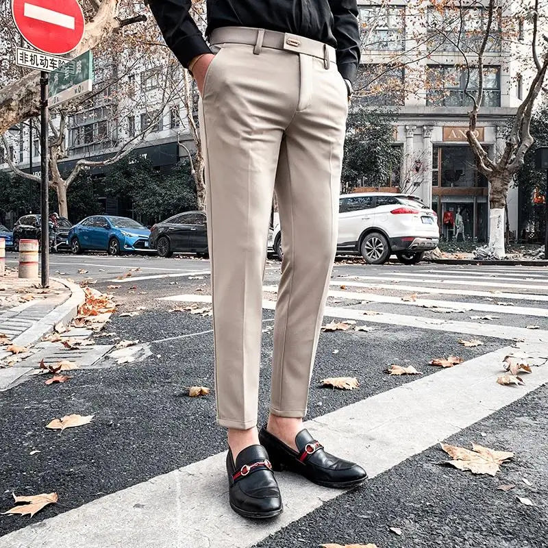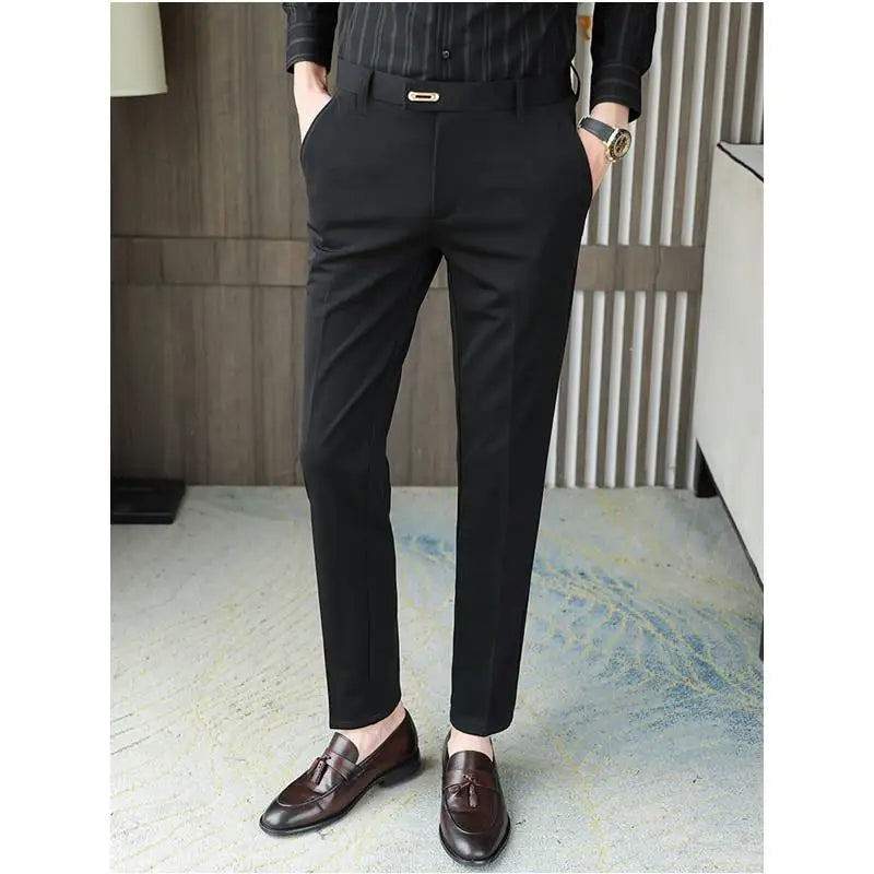 WIAOFELLAS  -  Men Pants Spring Summer Autumn  Casual Slim Elastic Long  Business Trousers Chinos Slacks Ankle Length Black Blue