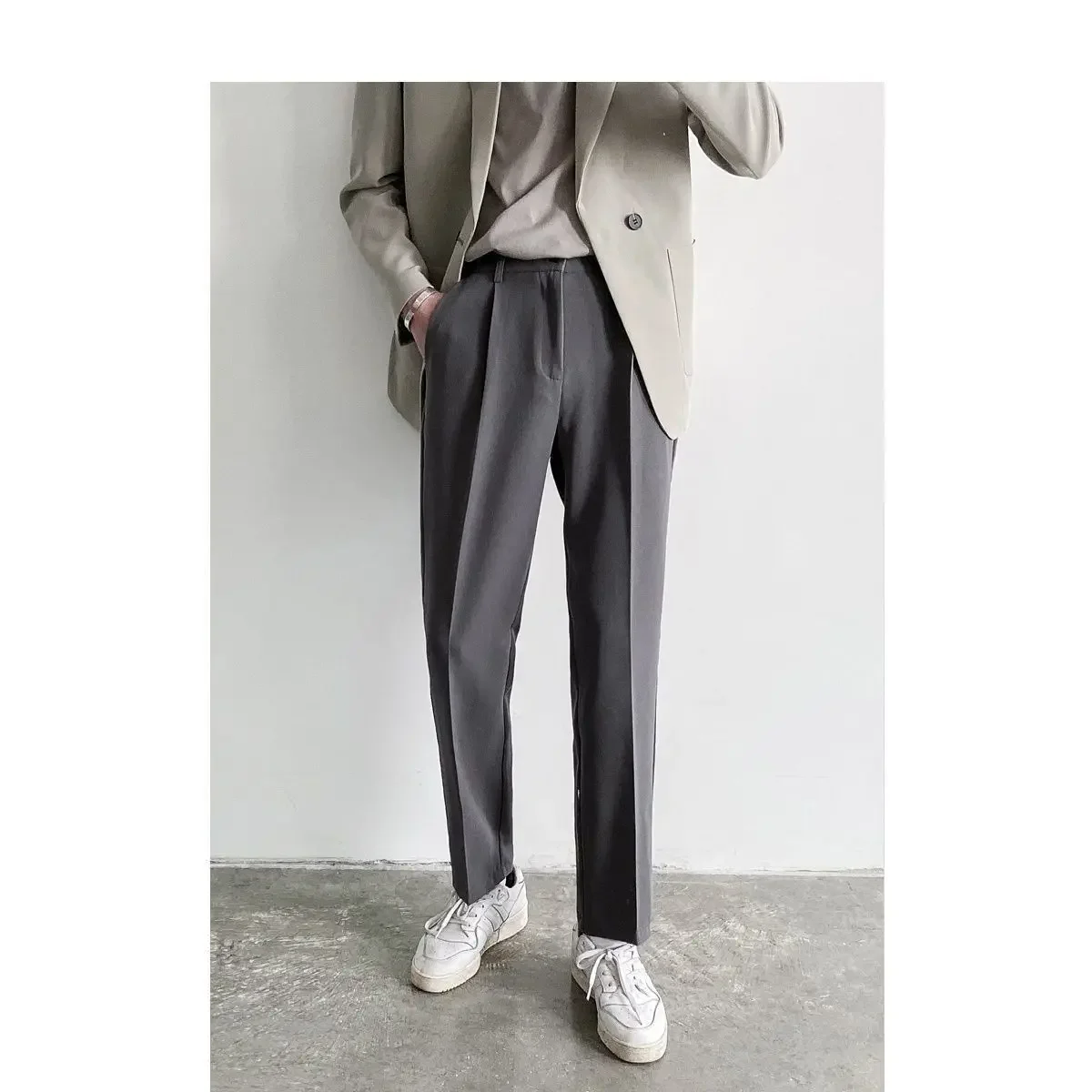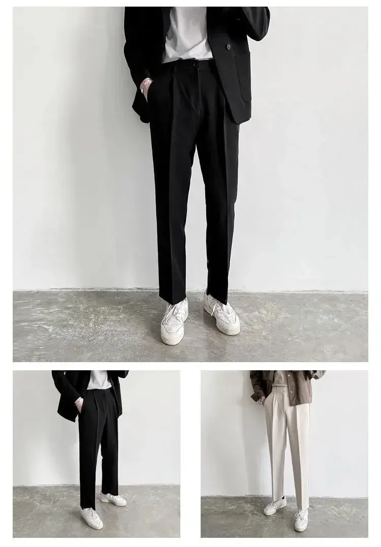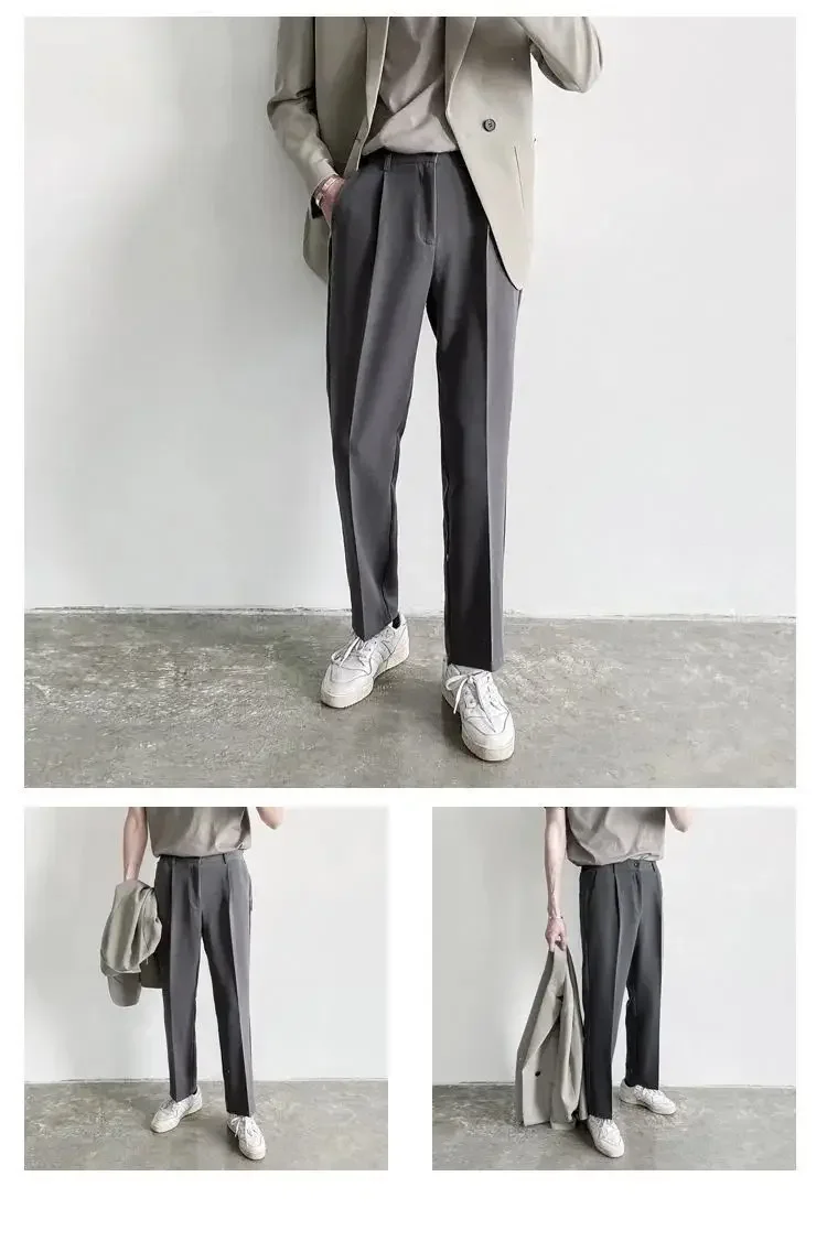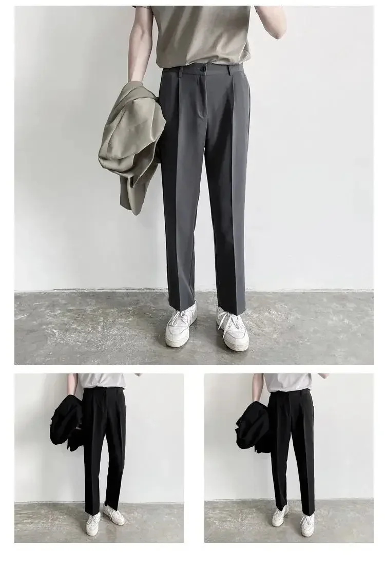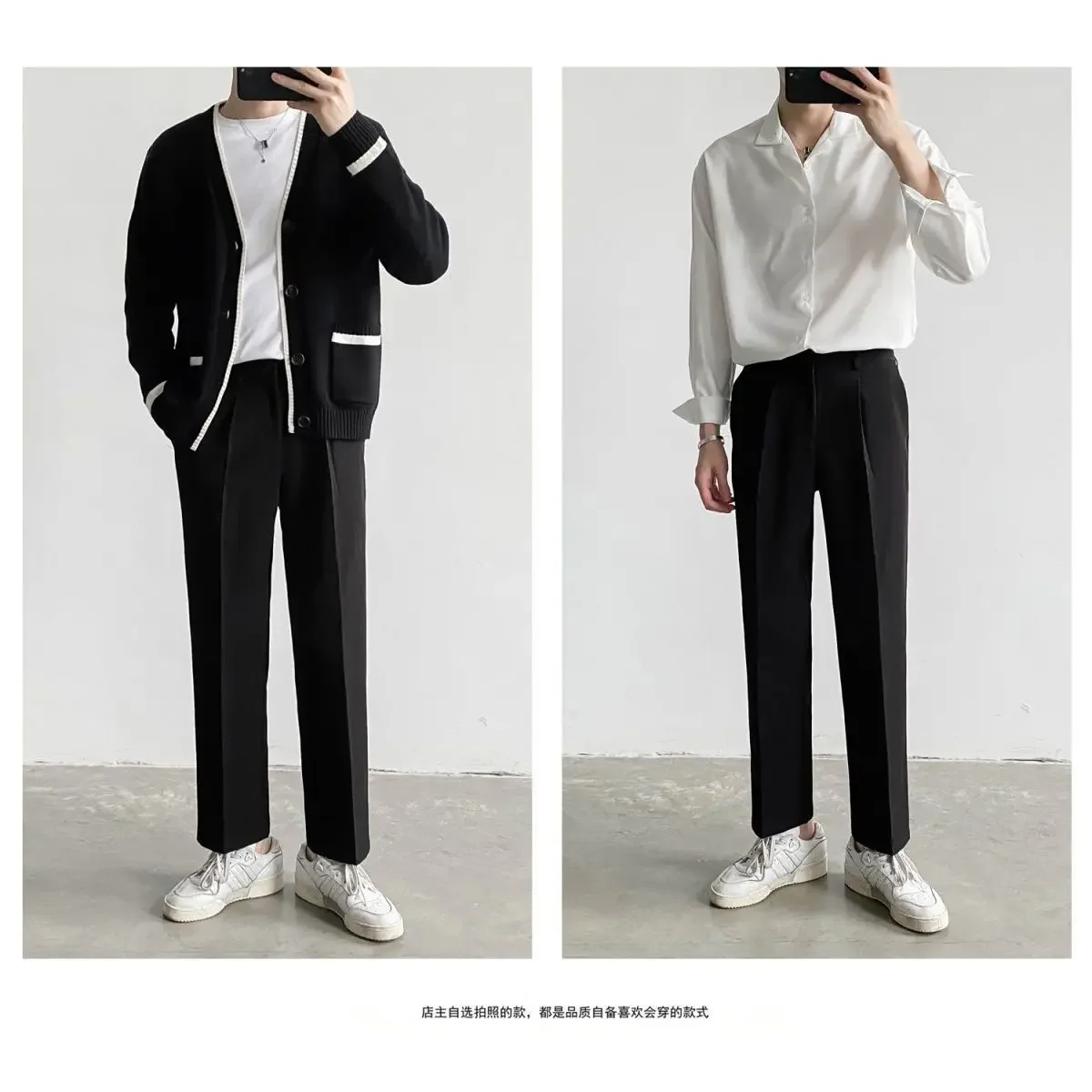 WIAOFELLAS - Men Small Trousers Spring and Summer New Korean Style Trendy Nine-point Casual Straight Loose Wide-leg Pants