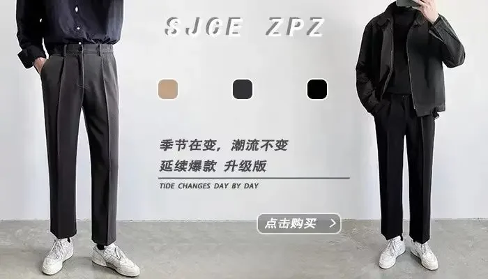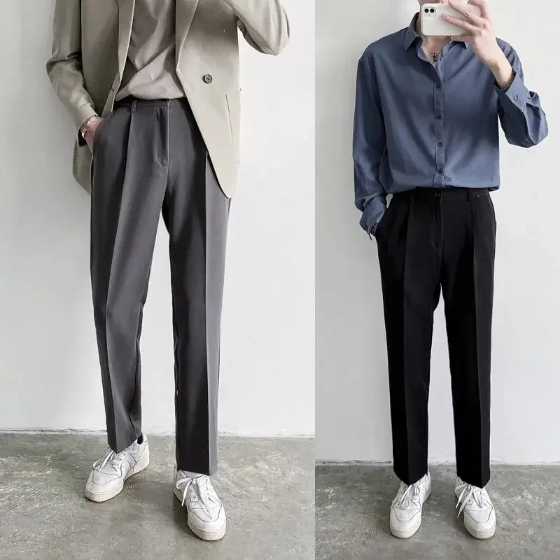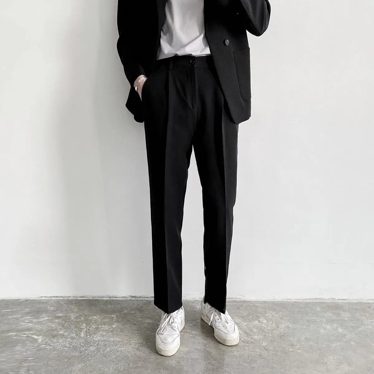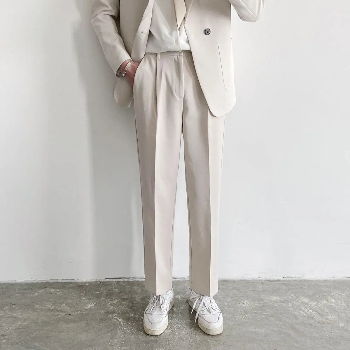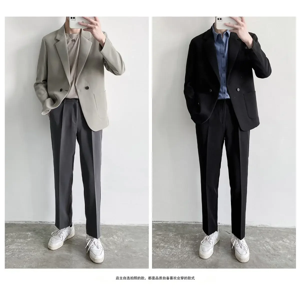WIAOFELLAS - Men Small Trousers Spring and Summer New Korean Style Trendy Nine-point Casual Straight Loose Wide-leg Pants