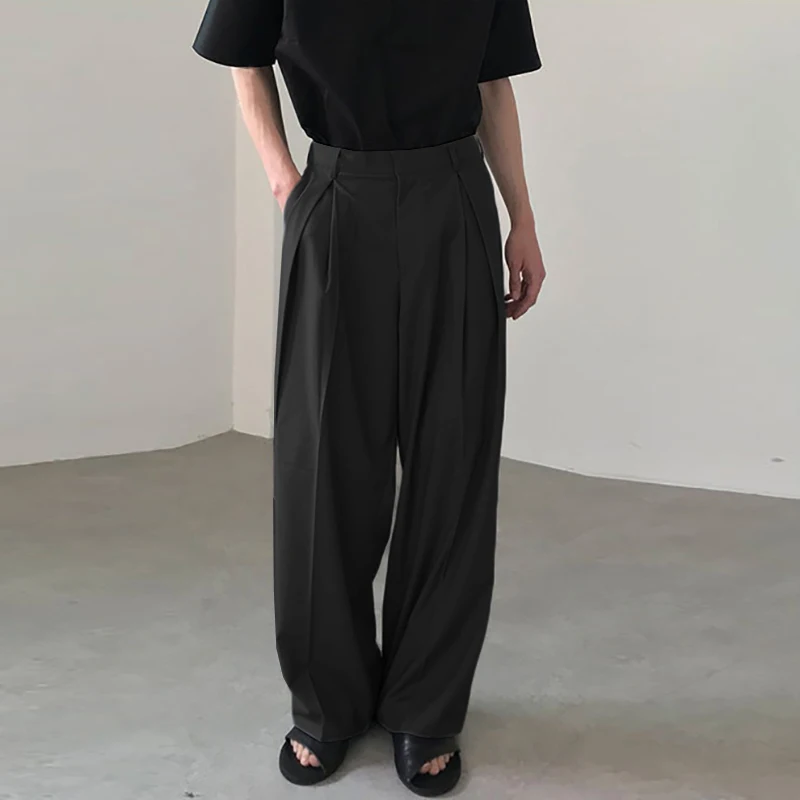 WIAOFELLAS - Men Straight Pants Joggers Solid Color Korean Streetwear Fashion Casual Trousers Men Loose Leisure Long Pants S-5XL INCERUN
