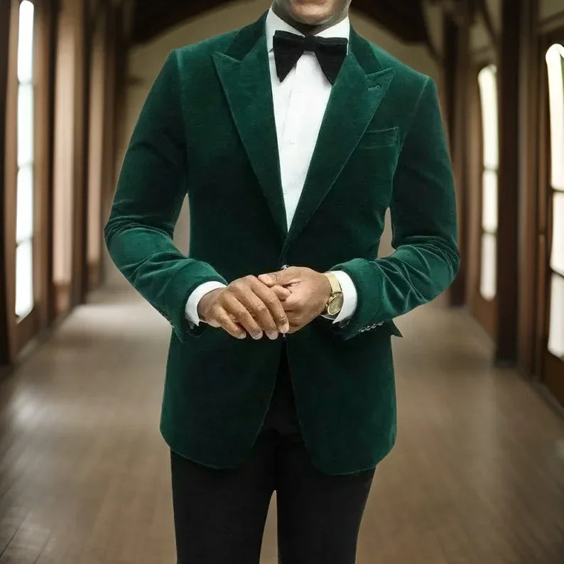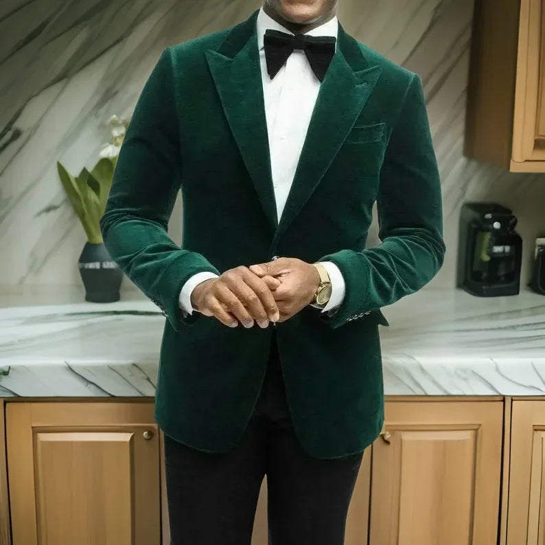 Wiaofellas  -  Men Suits For Wedding Bridegroom Velvet Wedding Tuxedos Slim Fit Male Fashion Peak Smoking Blazer 2 Pcs (Jacket+Pants)