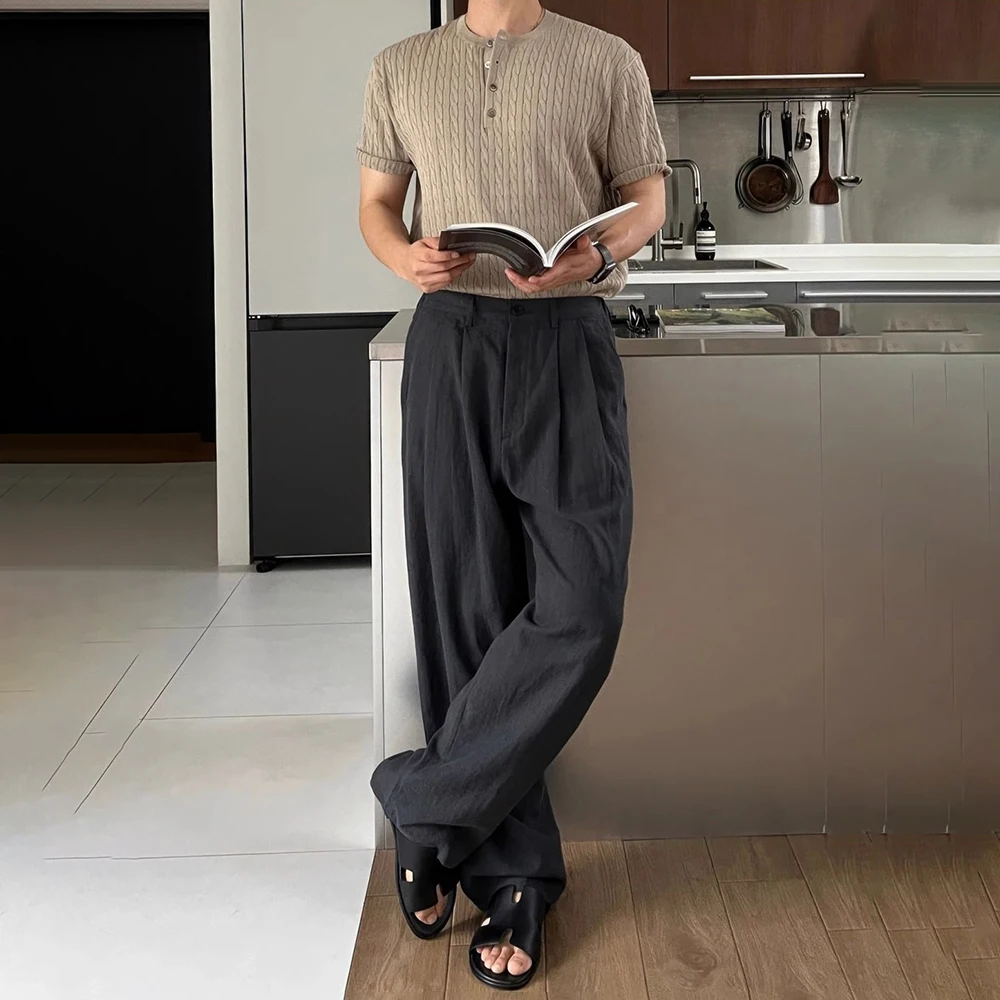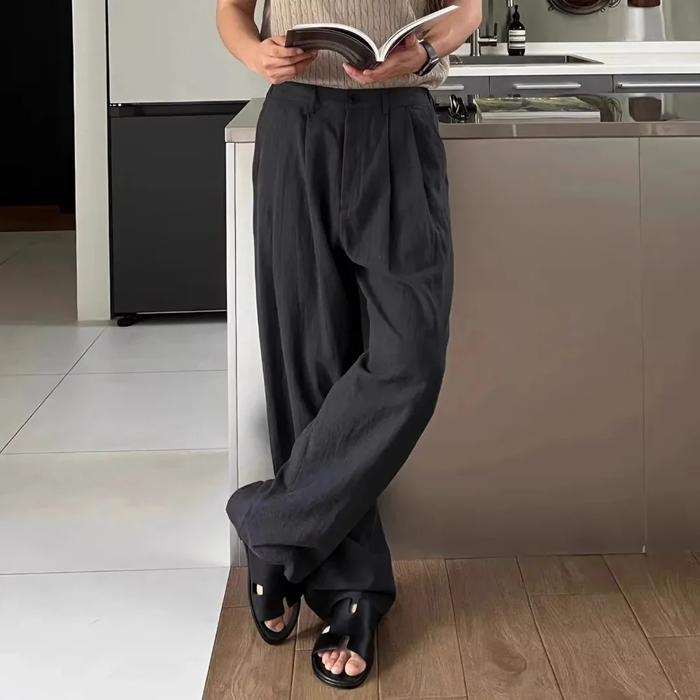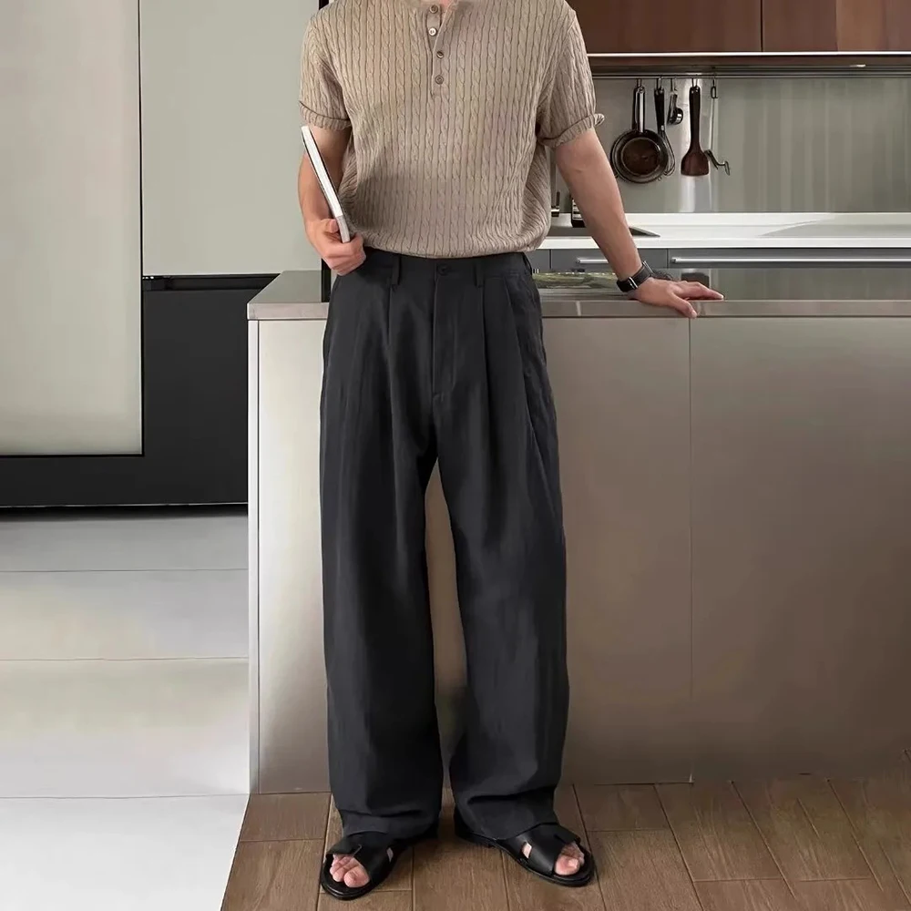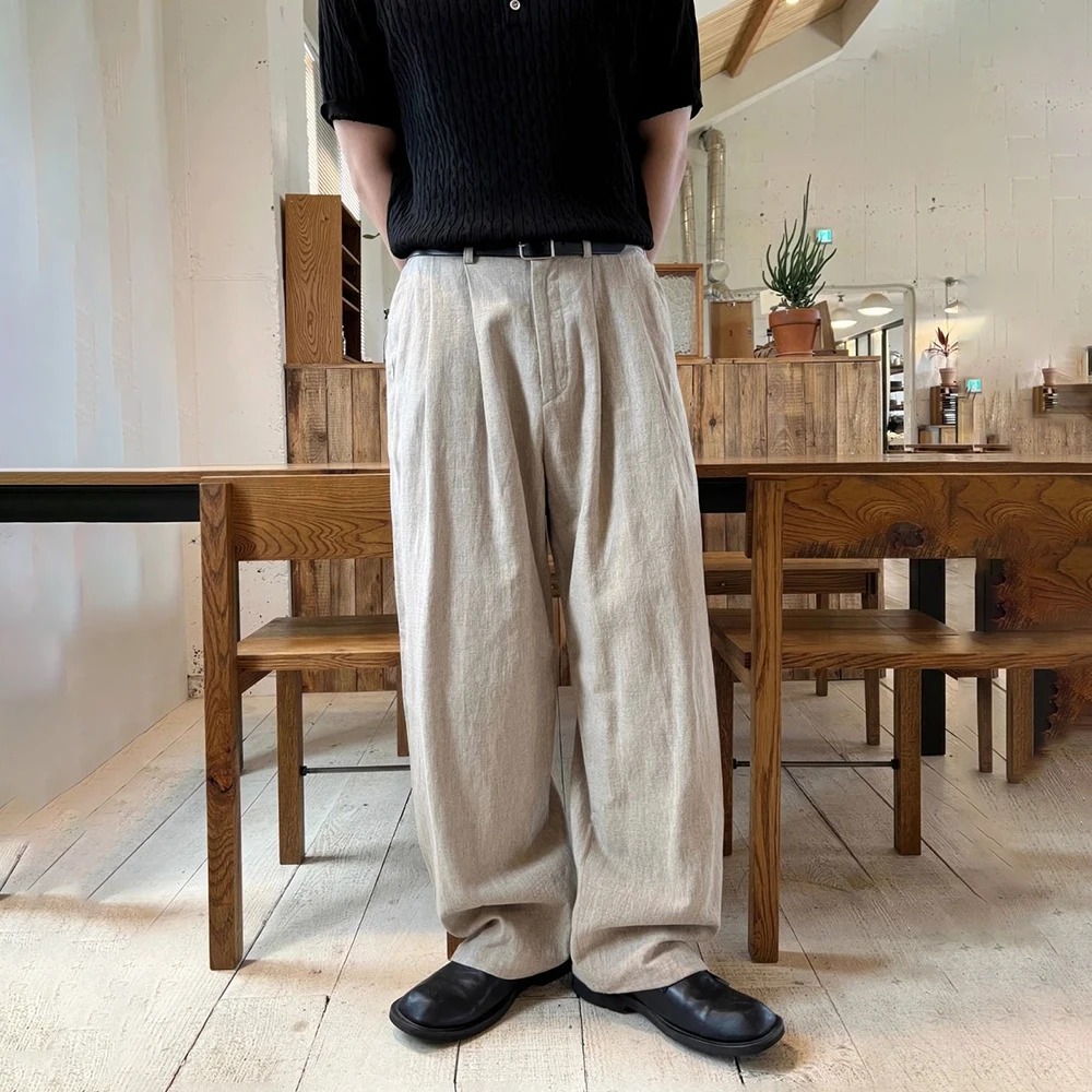 WIAOFELLAS  -  Men Trousers Linen Retro Army Green Casual Pants Autumn Japanese Style Simple Daily Versatile Wide-Leg Pants Men'S Clothing