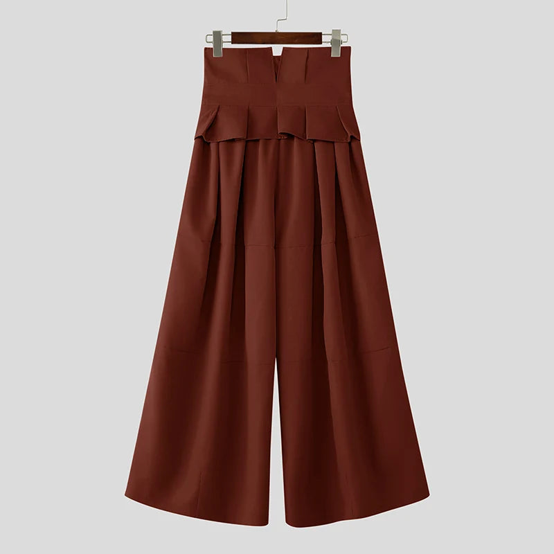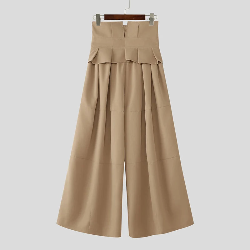 WIAOFELLAS - Men Wide Leg Pants Solid Color High Waist Joggers Casual Trousers Men Pleated Streetwear 2025 Fashion Male Pants S-5XL