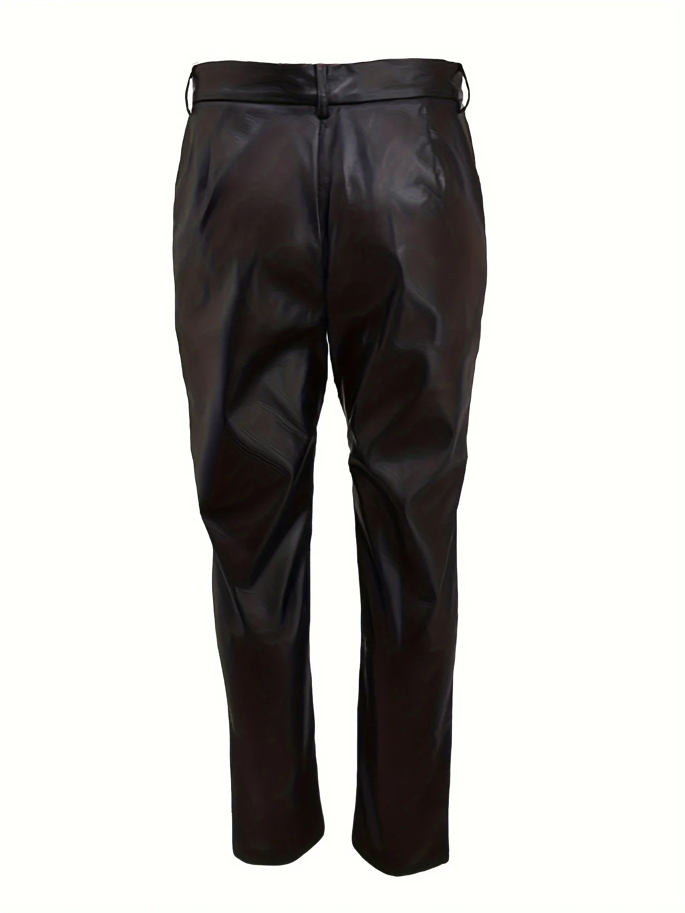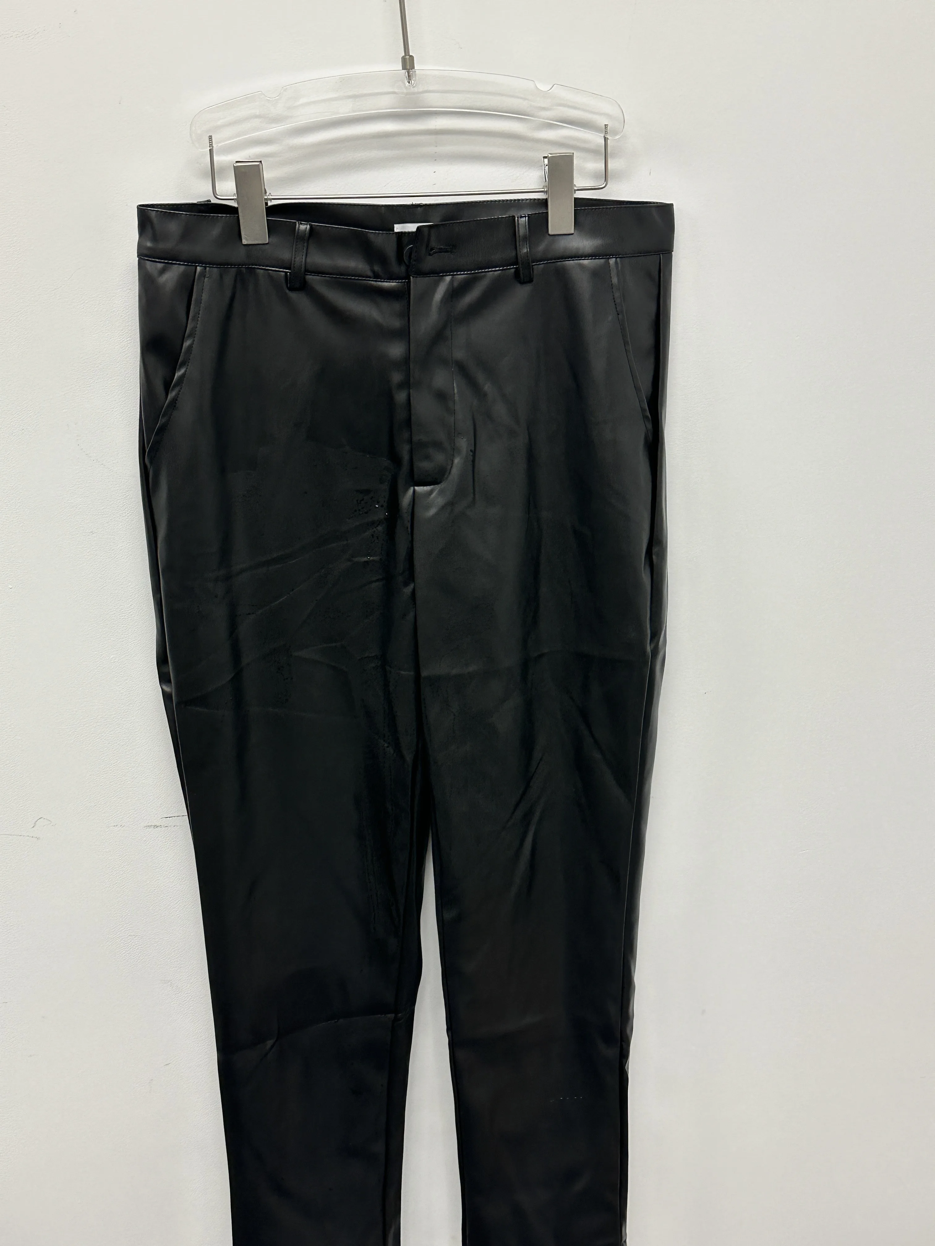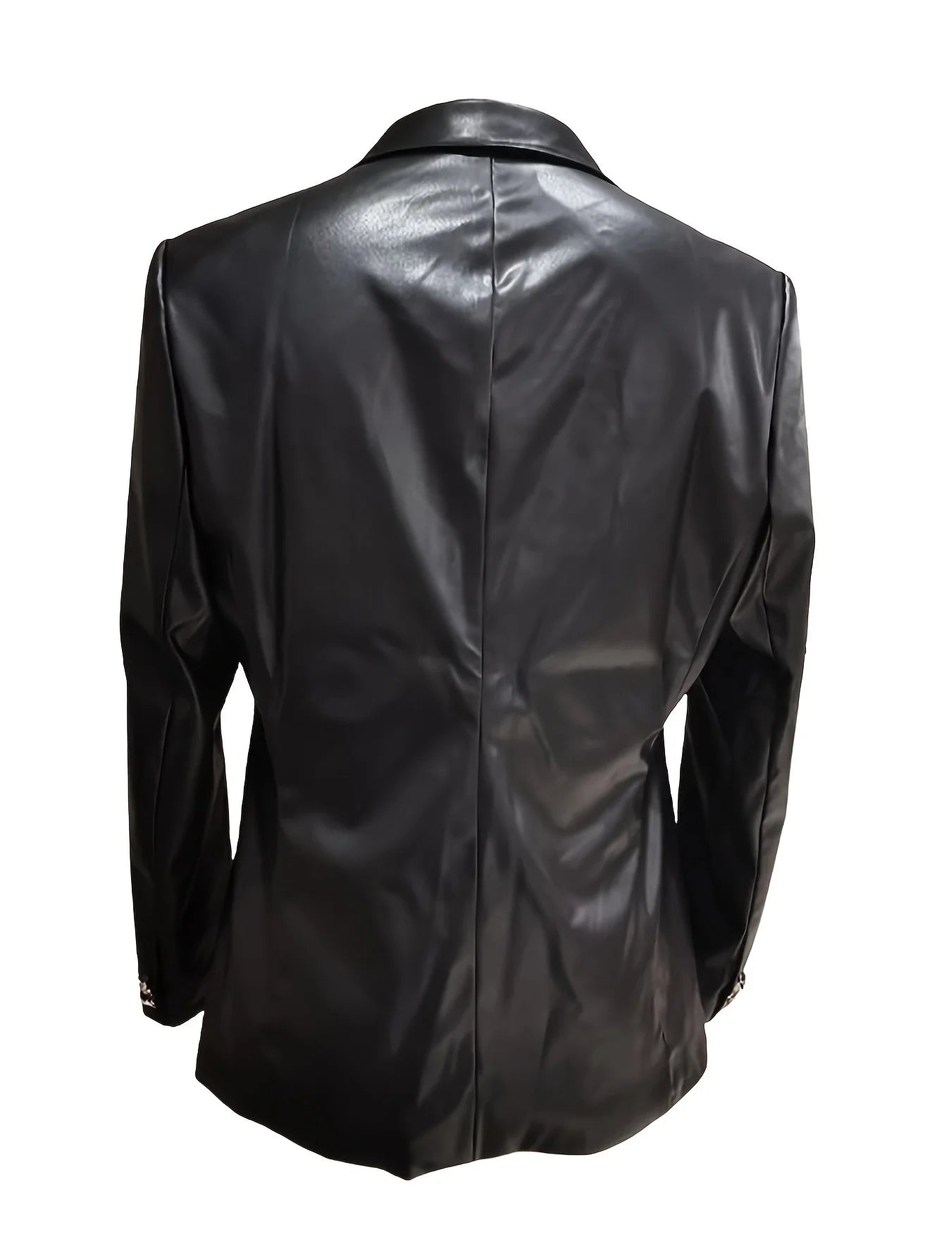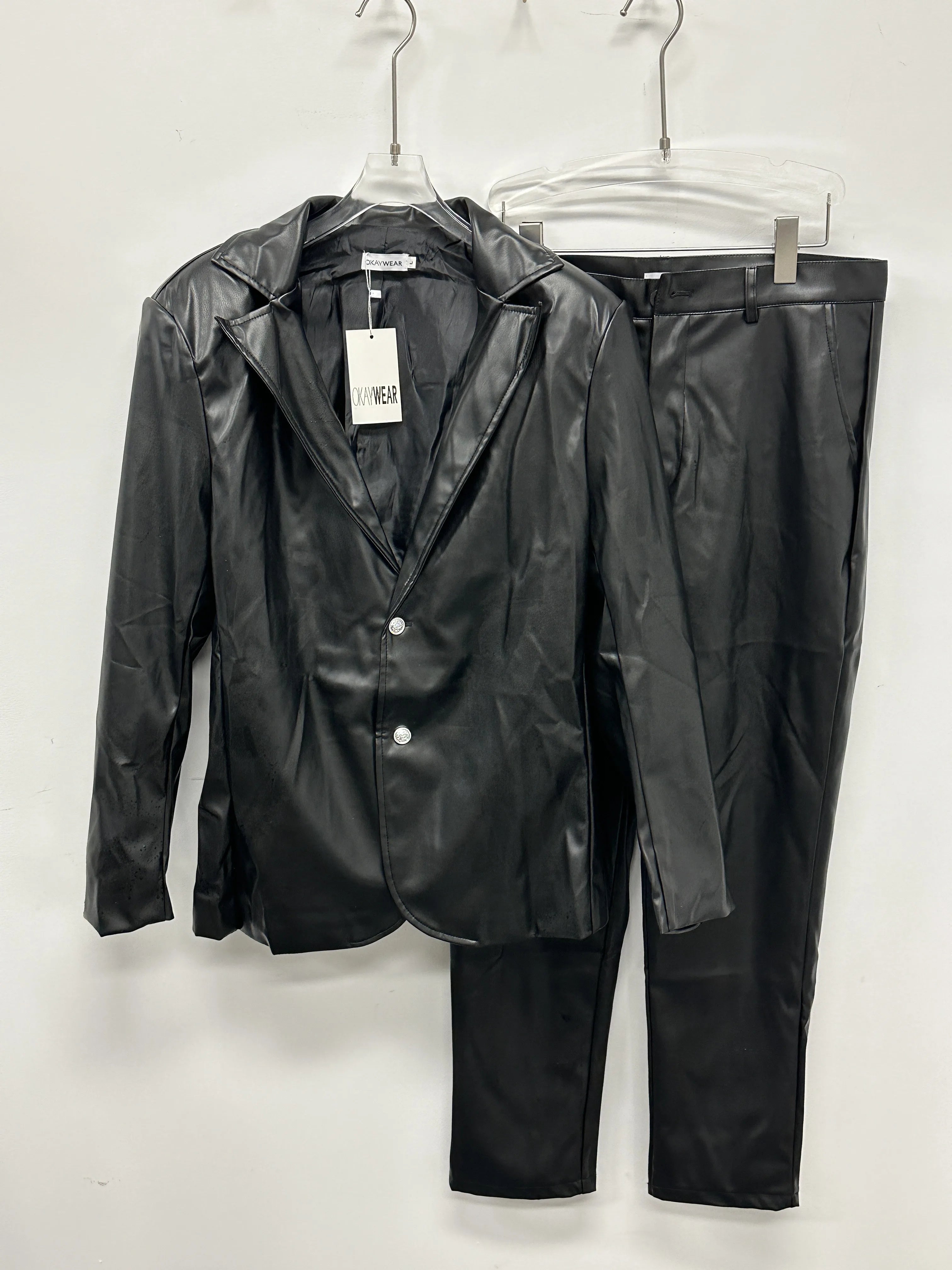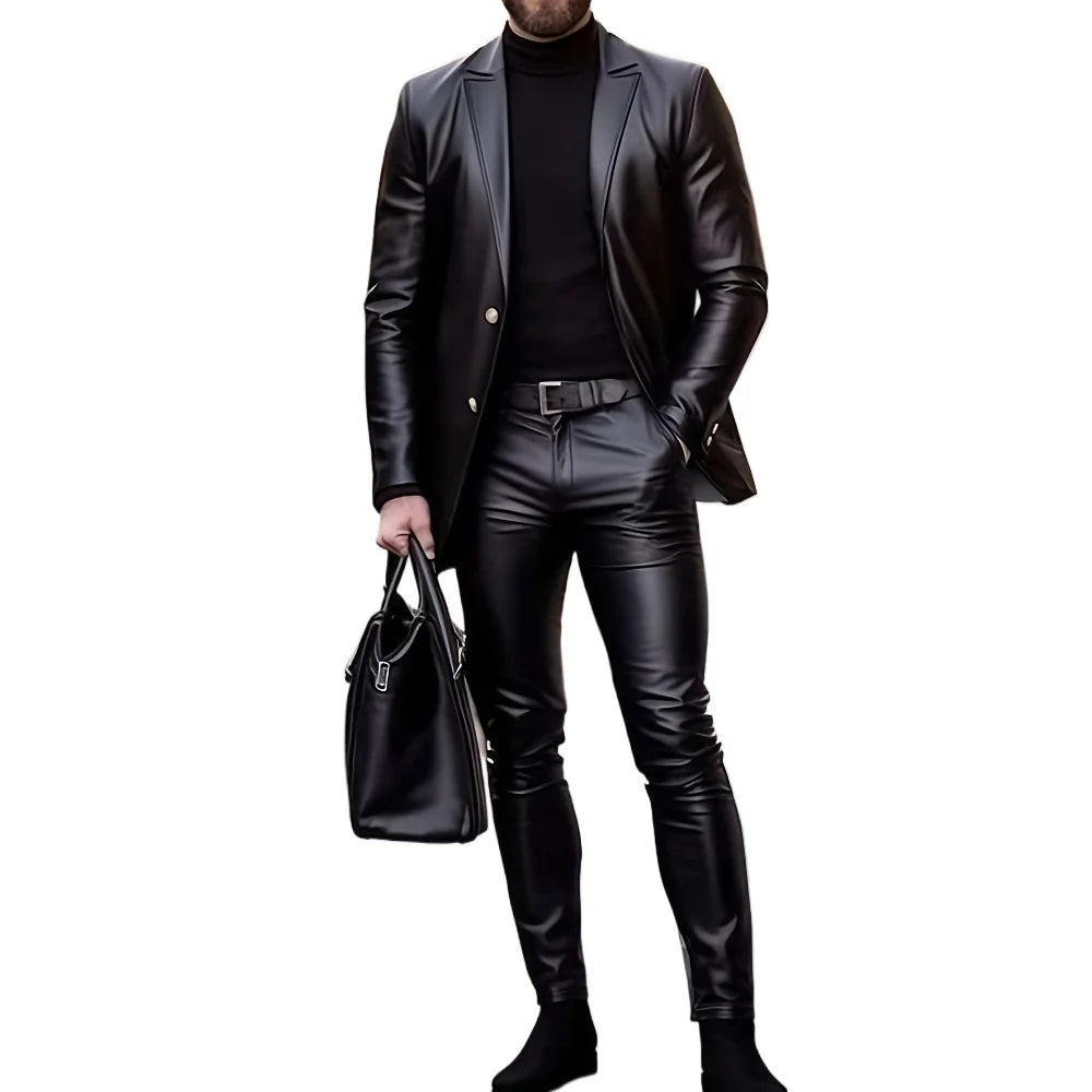 Wiaofellas - Men's Blazer & Pants 2Pcs Set Slim Fit Black Lapel PU Leather Jacket & Pants 2Pcs Set Male Business Casual Prom Suit Moto style