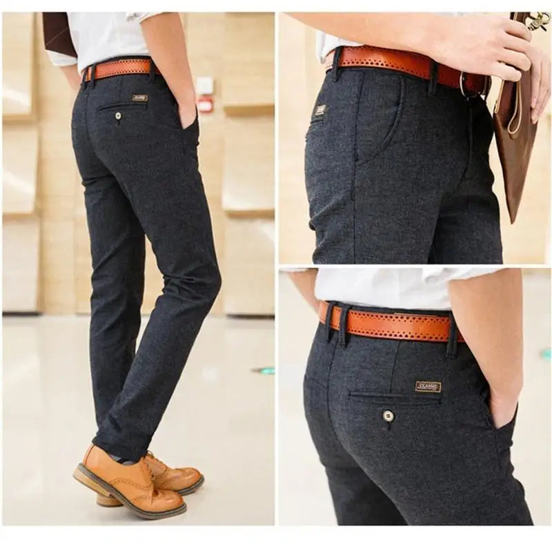 WIAOFELLAS - Mens Casual Business Chinos Pants Straight Suit Trousers Size 28-38