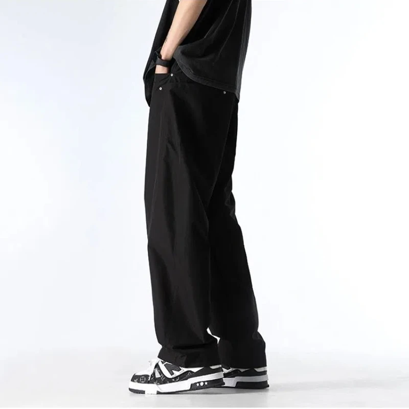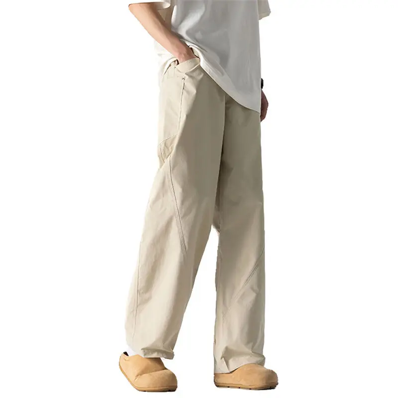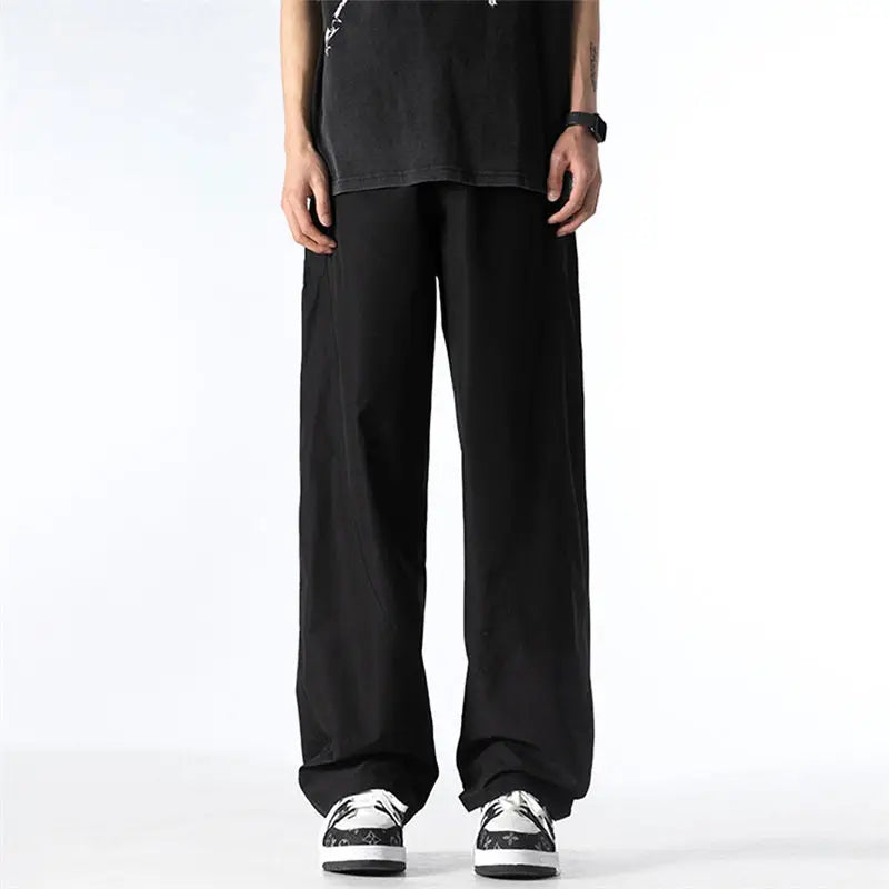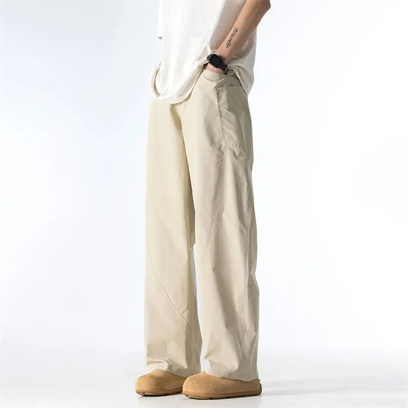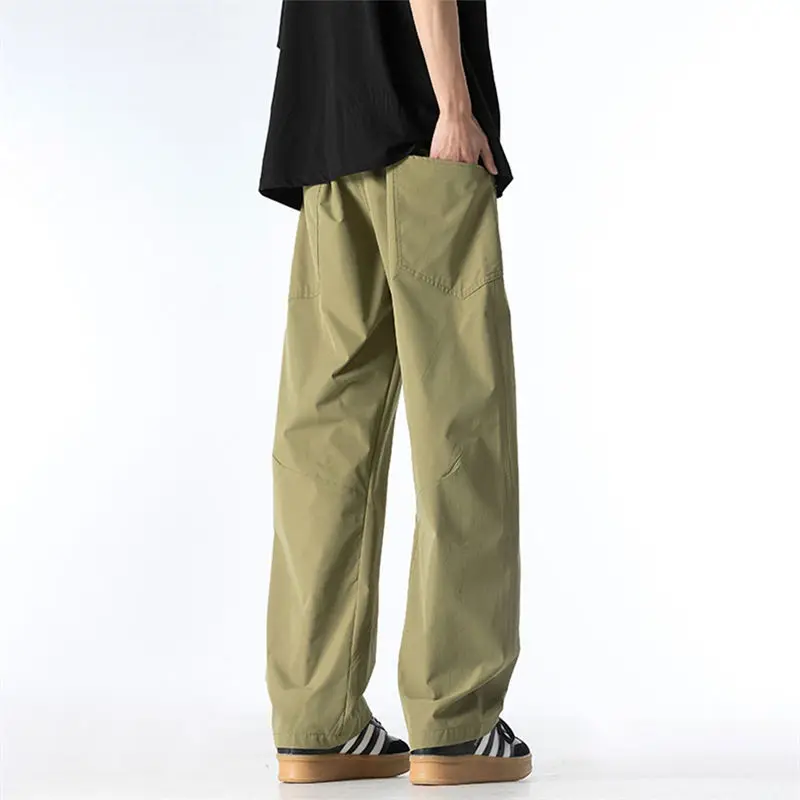 WIAOFELLAS - Men's Clothing Loose Fashionable Elastic High Waisted Pockets Spring Autumn England Style Trousers Cargo Wide Leg Cropped Pants