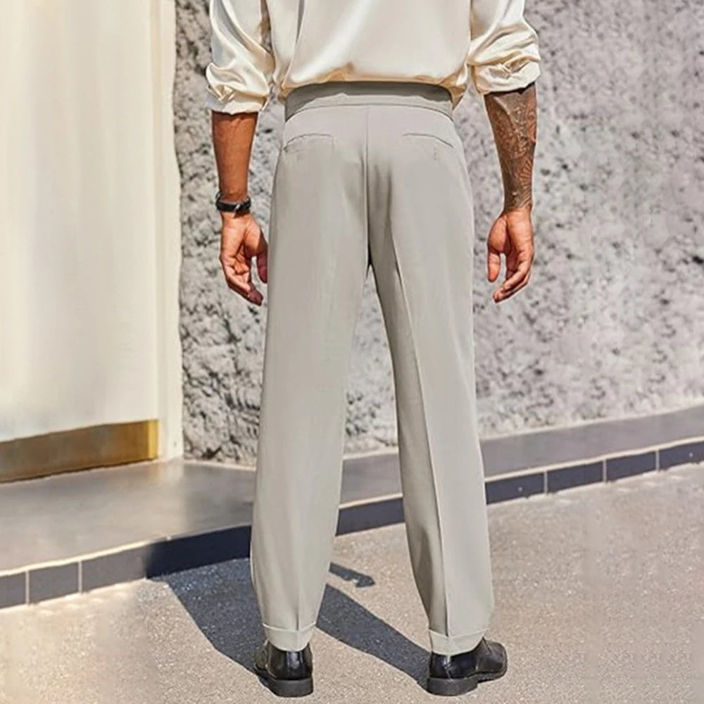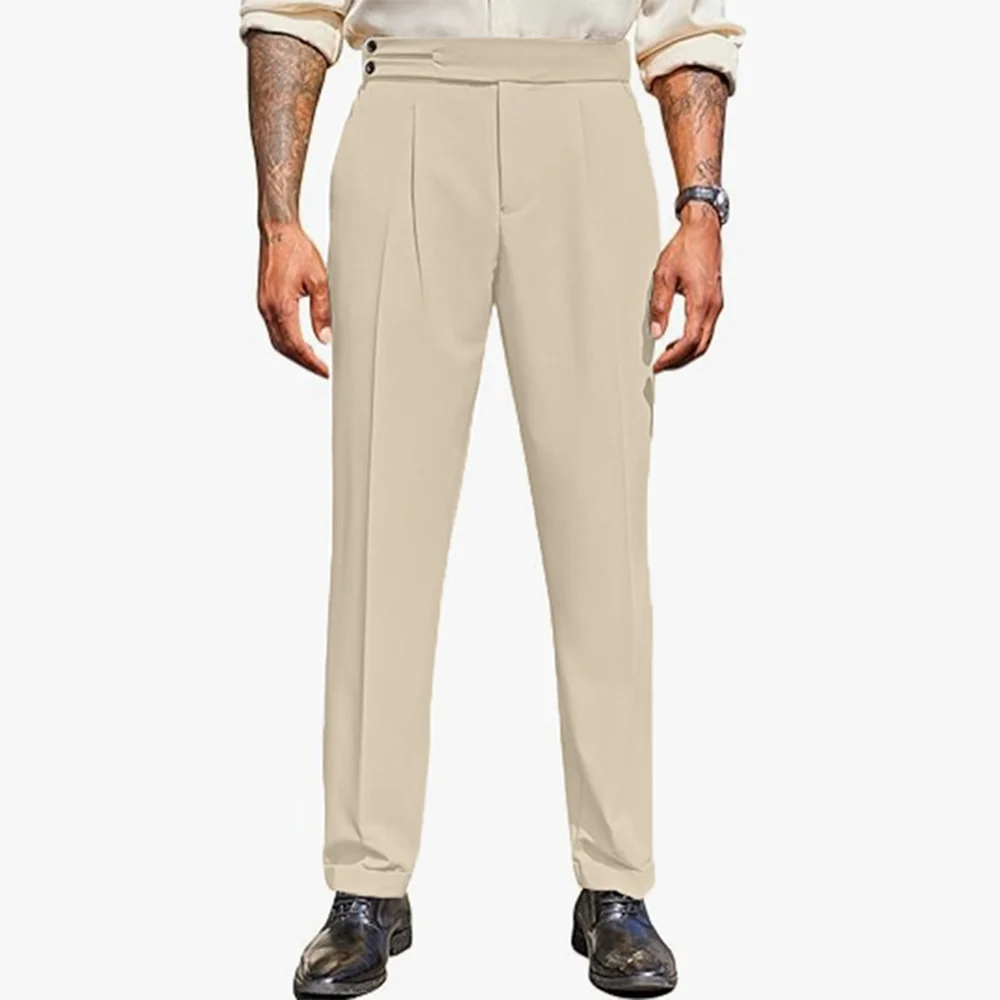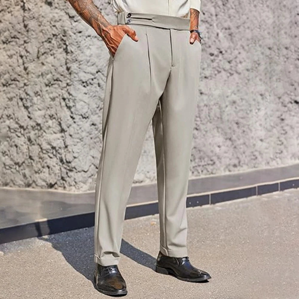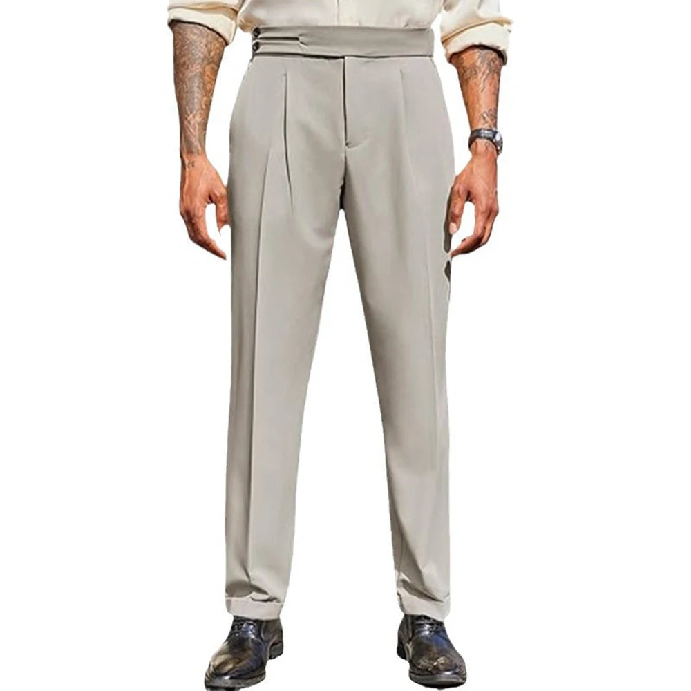 WIAOFELLAS - Mens Formal Straight Pants Business Side Buckle Casual Pants Classic Fashion British Style Elegant Trousers Men'S Clothing 2025