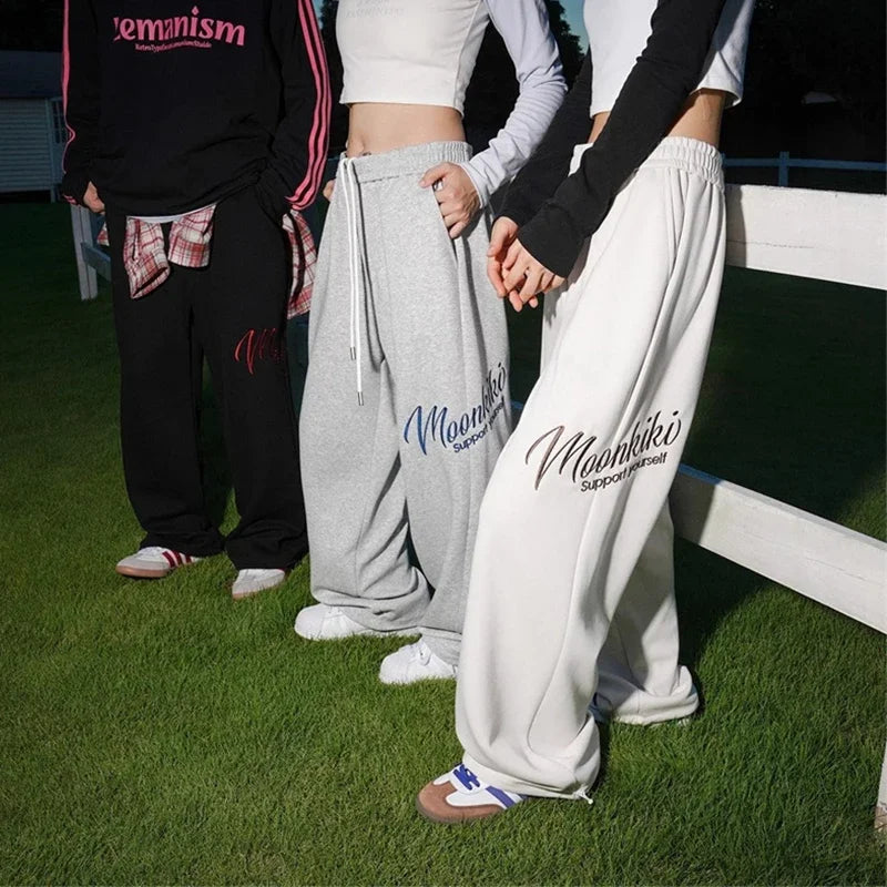 WIAOFELLAS  -  Men's Hip Hop Fashion Letter Printed Wide Leg Pants 2025 Y2K Streetwear Baggy Straight Pantalones Hombre New Gym Sports Trousers