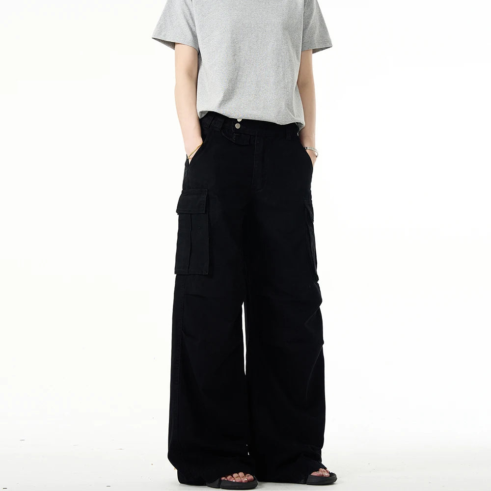 WIAOFELLAS  -  Mens Pants Cargo Multi-Pocket Casual Pants Autumn Streetwear Fashion Daily Micro-Flared Wide-Leg Pants Men'S Clothing 2025 New