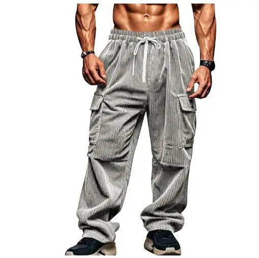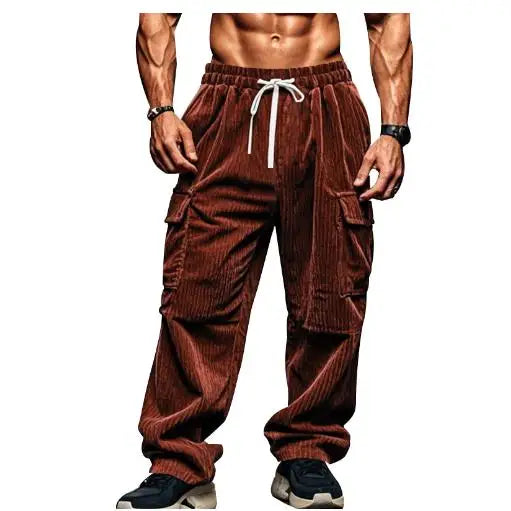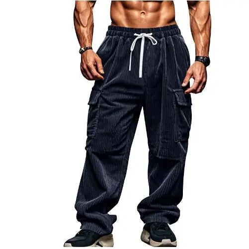 WIAOFELLAS - Men's Pants Corduroy Autumn Casual Breathable Wide-leg Multi-pocket Straight Trousers Loose Bottoms PLus Size XXXL
