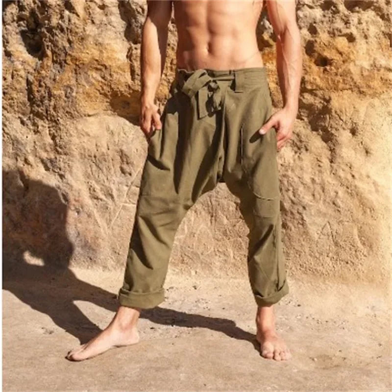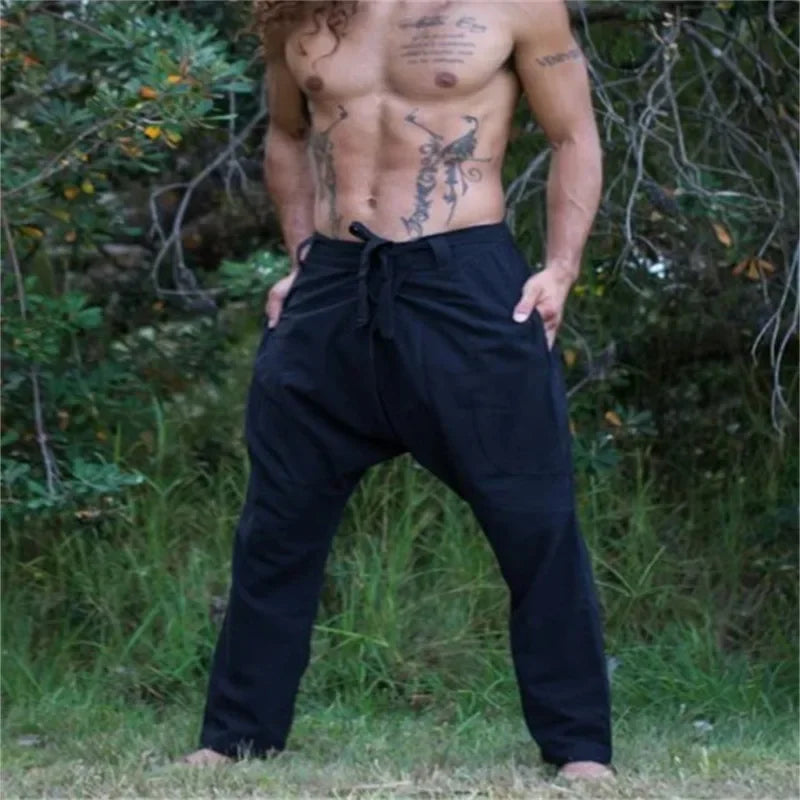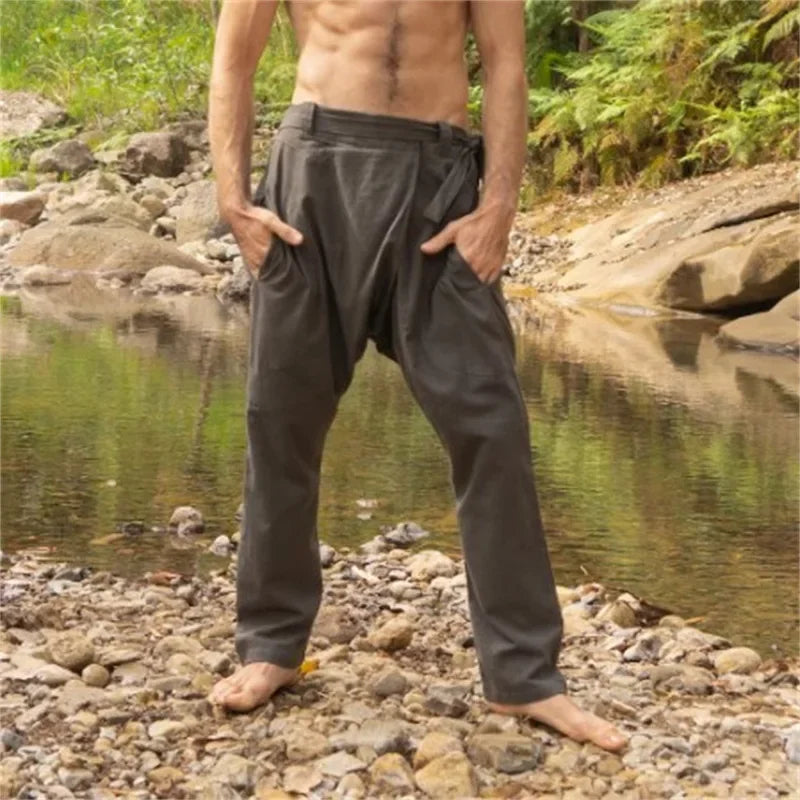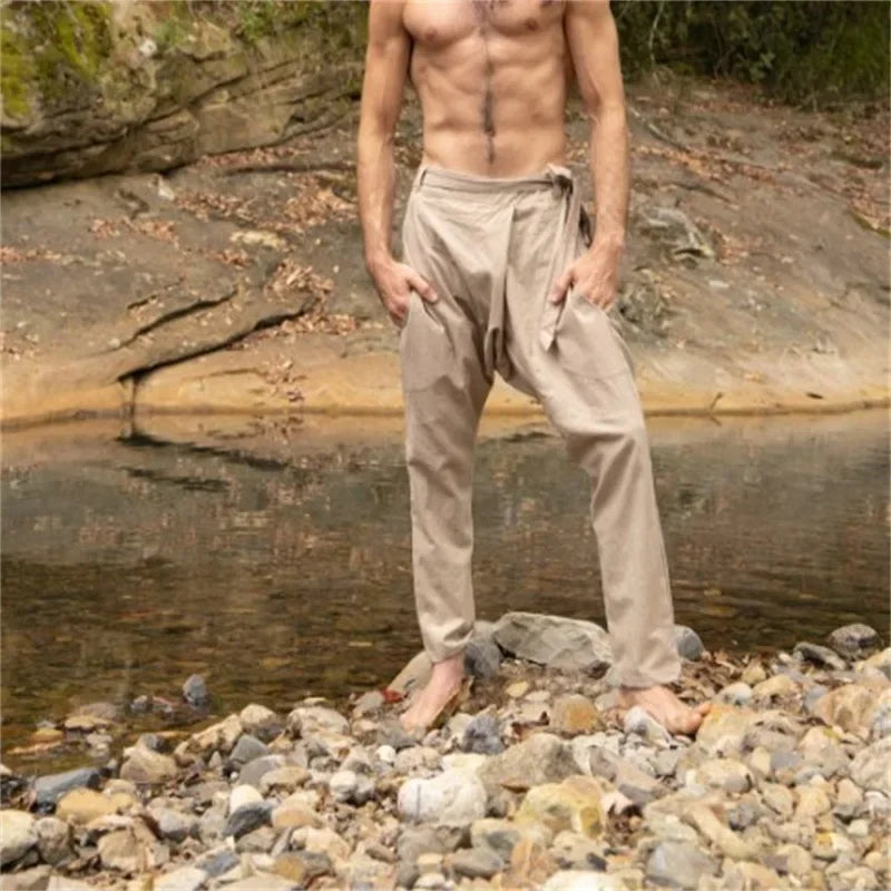 WIAOFELLAS  -  Mens Pants Men's Clothing Cotton and Linen New Solid Color Punk Design Slant Pockets Outdoor Loose Casual Breathable Long Pant