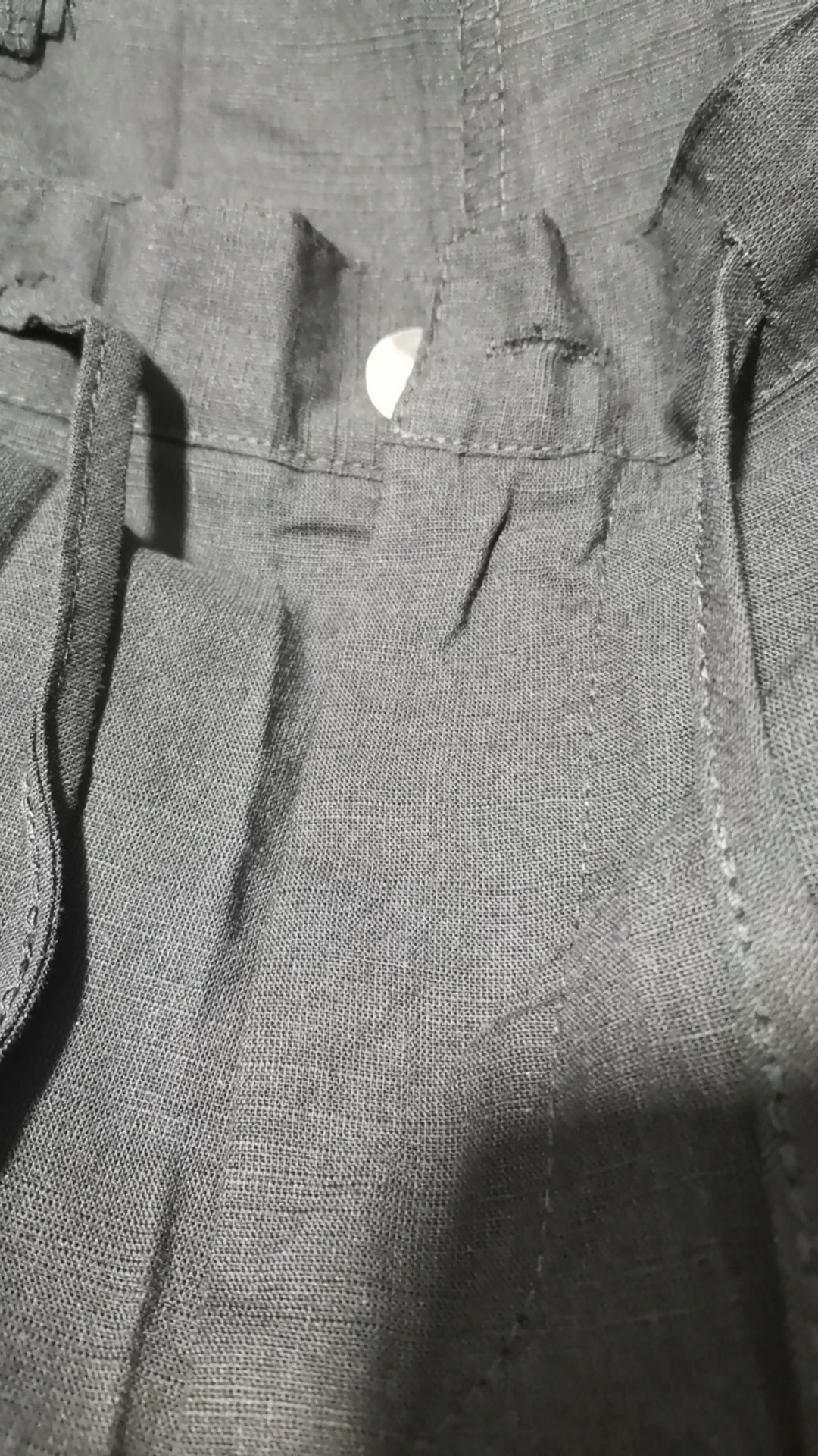 Hello, this is pure cotton and linen loose casual pants. Its actual waistband is not as wide as shown in the picture. Please be cautious when taking photos if you mind!