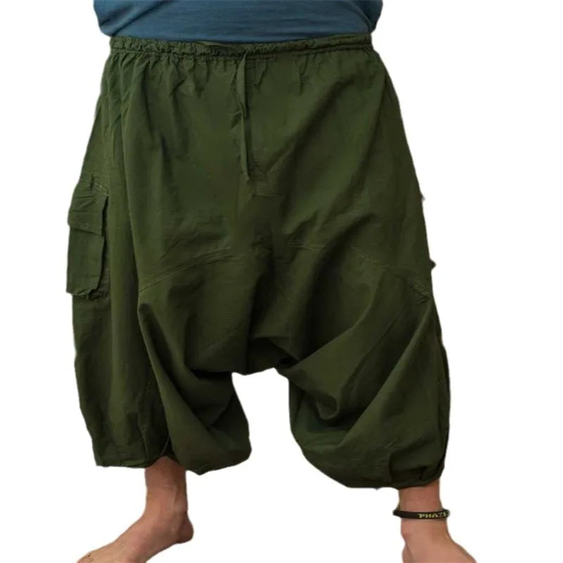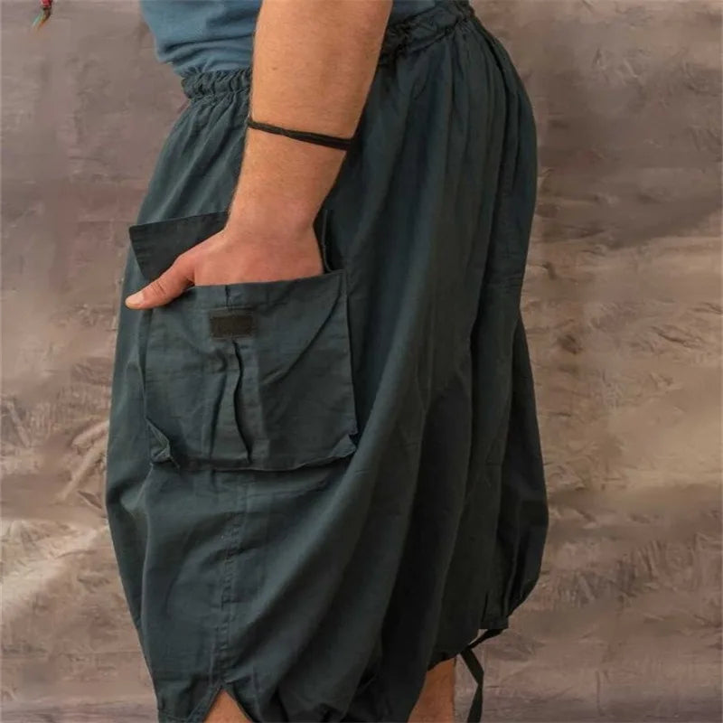 WIAOFELLAS - Men's Pants Seven-minute Pants Multi-pocket Loose Casual Cotton Linen Solid Color Cross-pant Hip Hop Street Style Punk Design