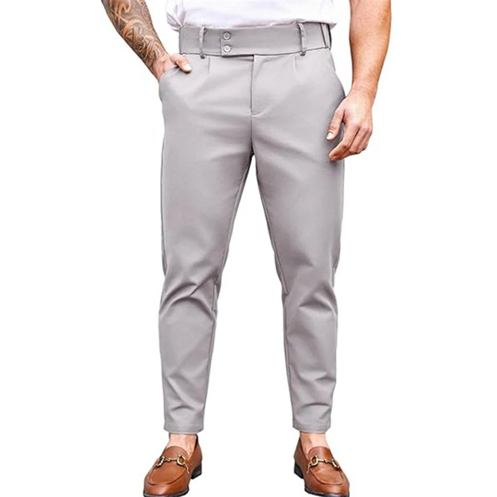 WIAOFELLAS - Mens Slim Fit Button Stretch Tight Tapered Fashion Skinny Pants 2025 Summer New Trend Business Casual Trousers Mens Clothing