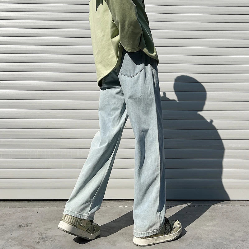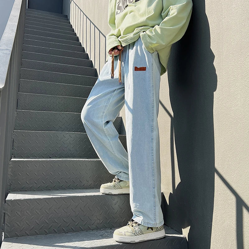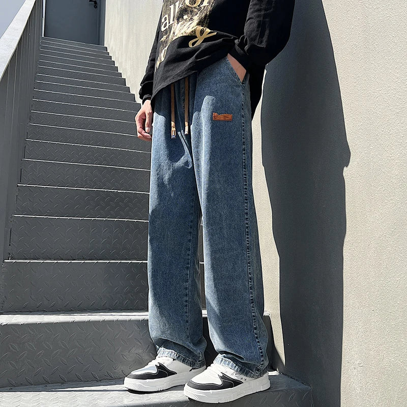 WIAOFELLAS - Men's Spring Autumn Solid Pockets Bandage with Elastic High Waist Pockets Casual Loose Wide Leg Trousers Office Lady Pants