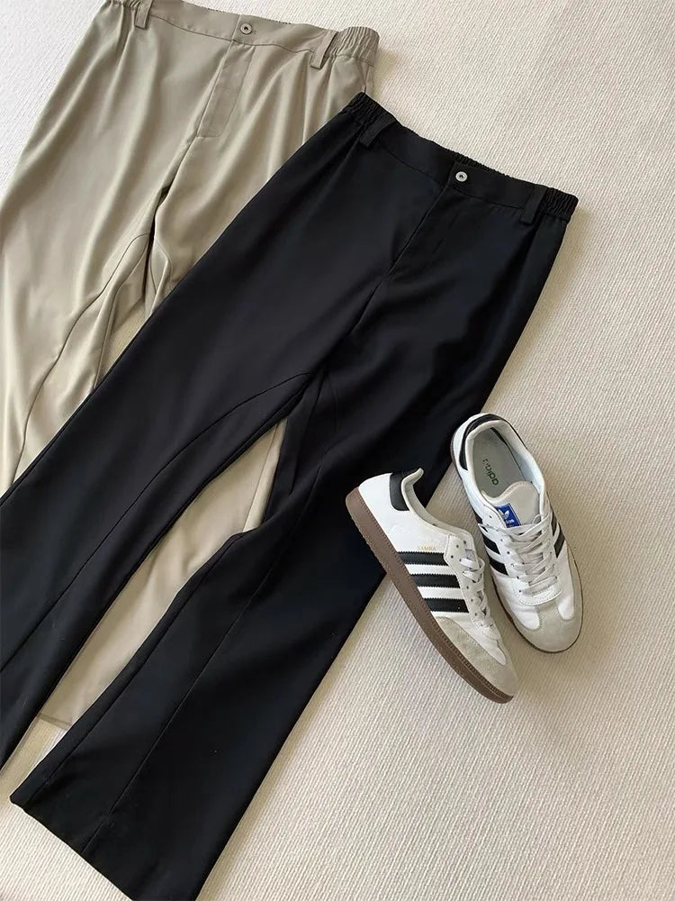 WIAOFELLAS - Men's Summer Fashion Business Casual Long Loose Flared Pants Suit Pants Male Elastic Straight Formal Suit Trousers A075