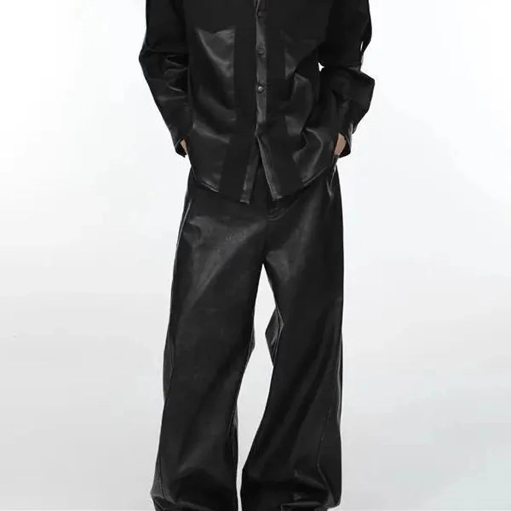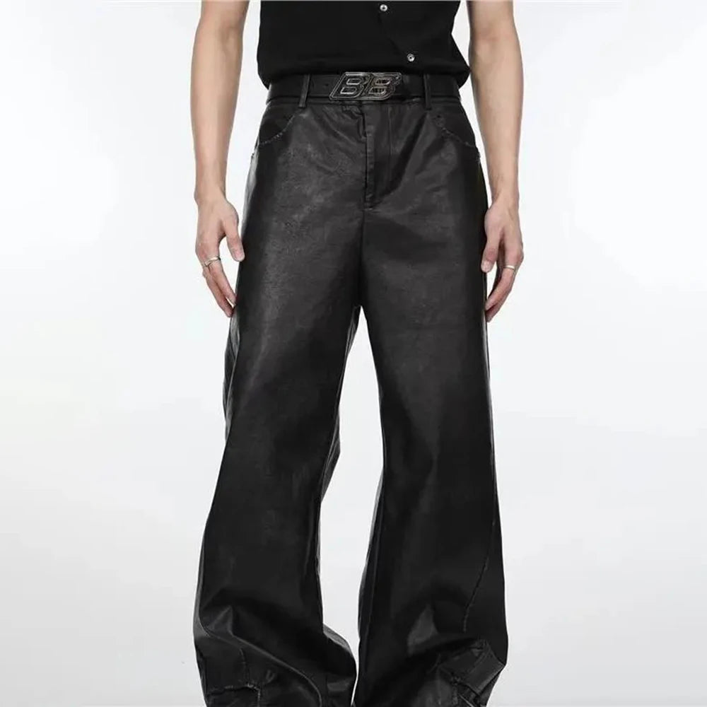 WIAOFELLAS  -  Mens Trousers Pu Leather Soft Casual Pants Streetwear Fashion Versatile Retro High Waist Slim Straight Pants Men'S Clothing 2025