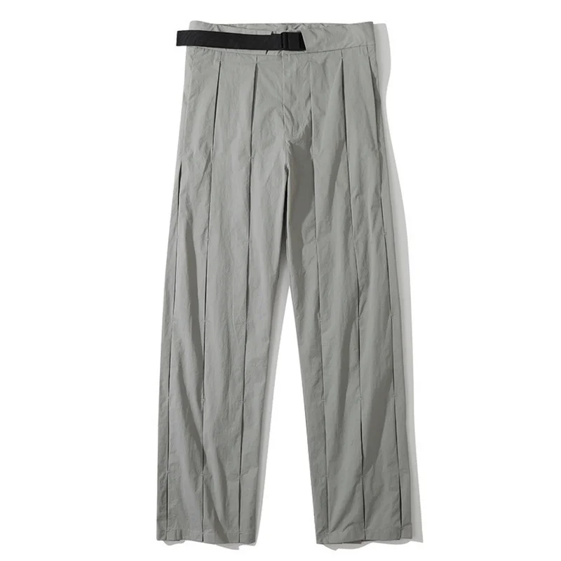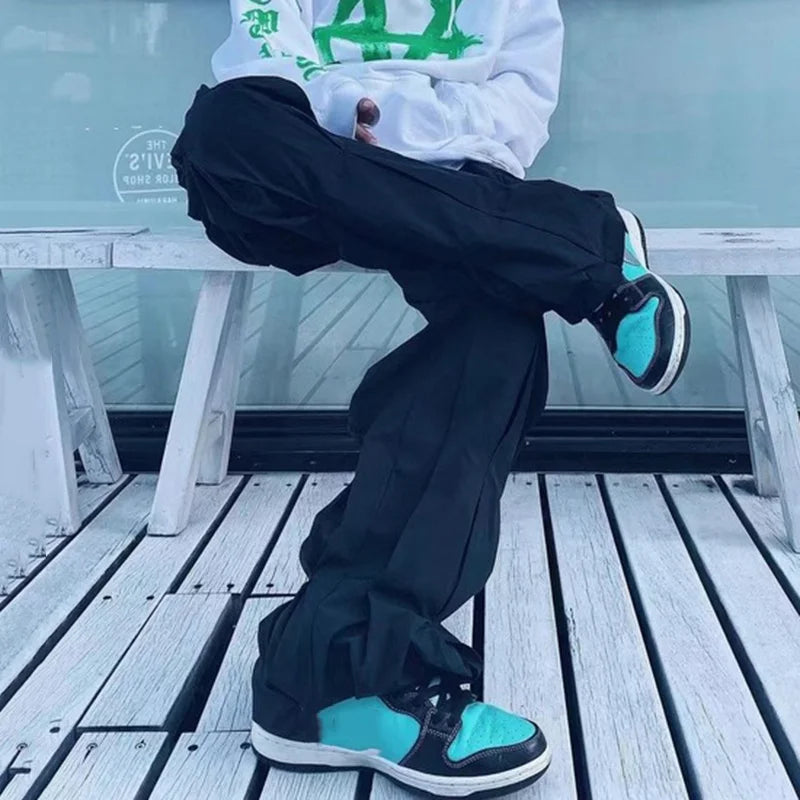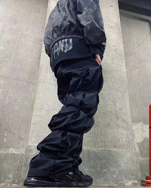 Wiaofellas Menswear Fashion Fold Stacking Trousers Men's Autumn New Loose Straight Mid Waist Wide Leg Long Tooling Pants Tide