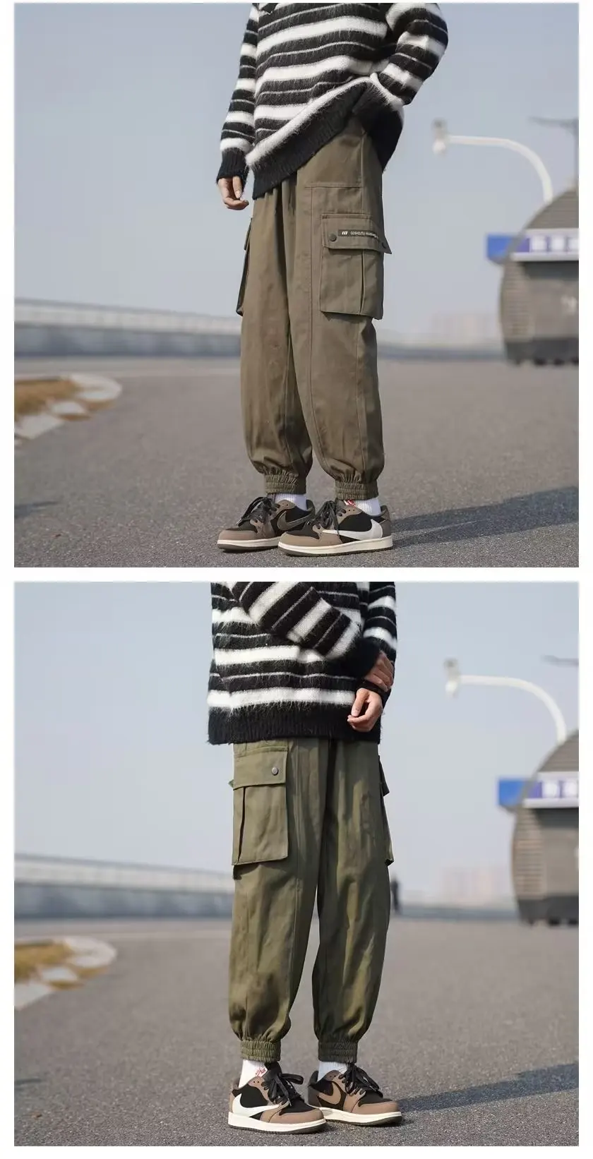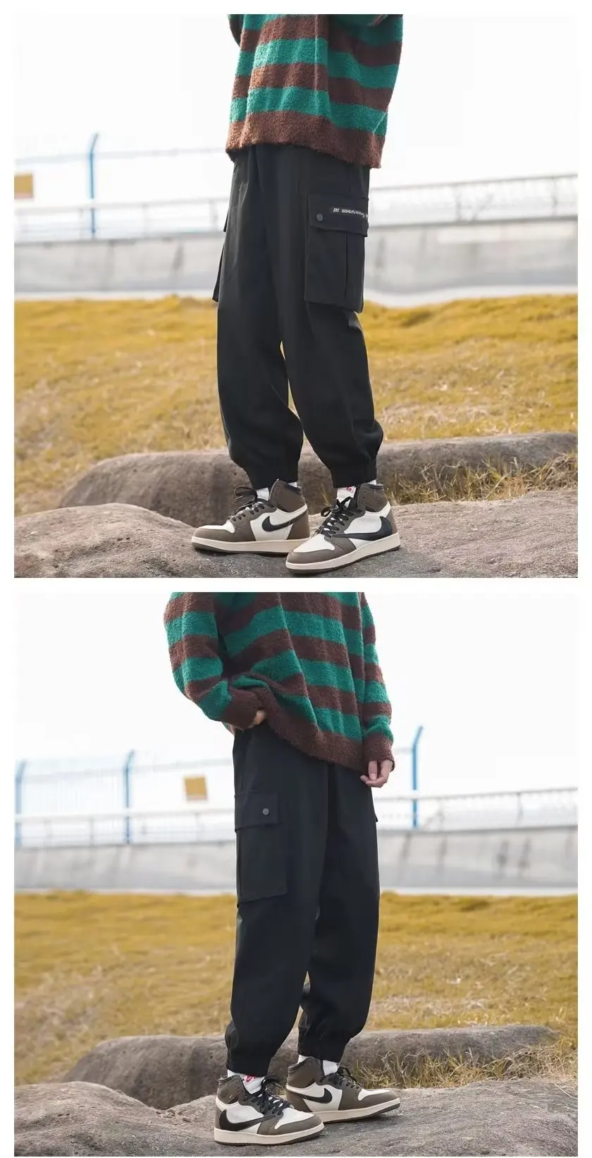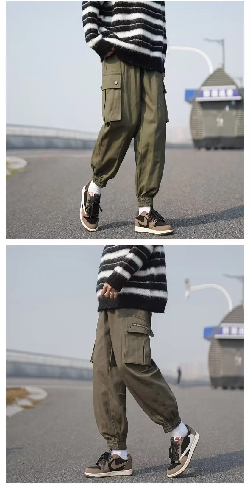 Wiaofellas - Multi-pocket large size tide brand plankton bunched foot cargo pants men's loose casual pants