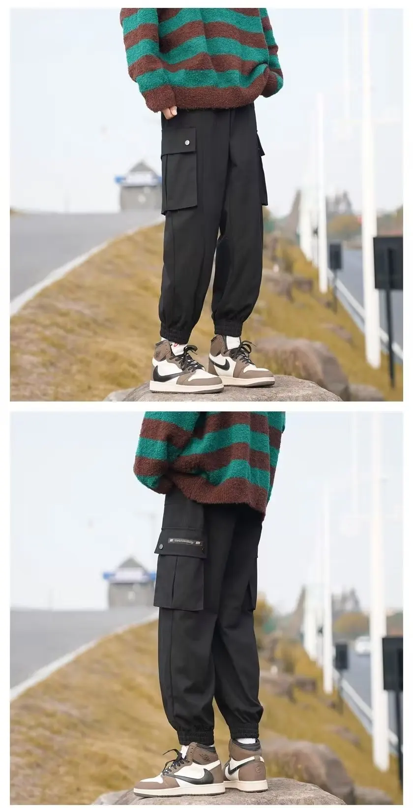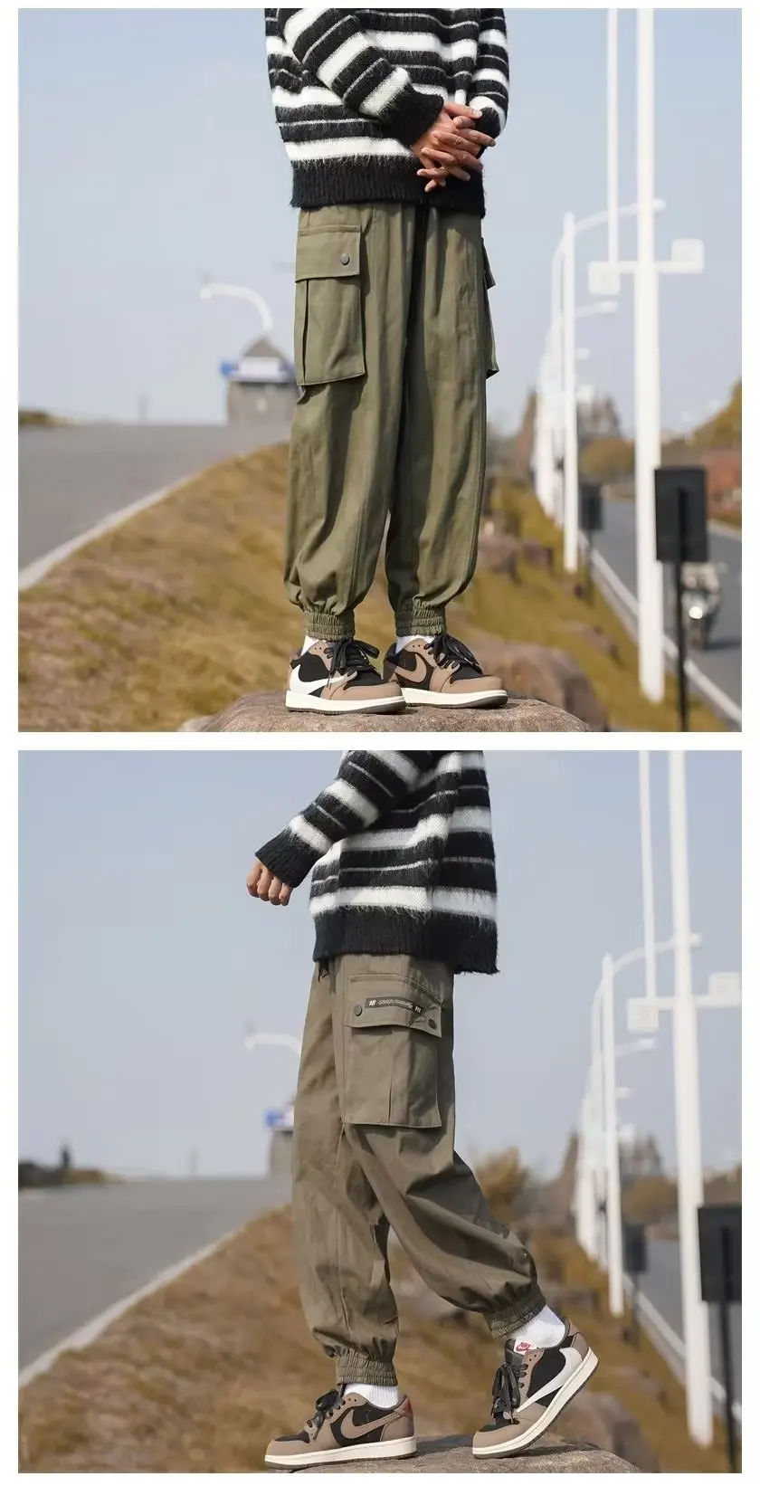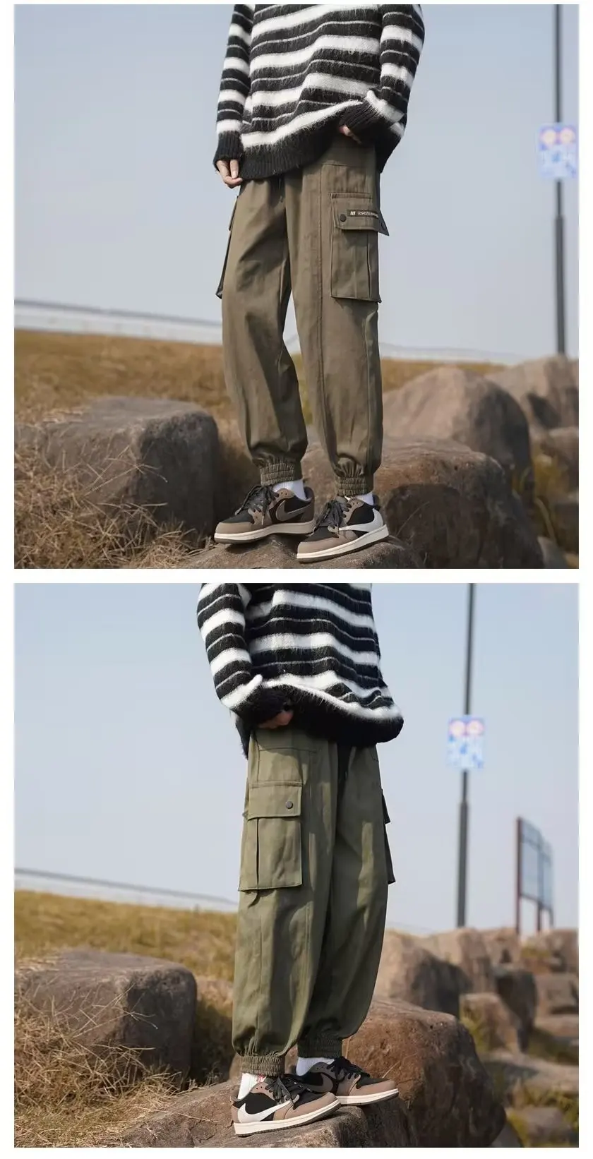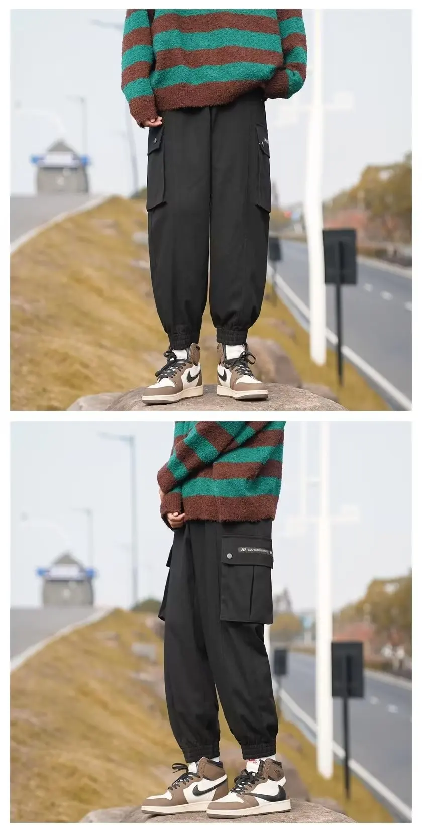 Wiaofellas - Multi-pocket large size tide brand plankton bunched foot cargo pants men's loose casual pants