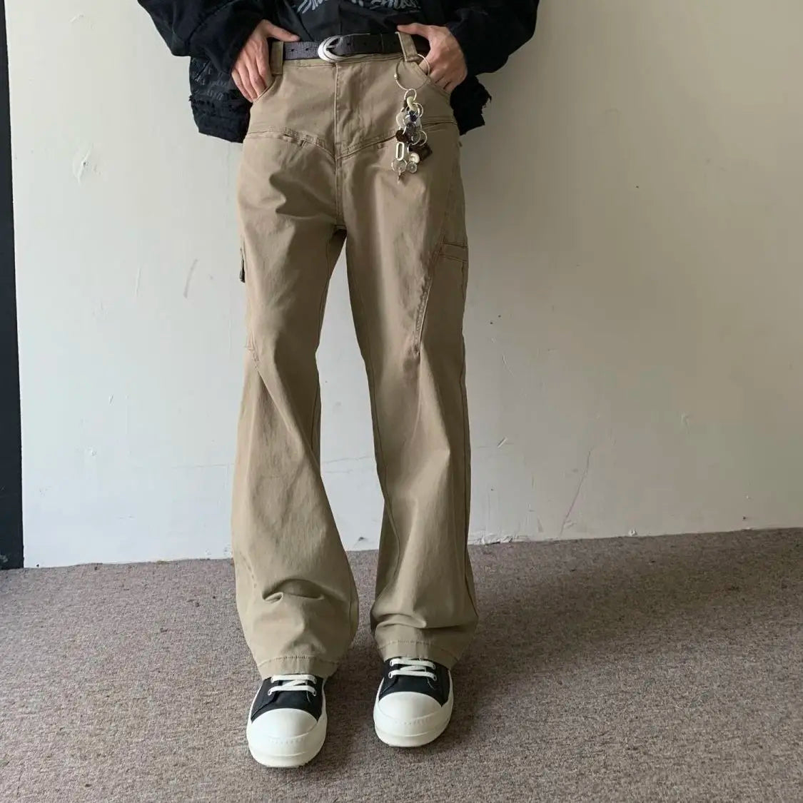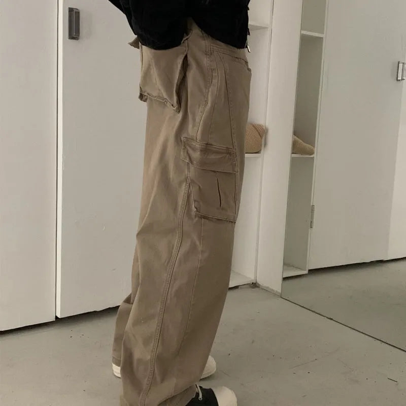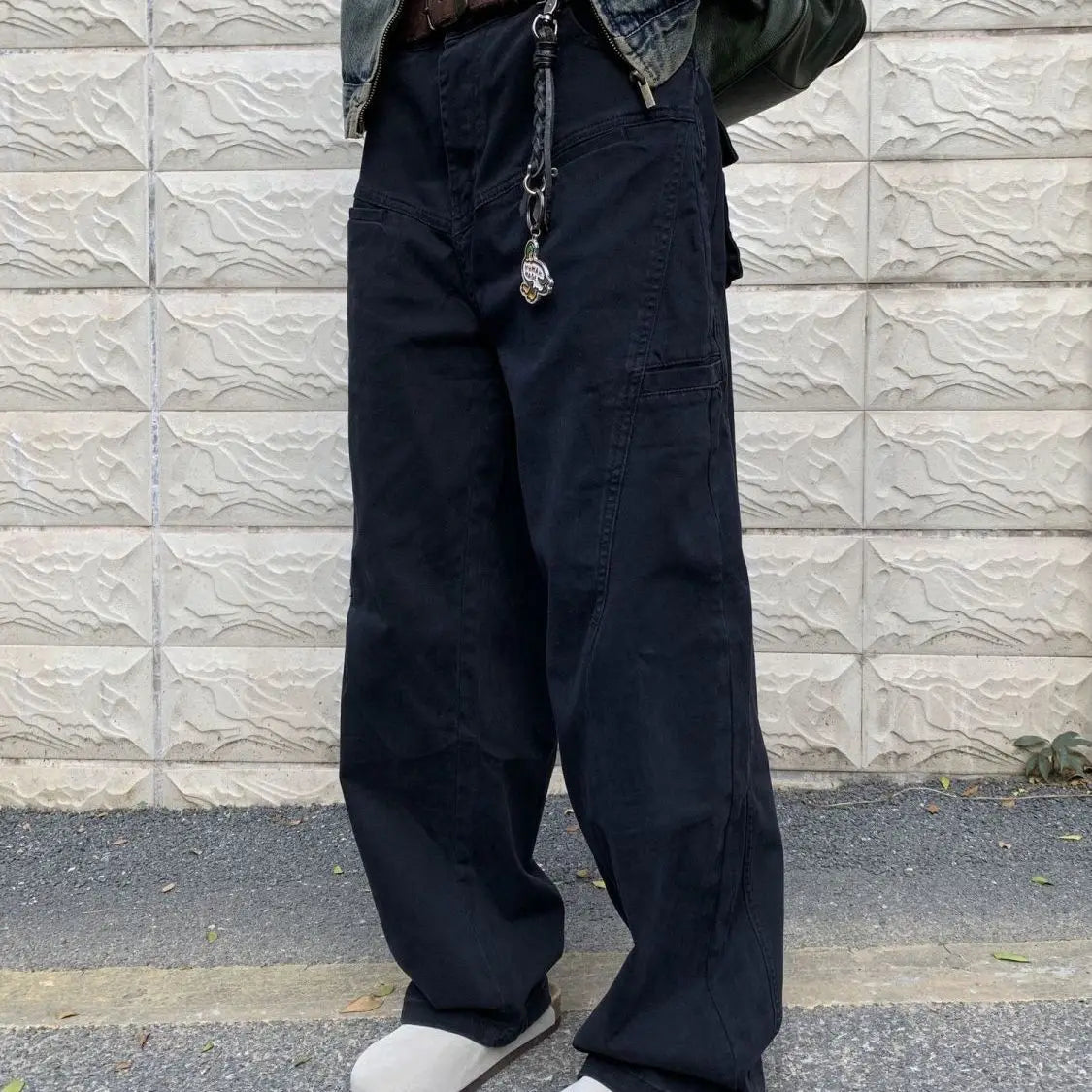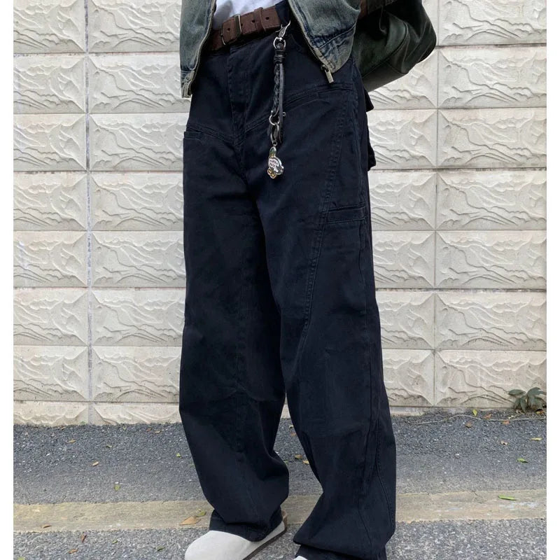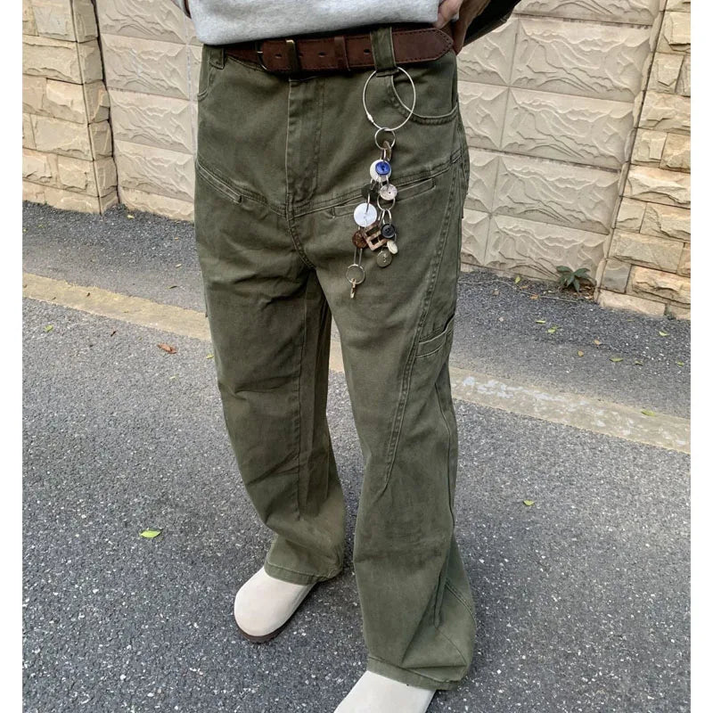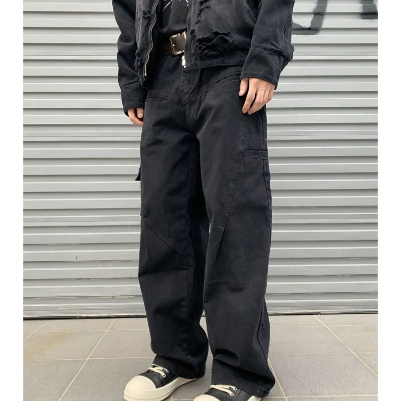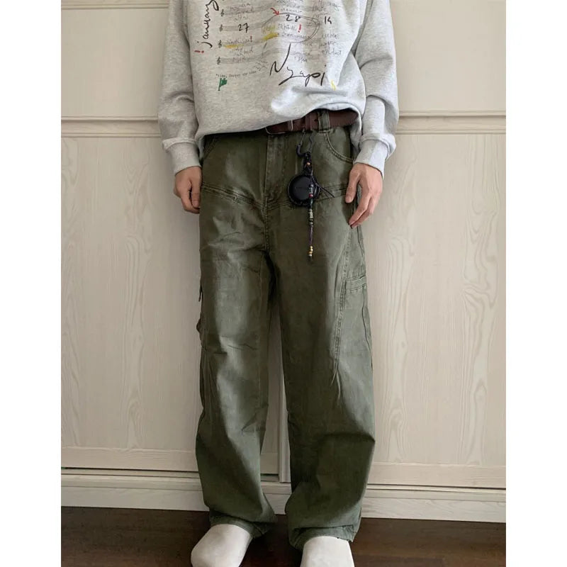 WIAOFELLAS - New Autumn and Winter Fashion Korean Version Patchwork Retro Workwear Wide Leg Loose and Versatile Handsome Youth Casual Pants