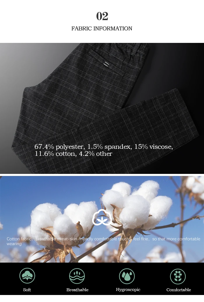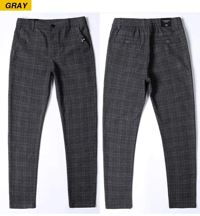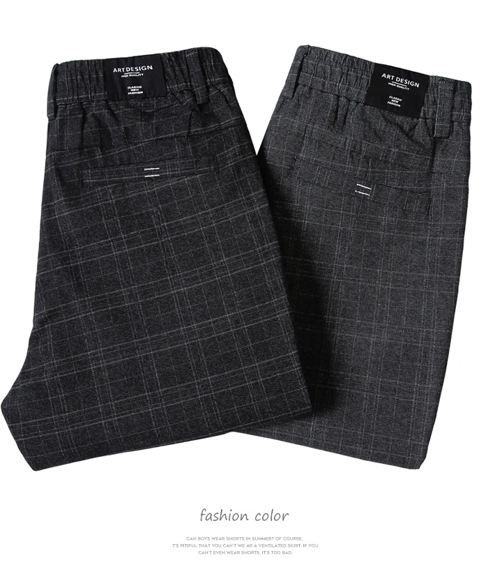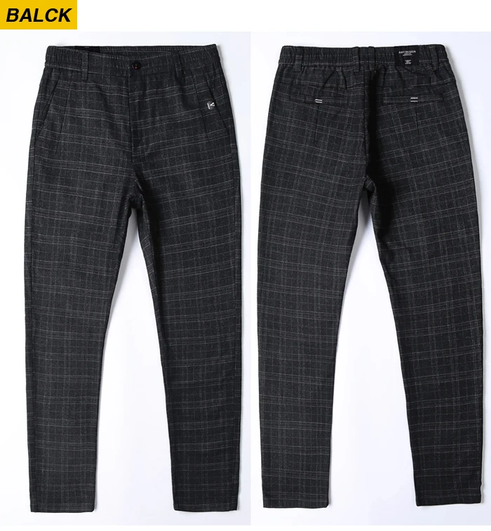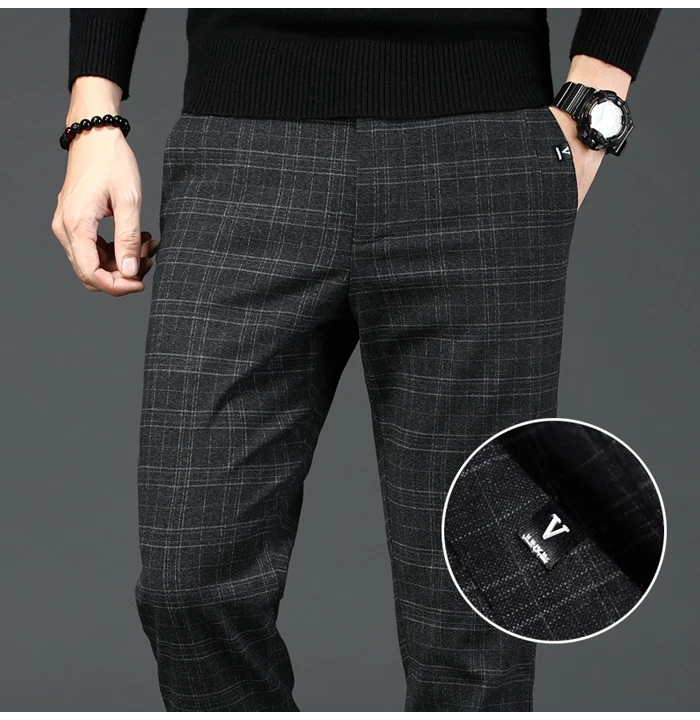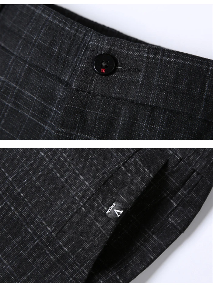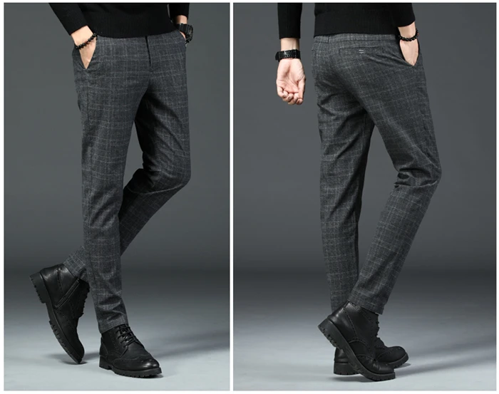 Wiaofellas - New Mens Casual Plaid Pants Business Slim Fit Dark Grey Classic Style Elastic Trousers Male Brand Clothes Street Leisure Fashion