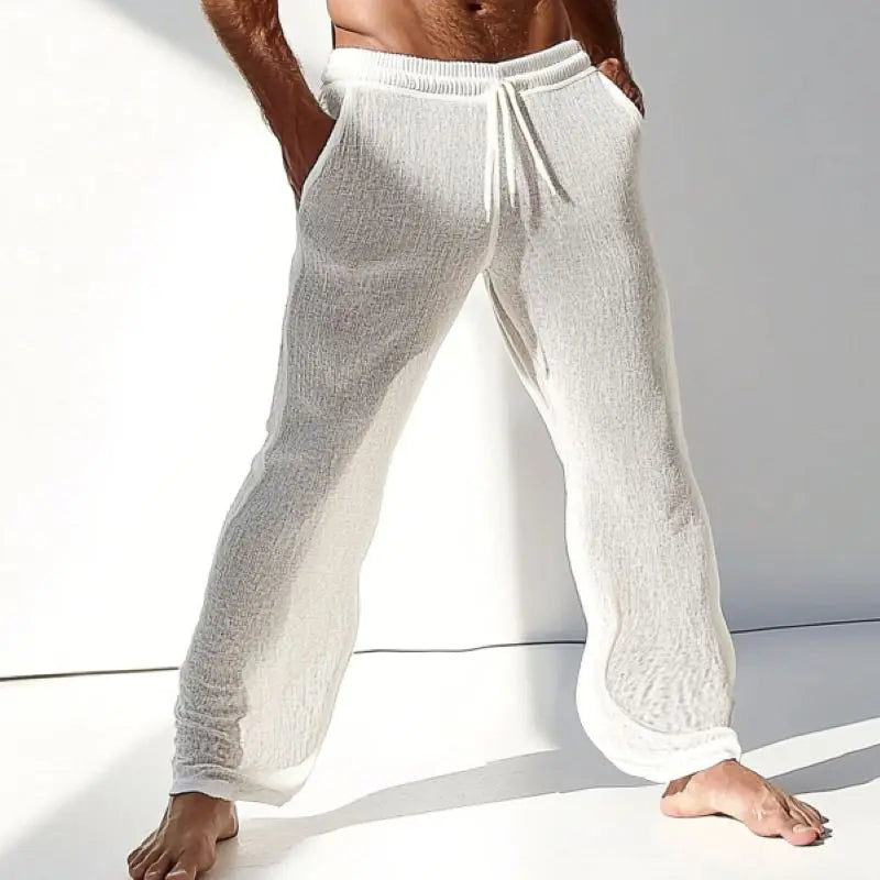 WIAOFELLAS - New Men's Lightweight Knitted Casual Trousers - Breathable Stretch Elastic Waist Summer Lounge Pants for Men - M-XXL Size