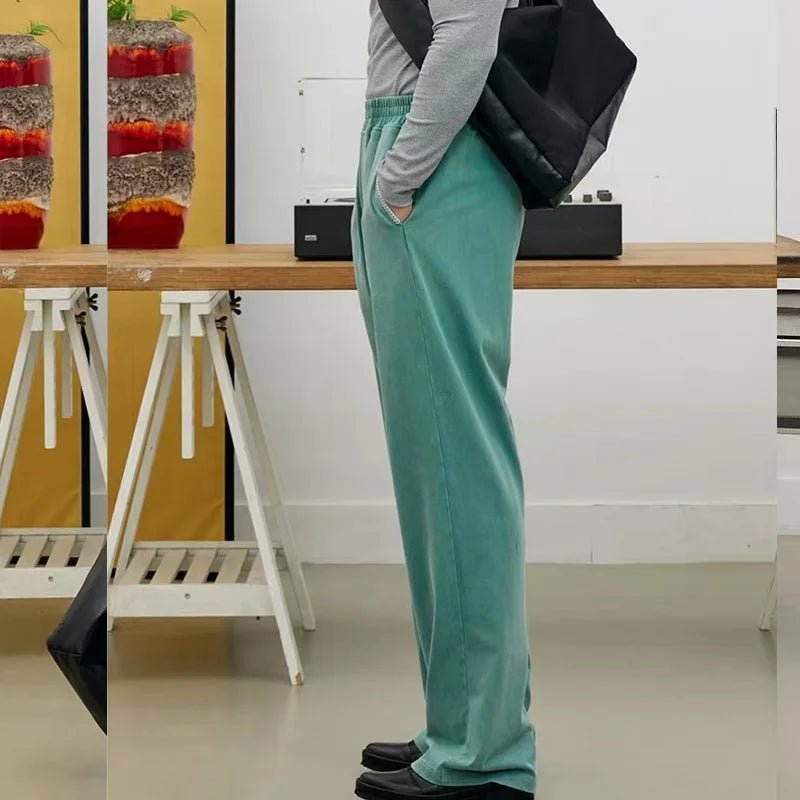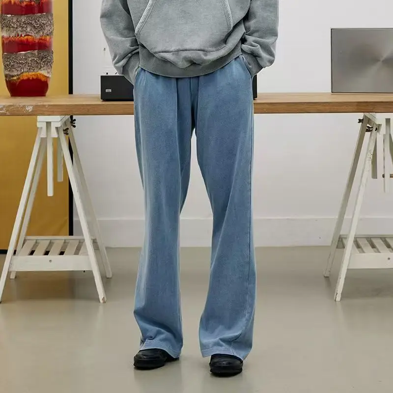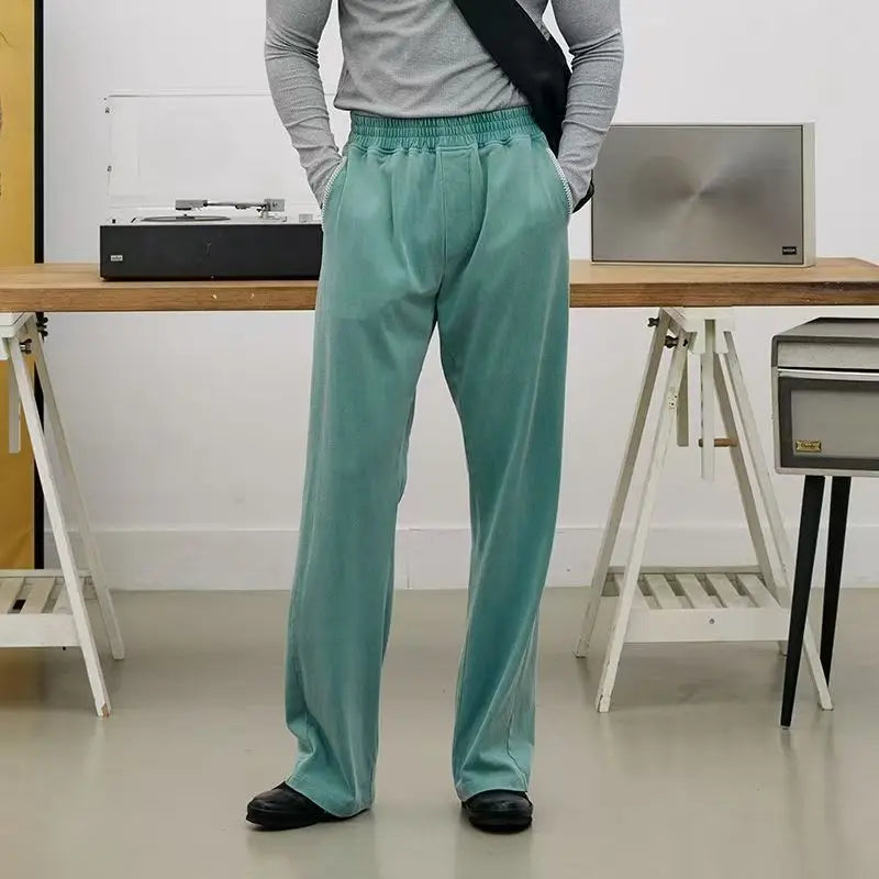 WIAOFELLAS - New Men's Straight Leg Sports Pants Fitness Running Training Elastic Waist Loose sweatpants Cotton Gym Loose Long Trousers