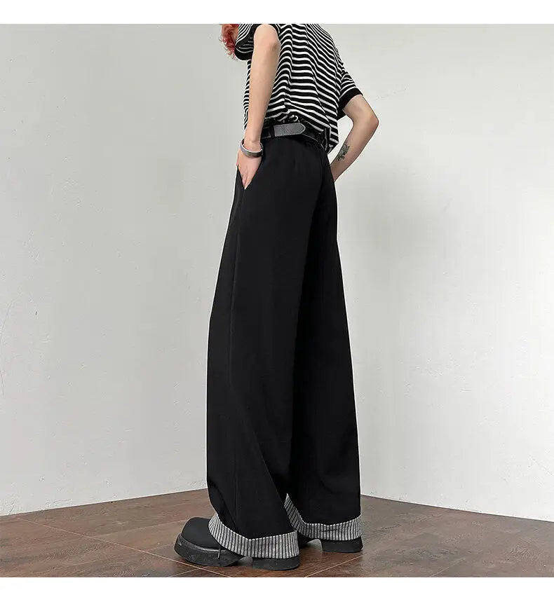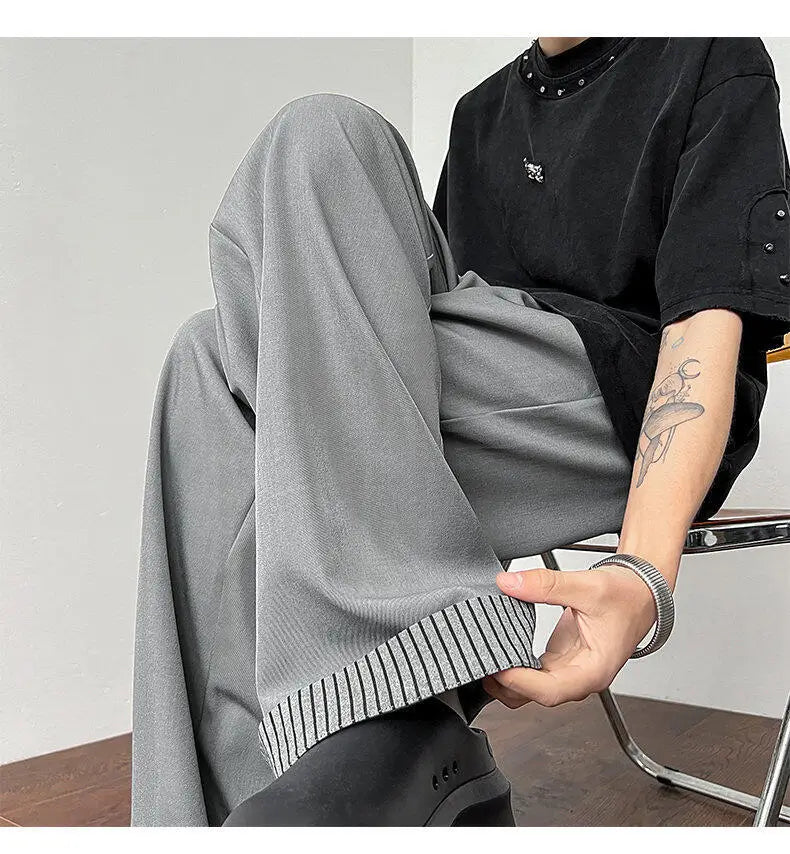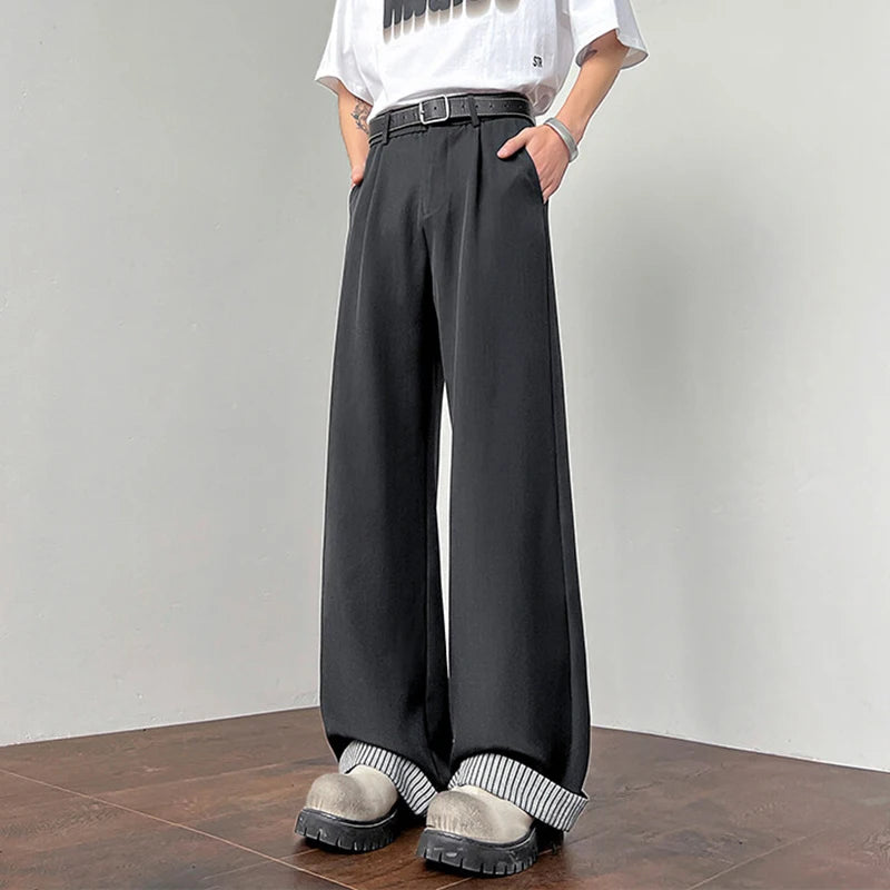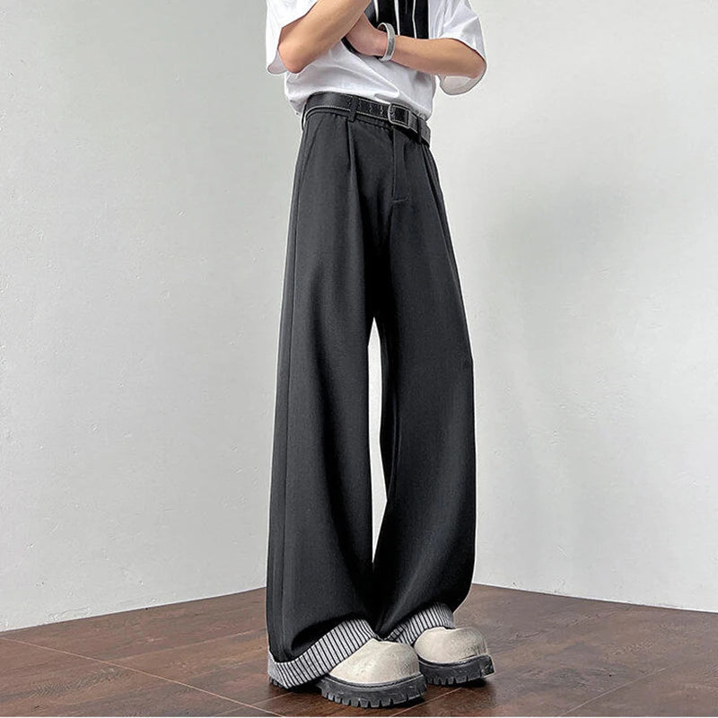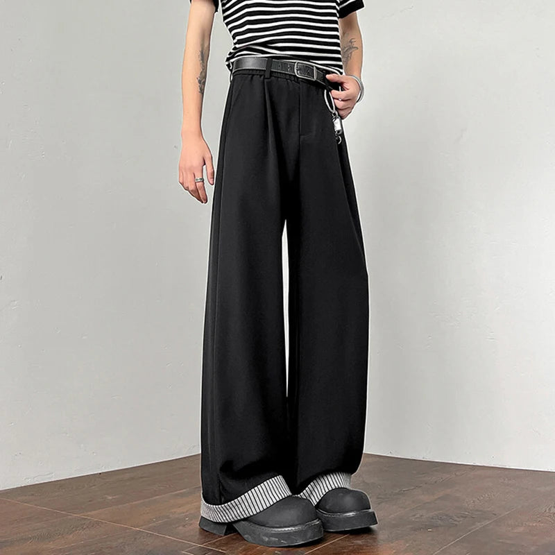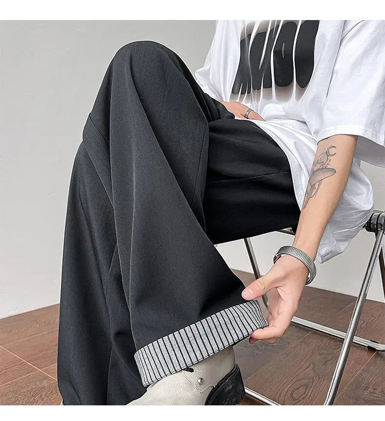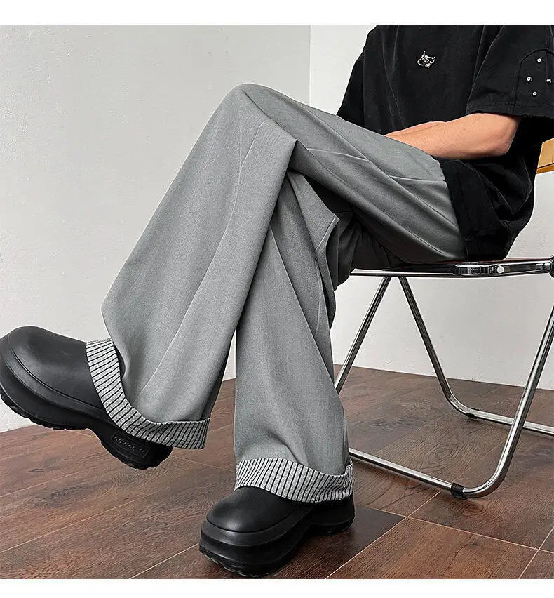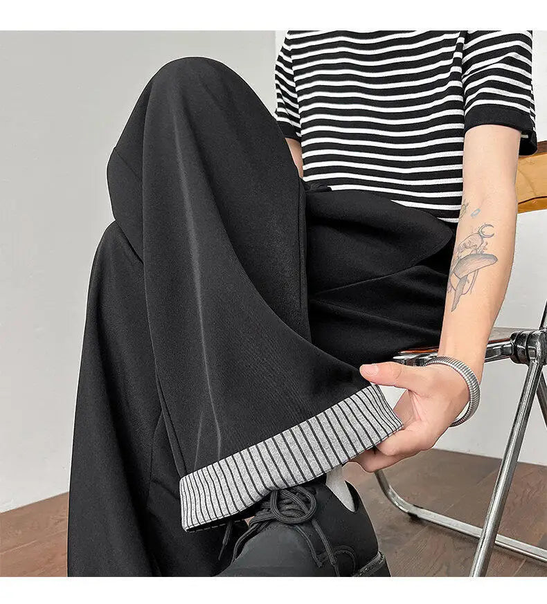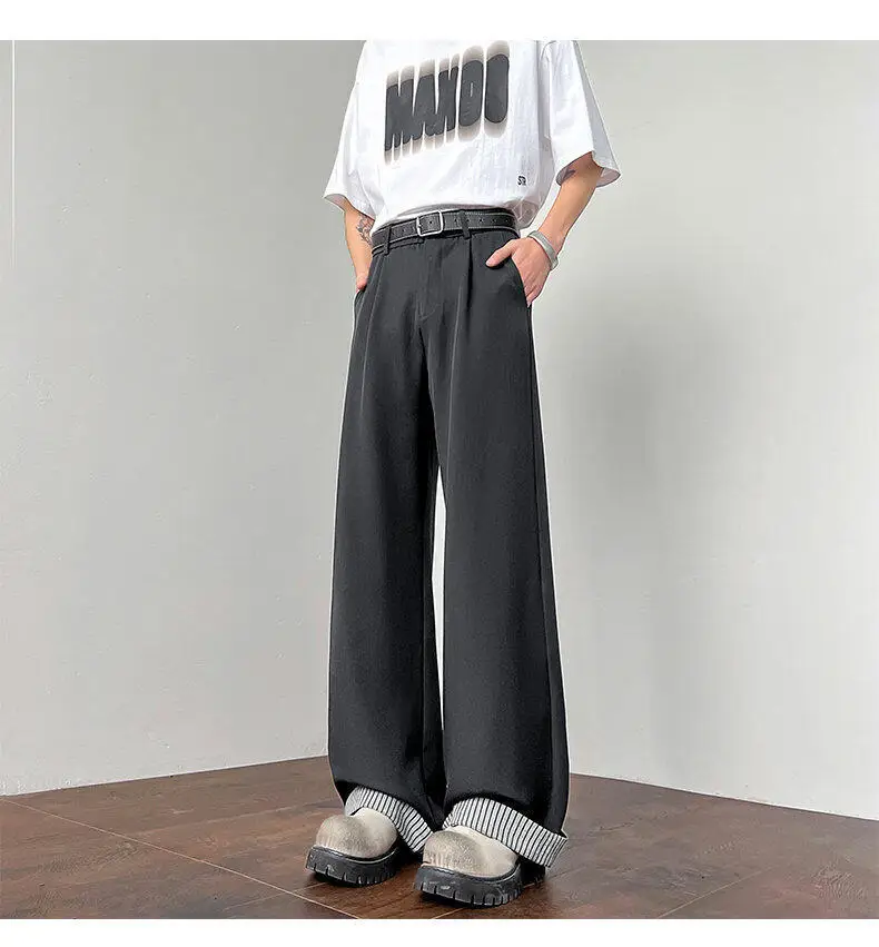 WIAOFELLAS  -  New Simple Men's Suit Pants Drape Striped Design Pleated Contrast Color Straight Wide Leg Male Trousers All-match