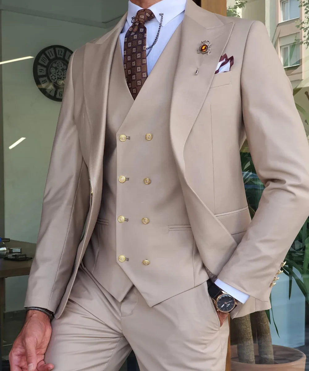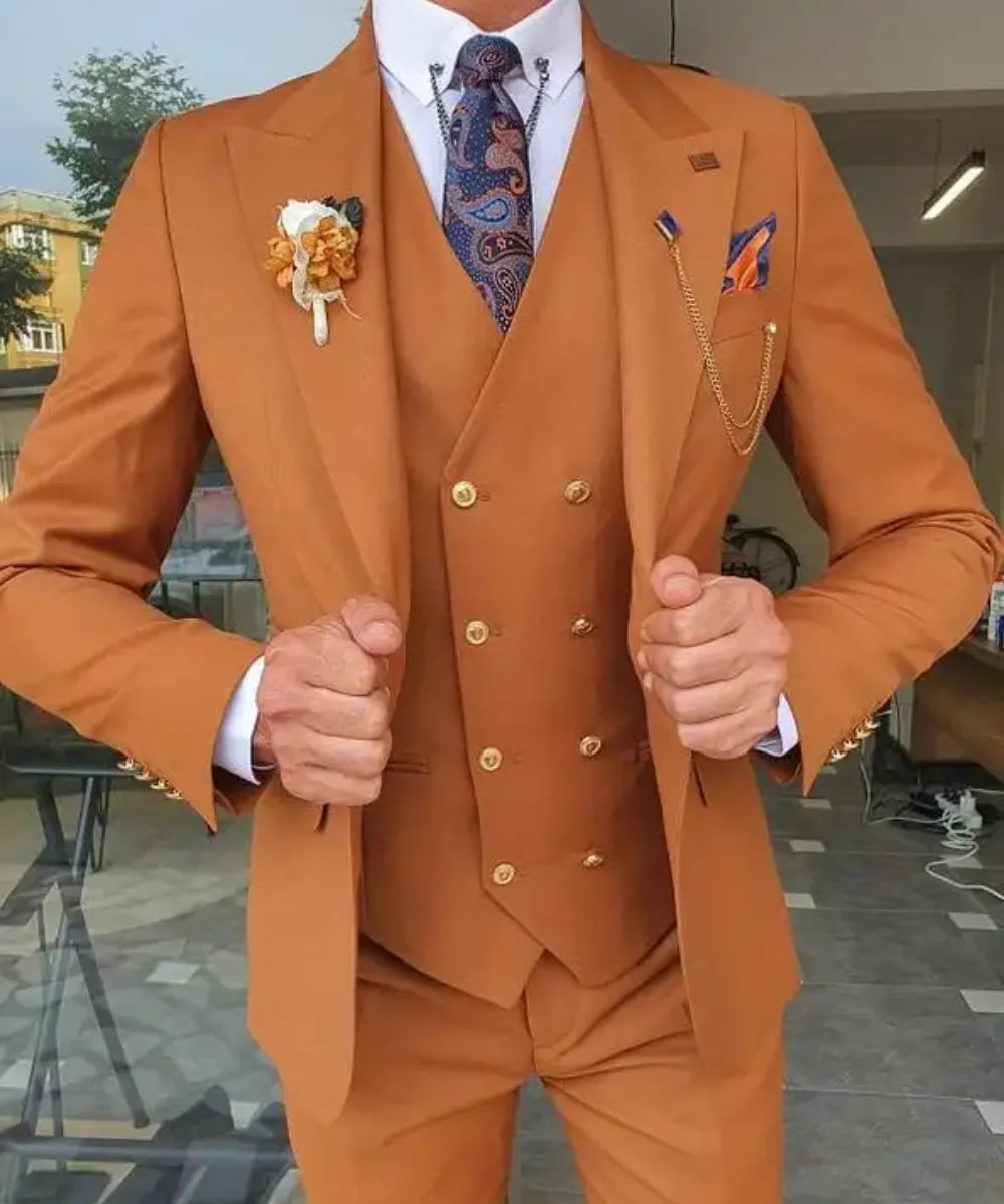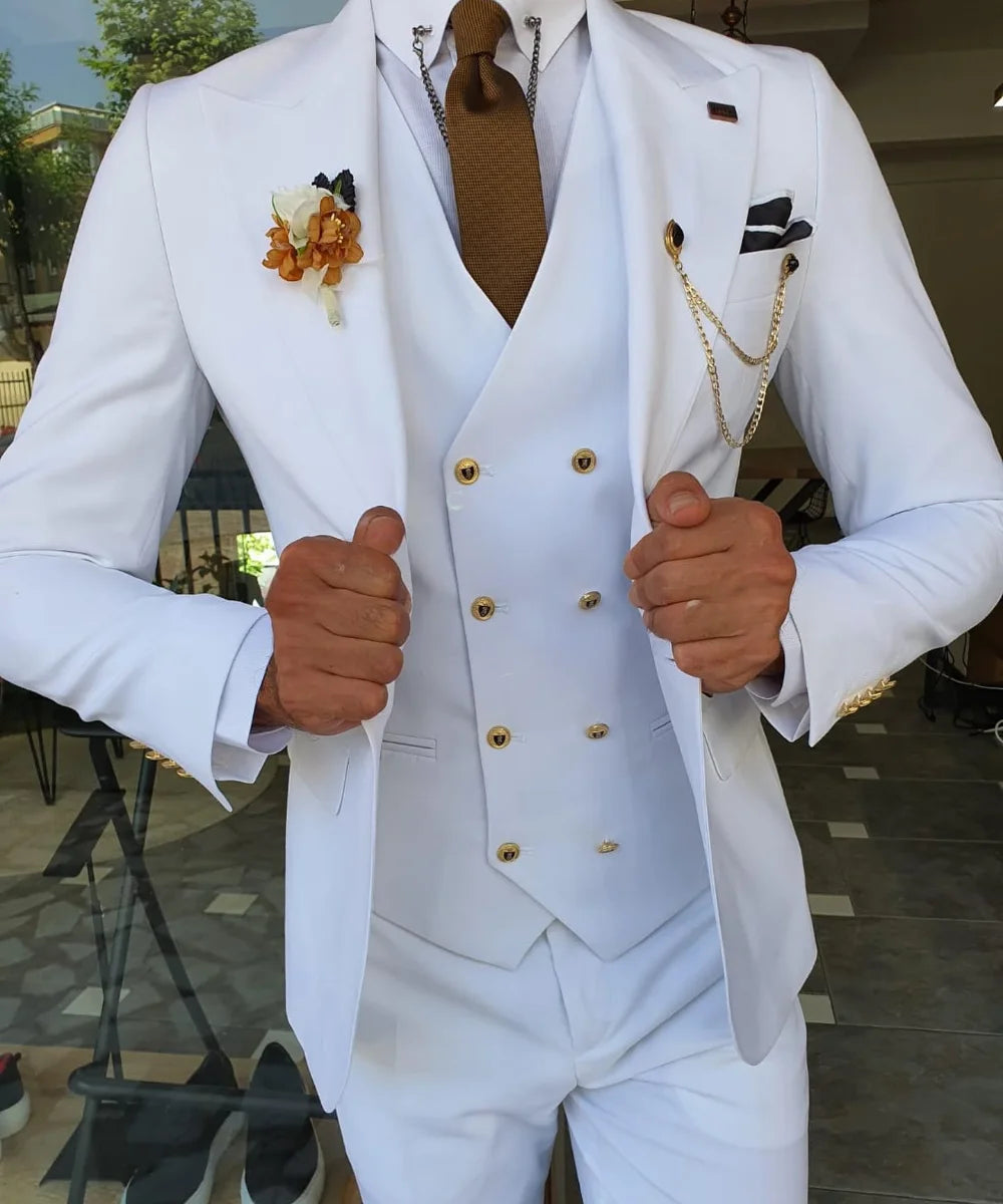 WIAOFELLAS - New Solid Color Men's Suit Peak Lapel Slim Fit Casual Set Groom Tailor Made Three Pieces (Blazer+Pants+Vest)