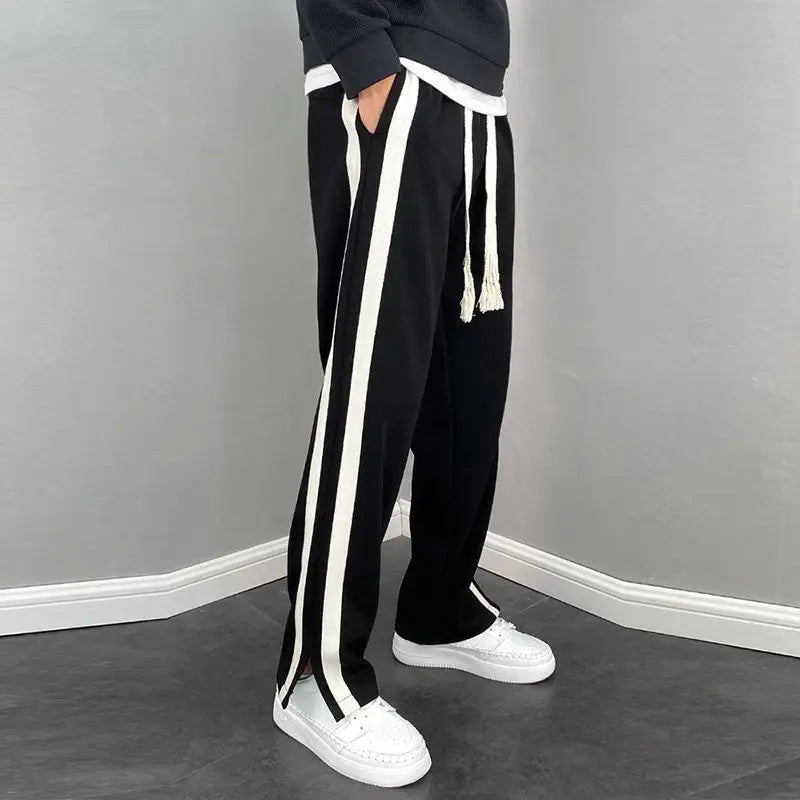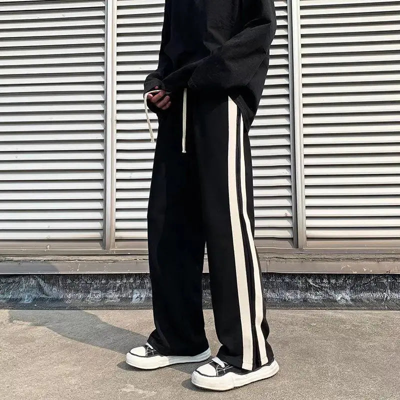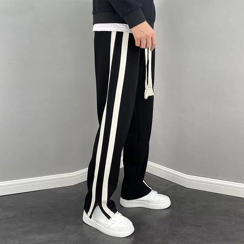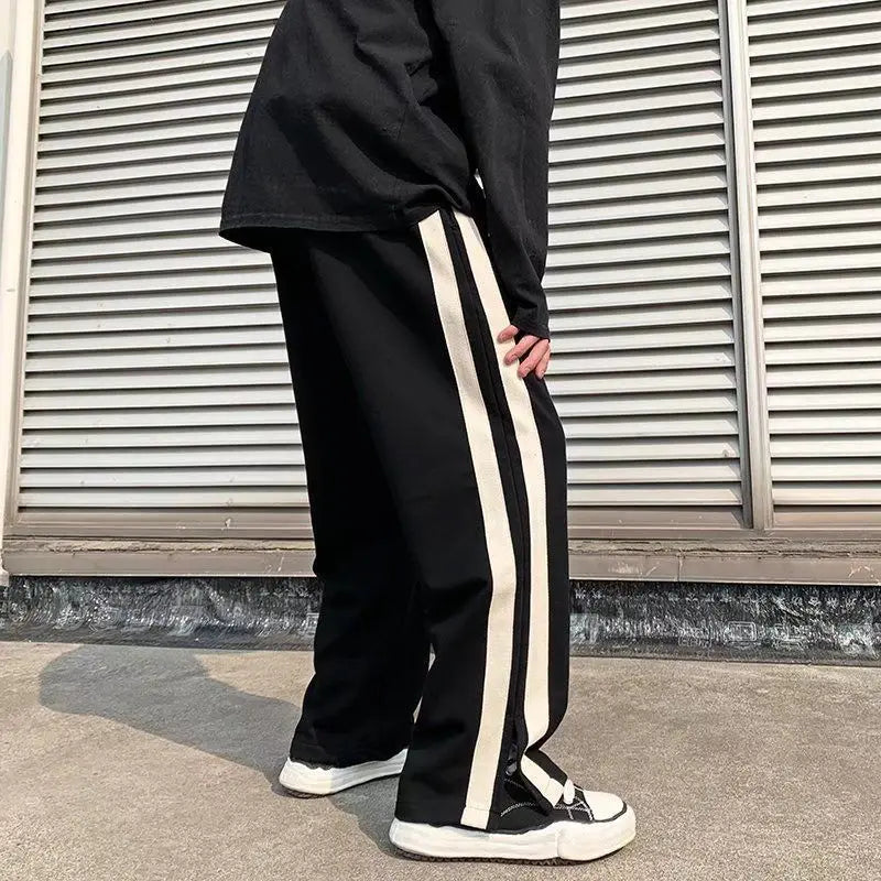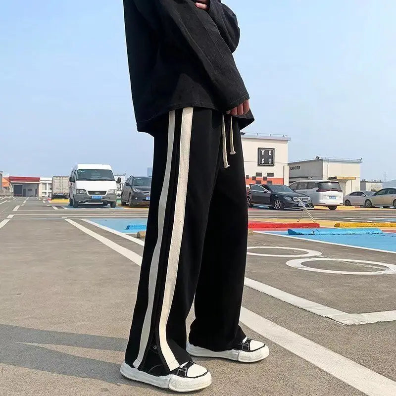 WIAOFELLAS - New Spring and Summer Fashion Hong Kong Style Split Wide Leg Casual Loose Fashion Brand Sports Straight Sleeve Men's Pants