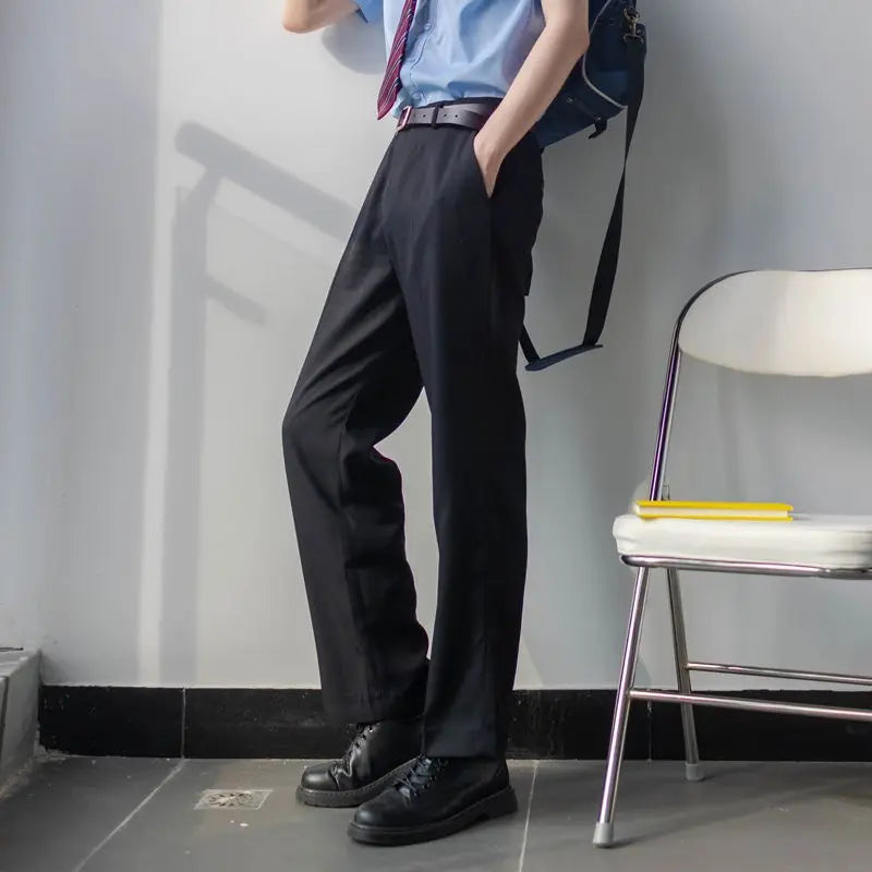 WIAOFELLAS - New Versatile DK Trousers Men's Summer Draped Casual Trousers Black Straight Loose Suit Pants Spring and Autumn Trend