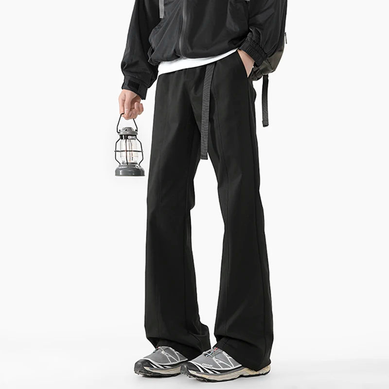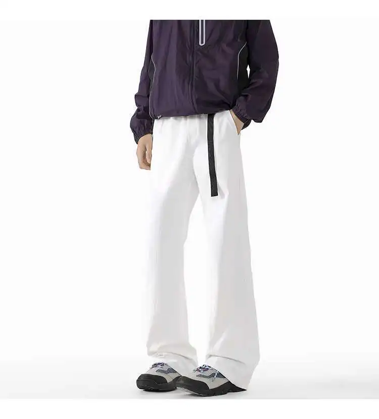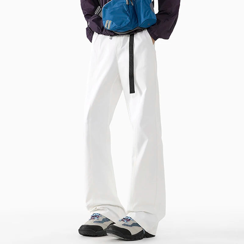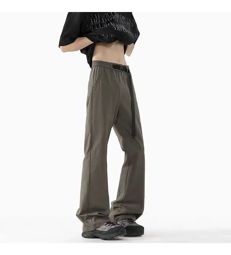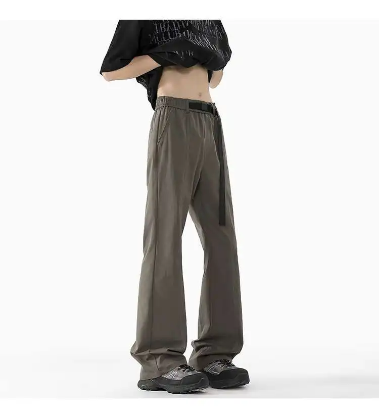 WIAOFELLAS - Niche Design Men's Casual Pants Belt Design Wide Leg Loose Bottom Contrast Color Elastic Waist Male Flared Trousers