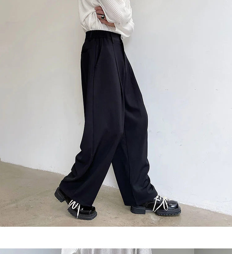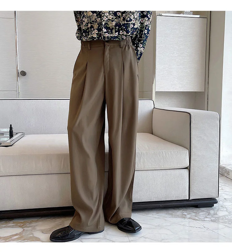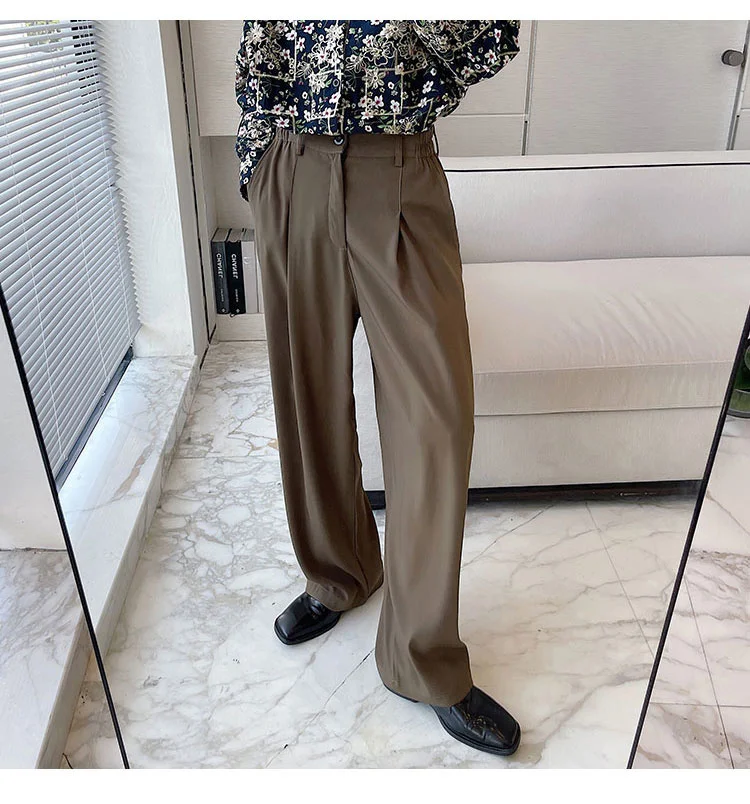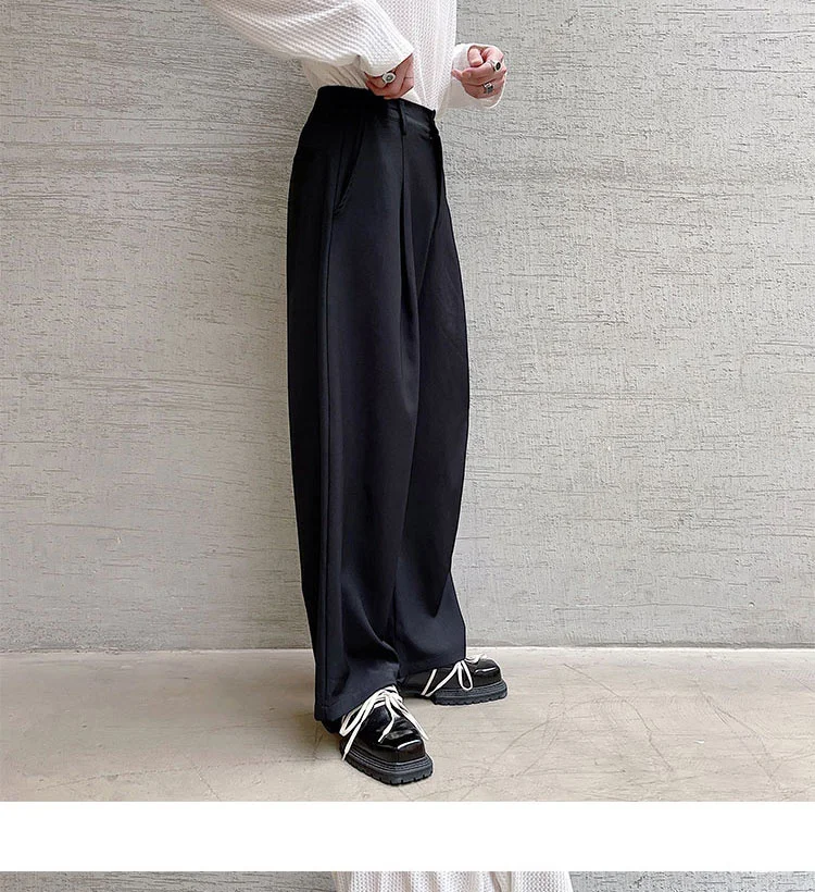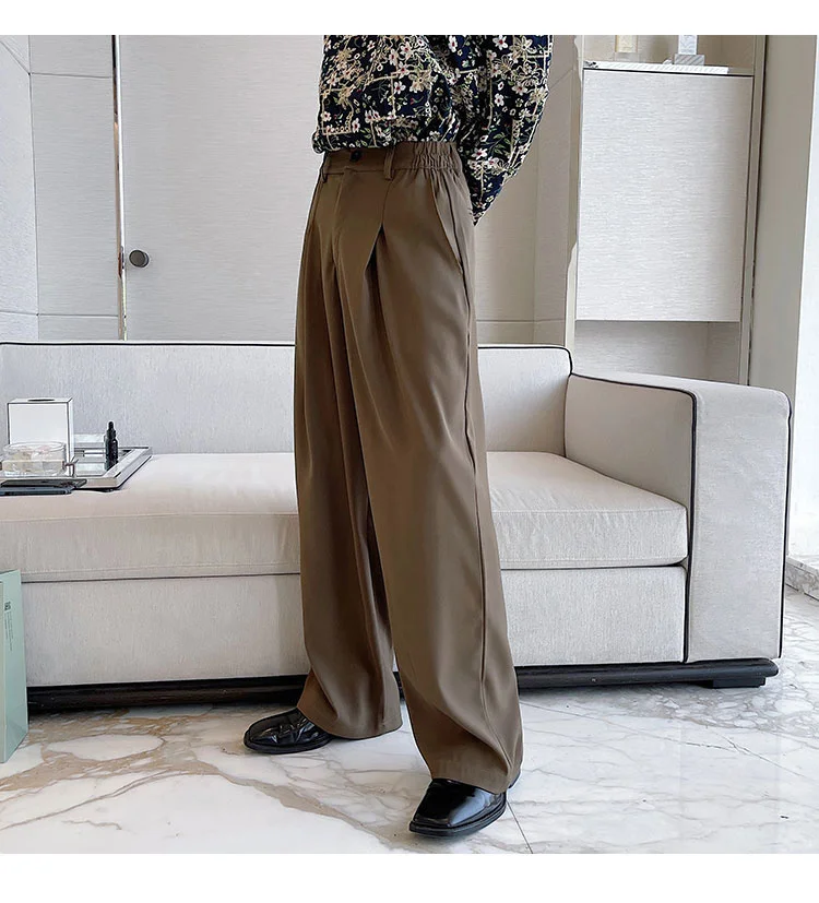 Wiaofellas - Personality Autumn Suit Pants Korean Streetwear Fahshion Simple Trend Wide Leg Floor Dragging Black Brown Trousers 2Y2743