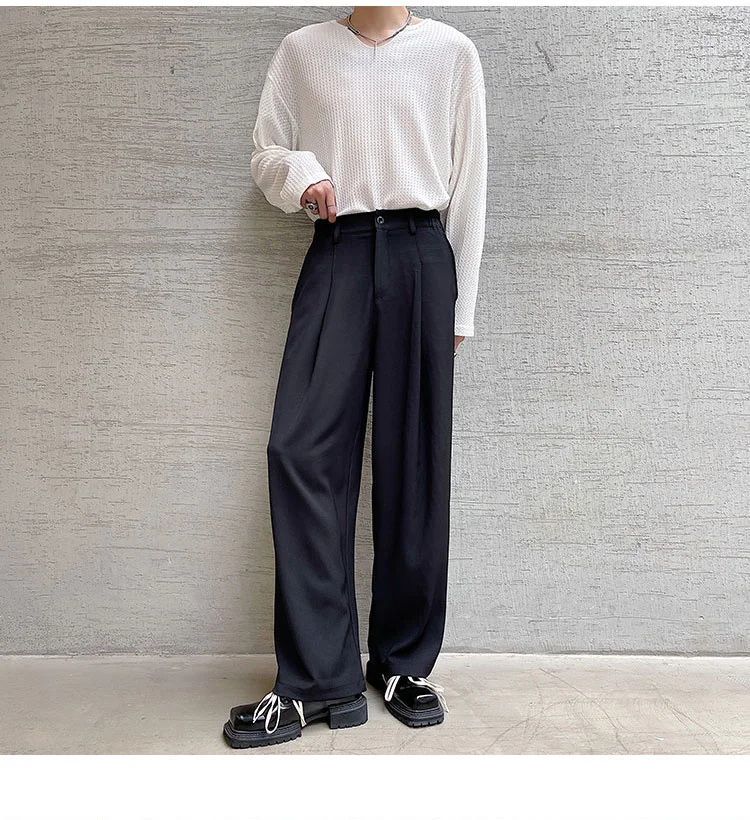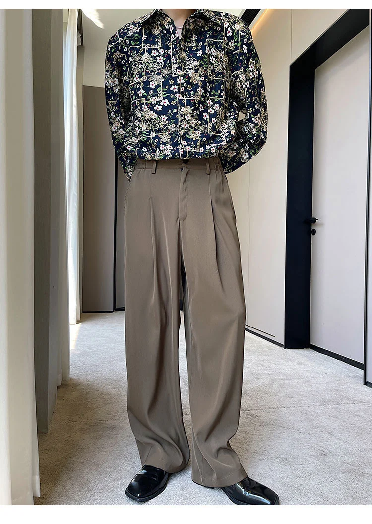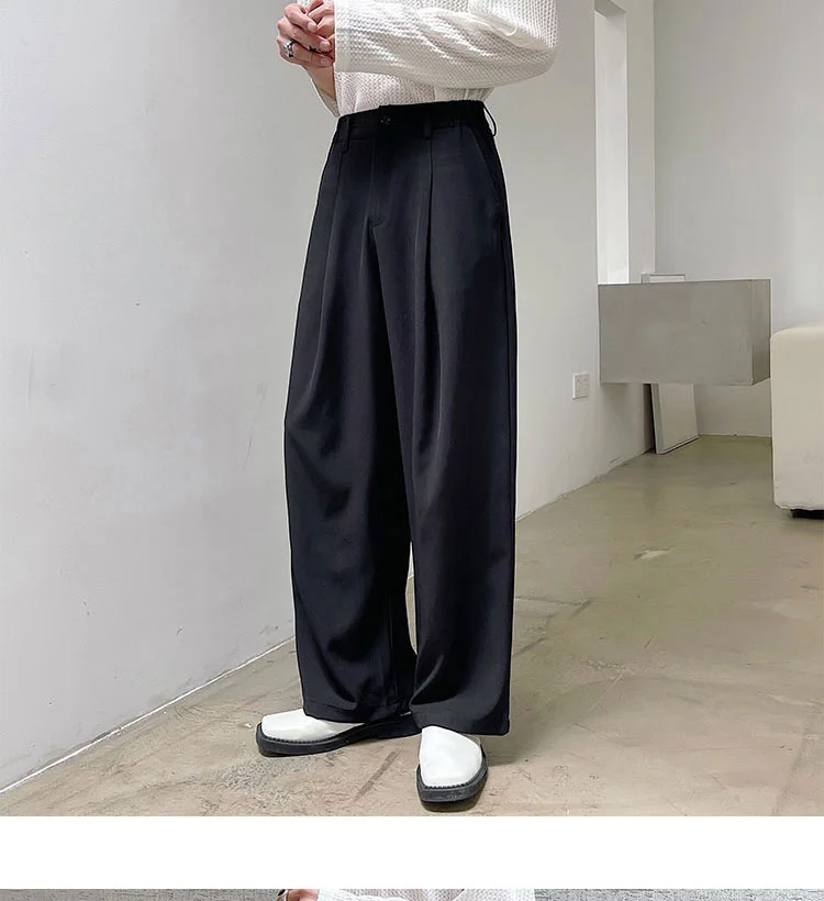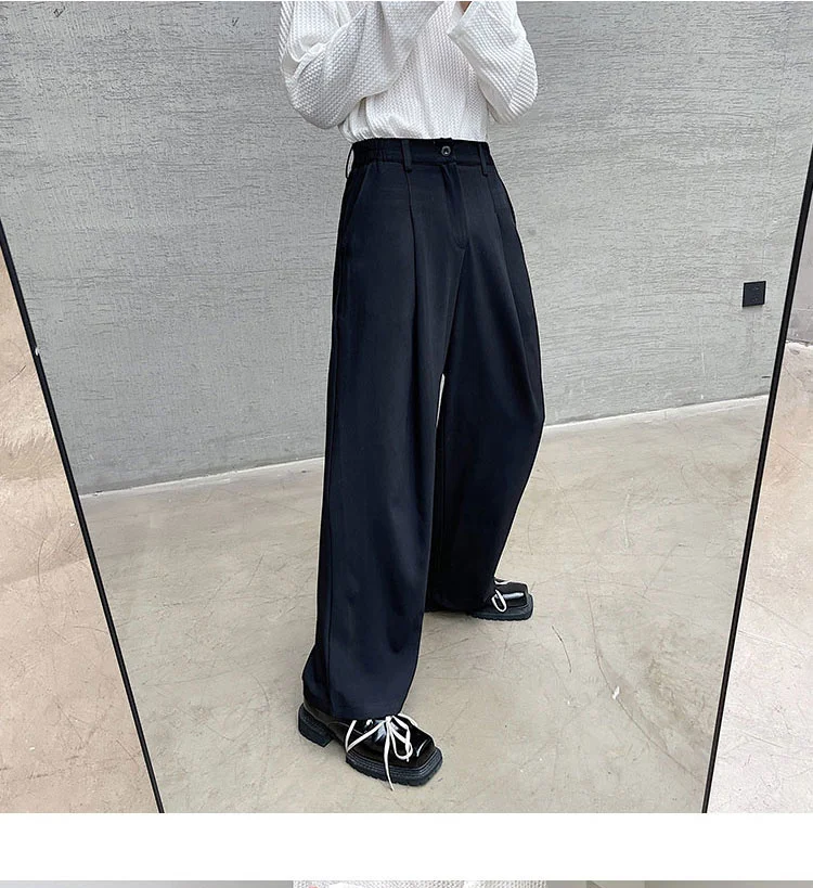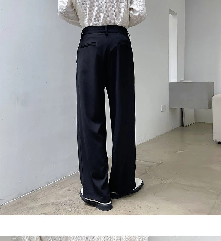 Wiaofellas - Personality Autumn Suit Pants Korean Streetwear Fahshion Simple Trend Wide Leg Floor Dragging Black Brown Trousers 2Y2743