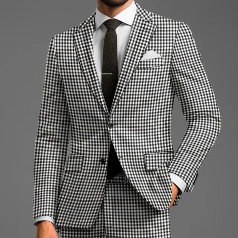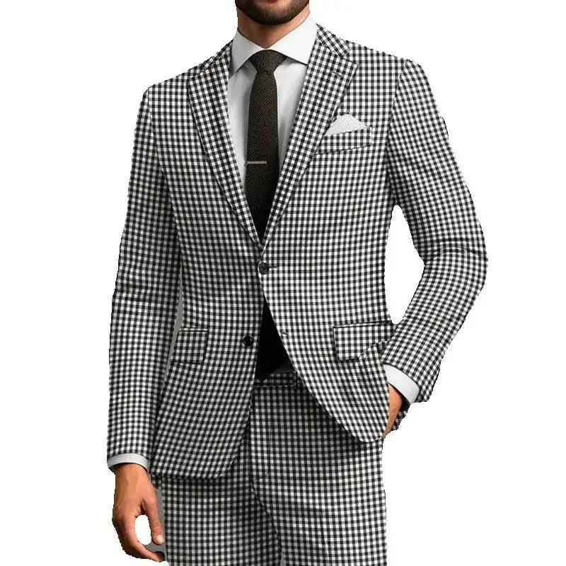Wiaofellas - Plaid Men Suits for Prom Single Breasted Wedding Tuxedo Groom Notch Laple Slim Fit Custom Made 2 Piece Jacket with Pants