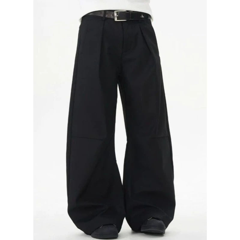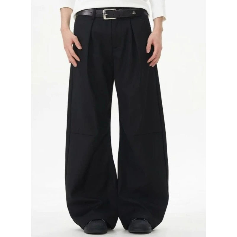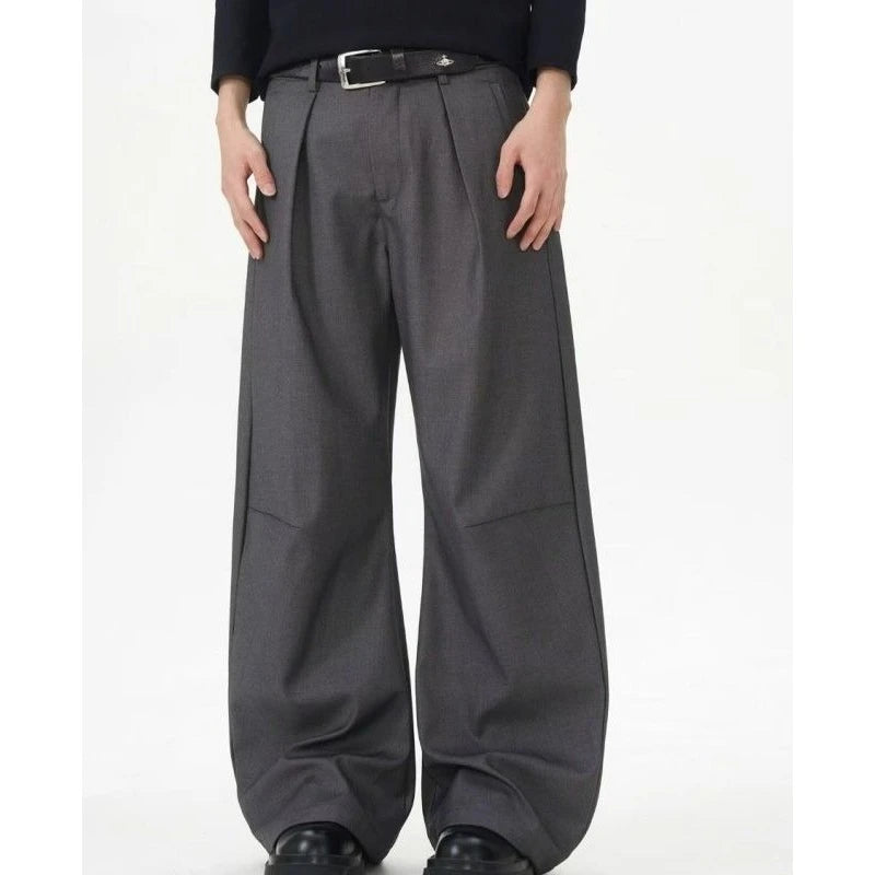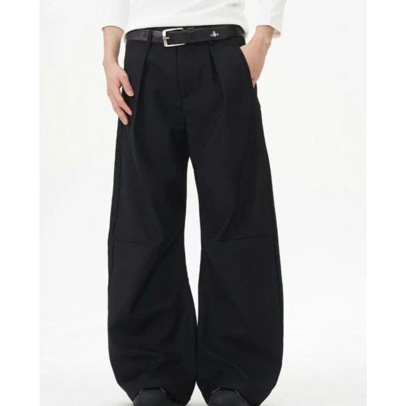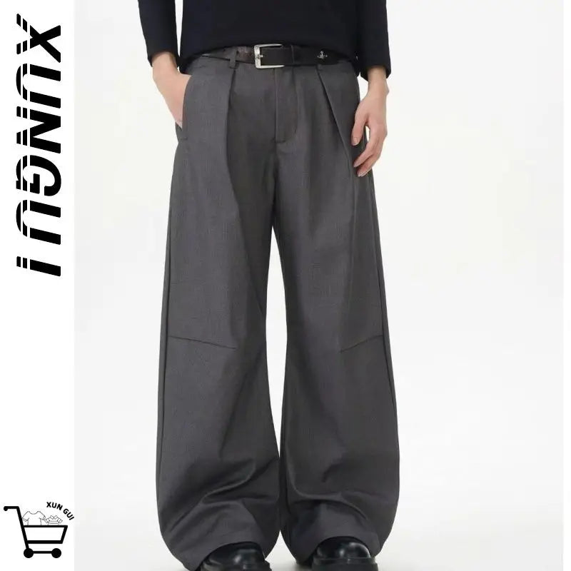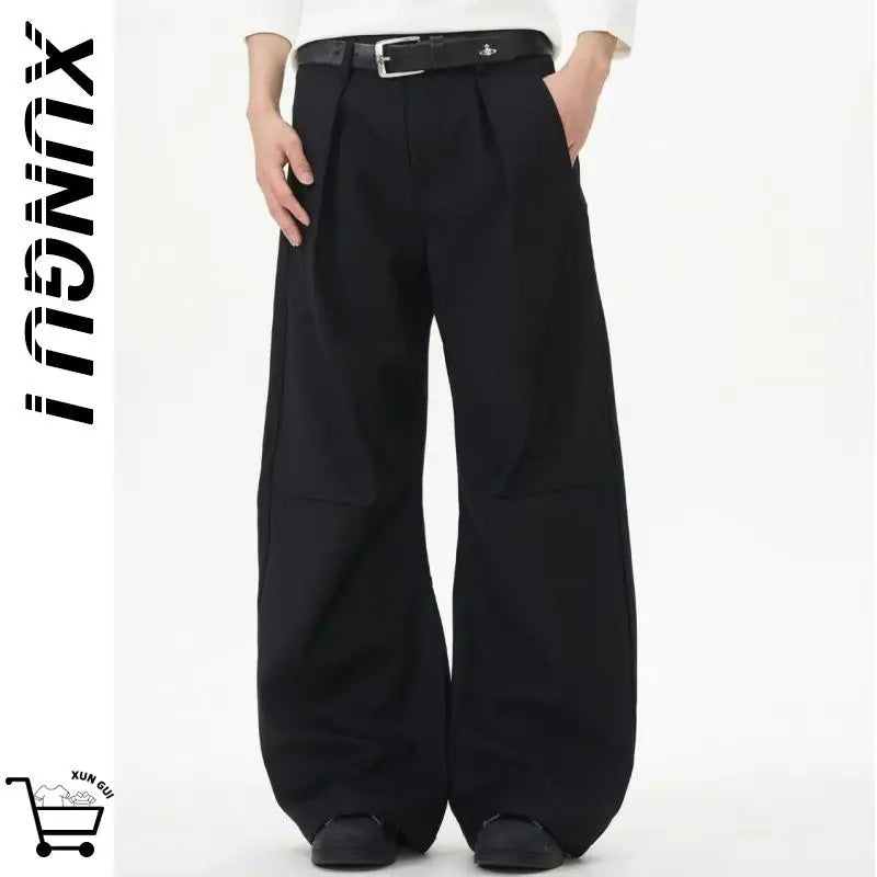 WIAOFELLAS - Pleated scimitar trousers for men in spring and autumn new trendy brand high-end loose straight trousers draped casual pants