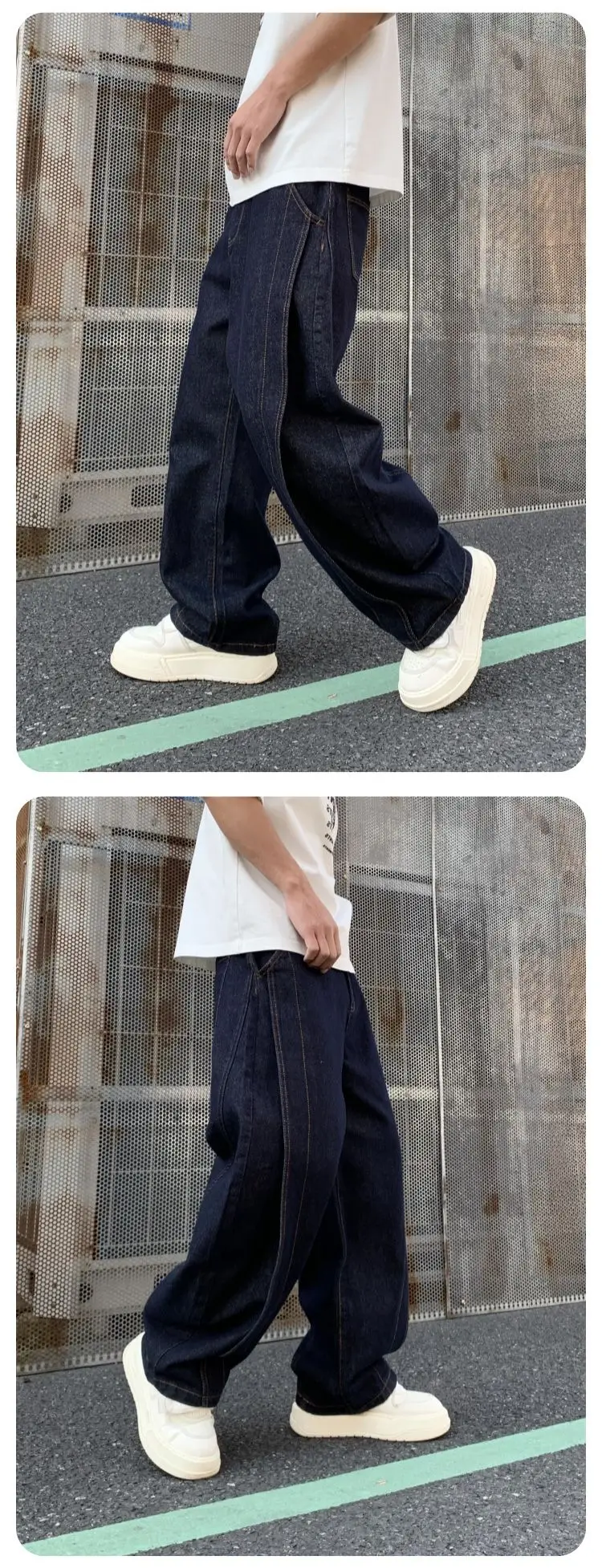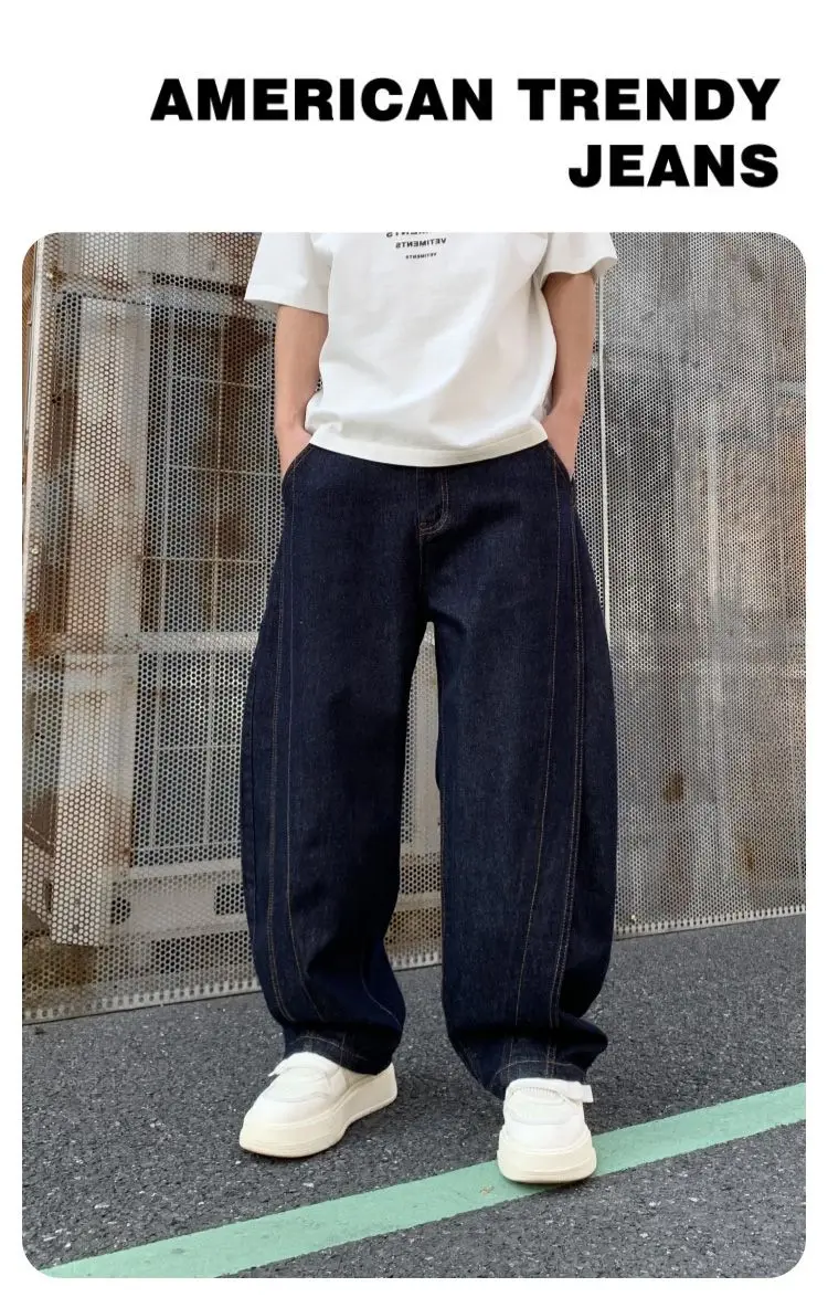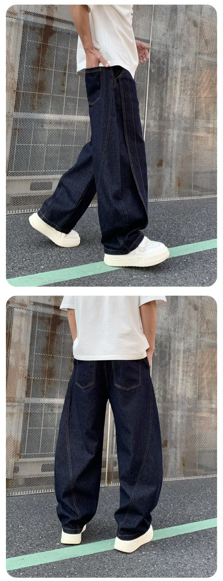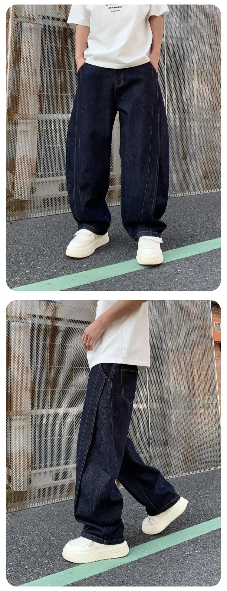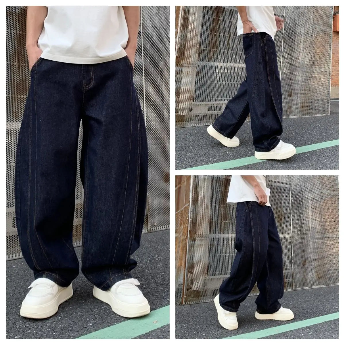 WIAOFELLAS  -  Popular Dark Blue Men's Denim Bloomers Wide Leg Y2k Pants New Spring Street Clothing