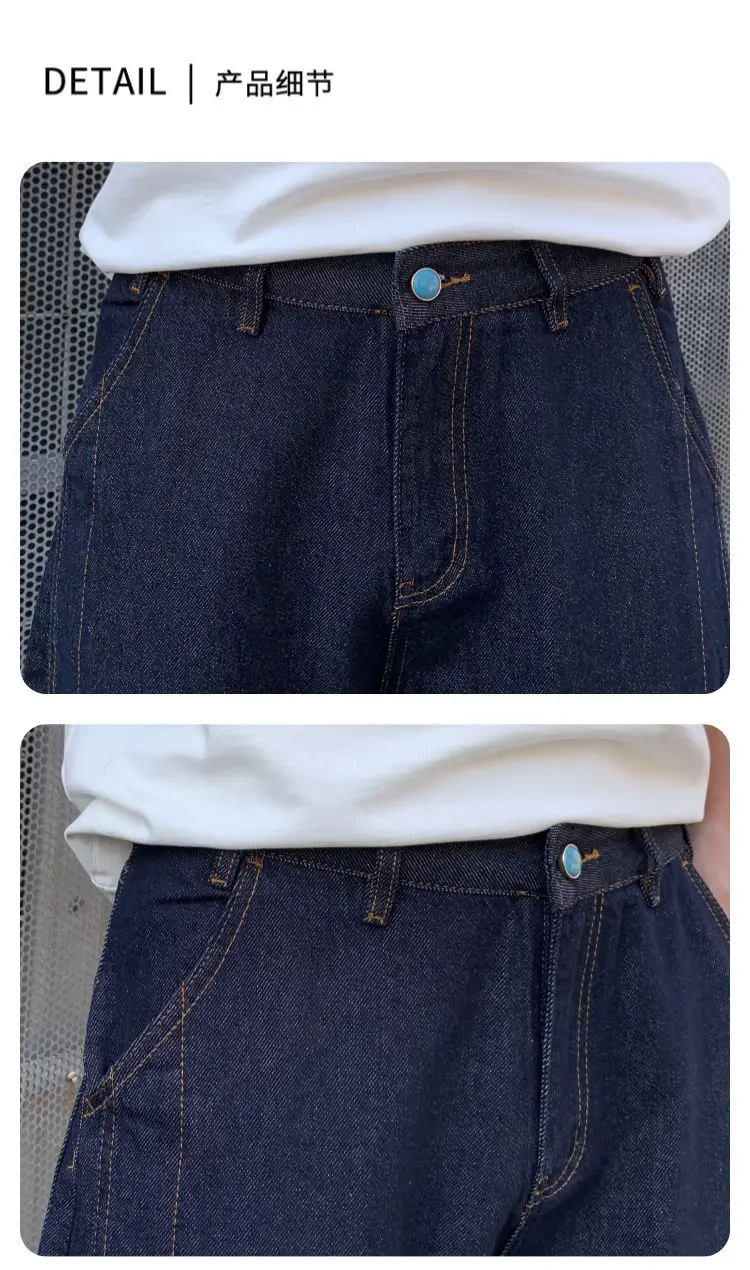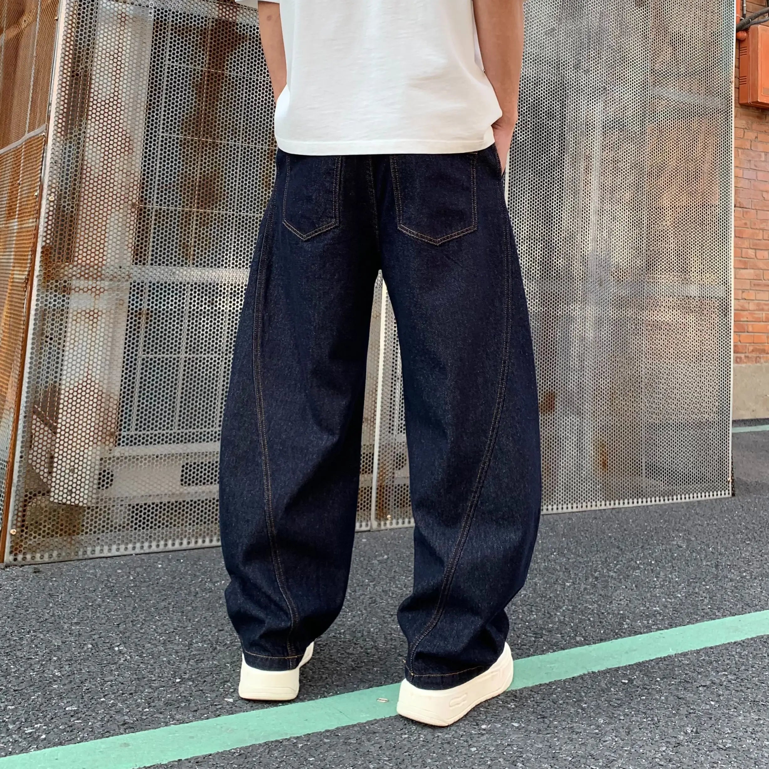 WIAOFELLAS - Popular Dark Blue Men's Denim Bloomers Wide Leg Y2k Pants New Spring Street Clothing