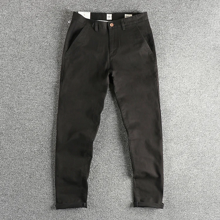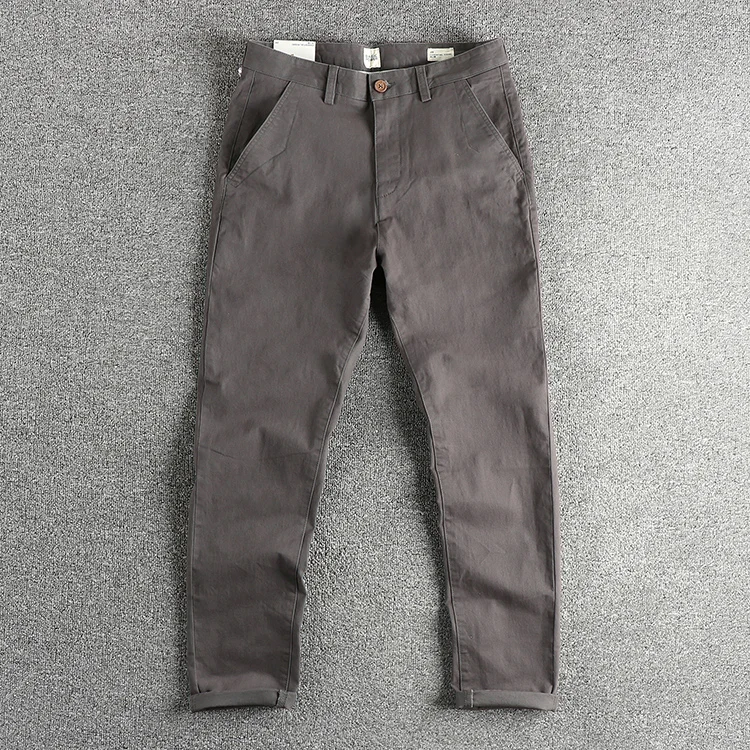 WIAOFELLAS - Retro trend woven cotton elastic casual pants men spring and autumn all fit small straight leg pants