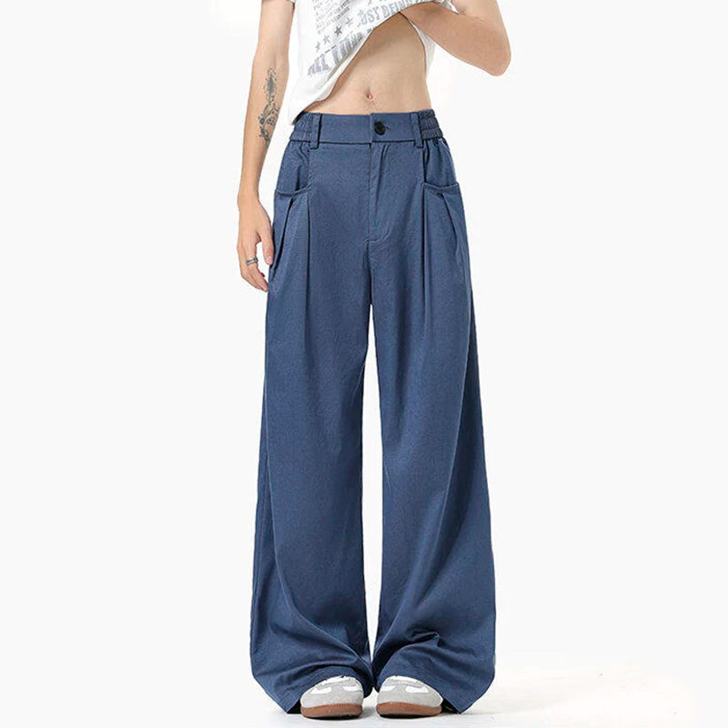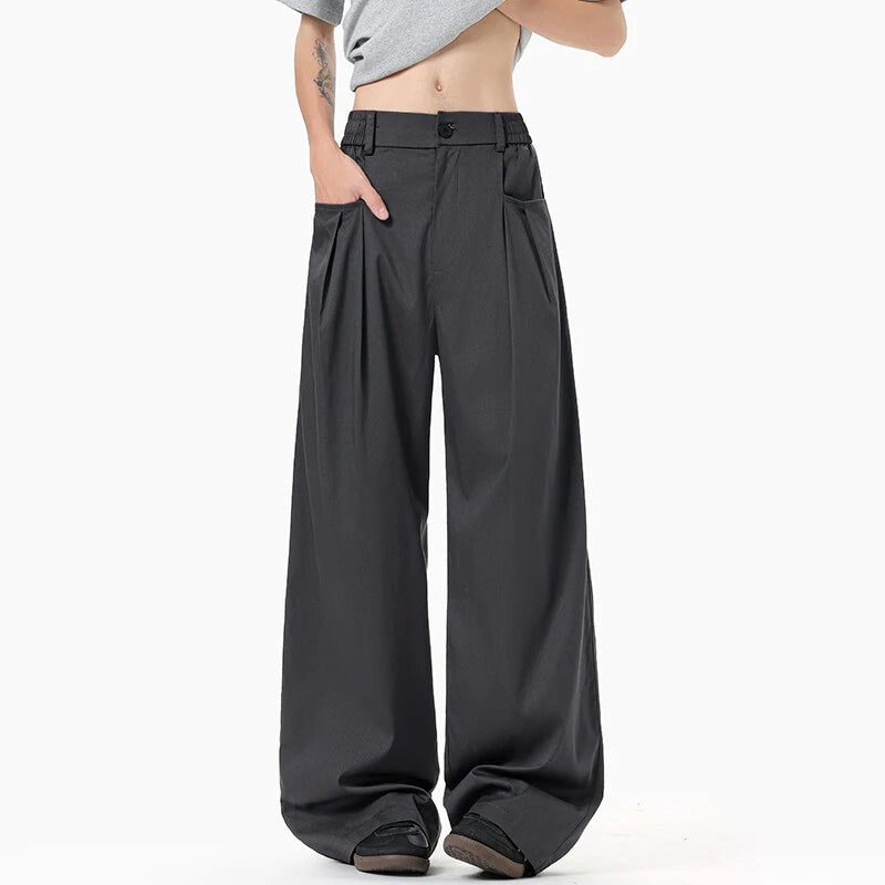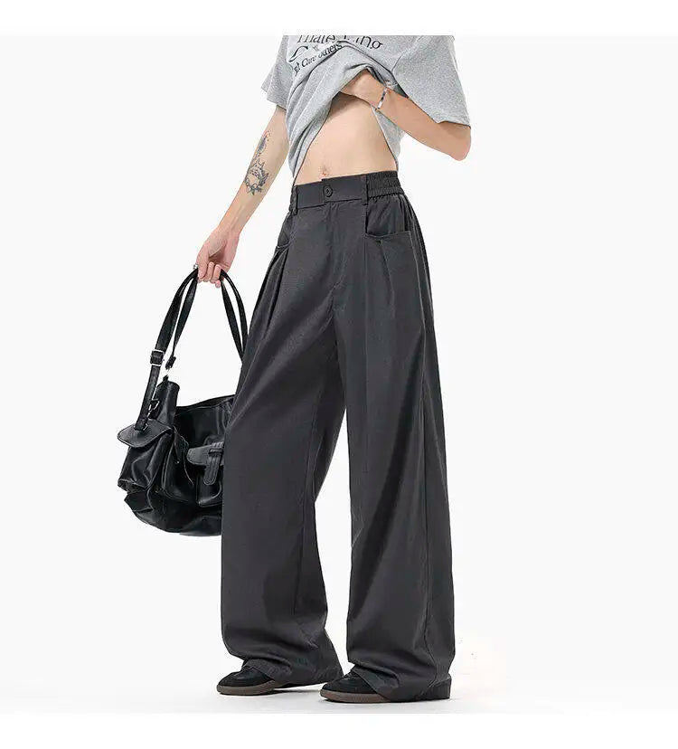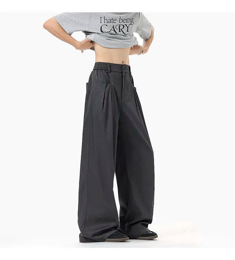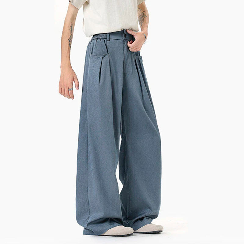 WIAOFELLAS - simple men's casual trousers pleated design new solid color wide leg bottom loose straight thin male pants summer