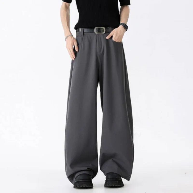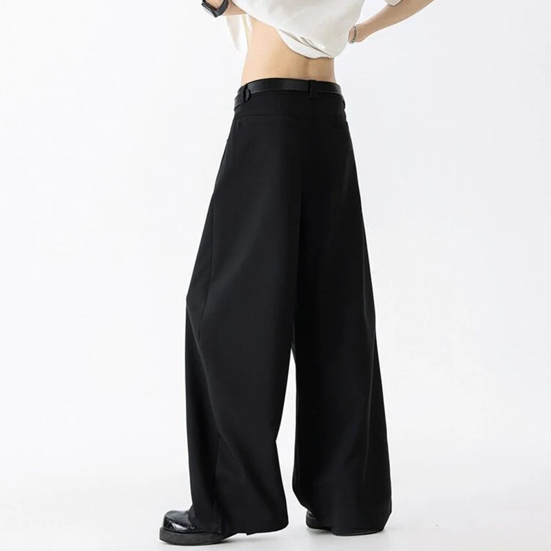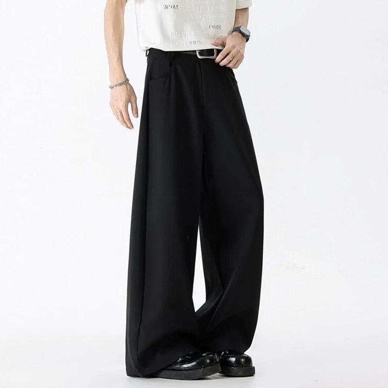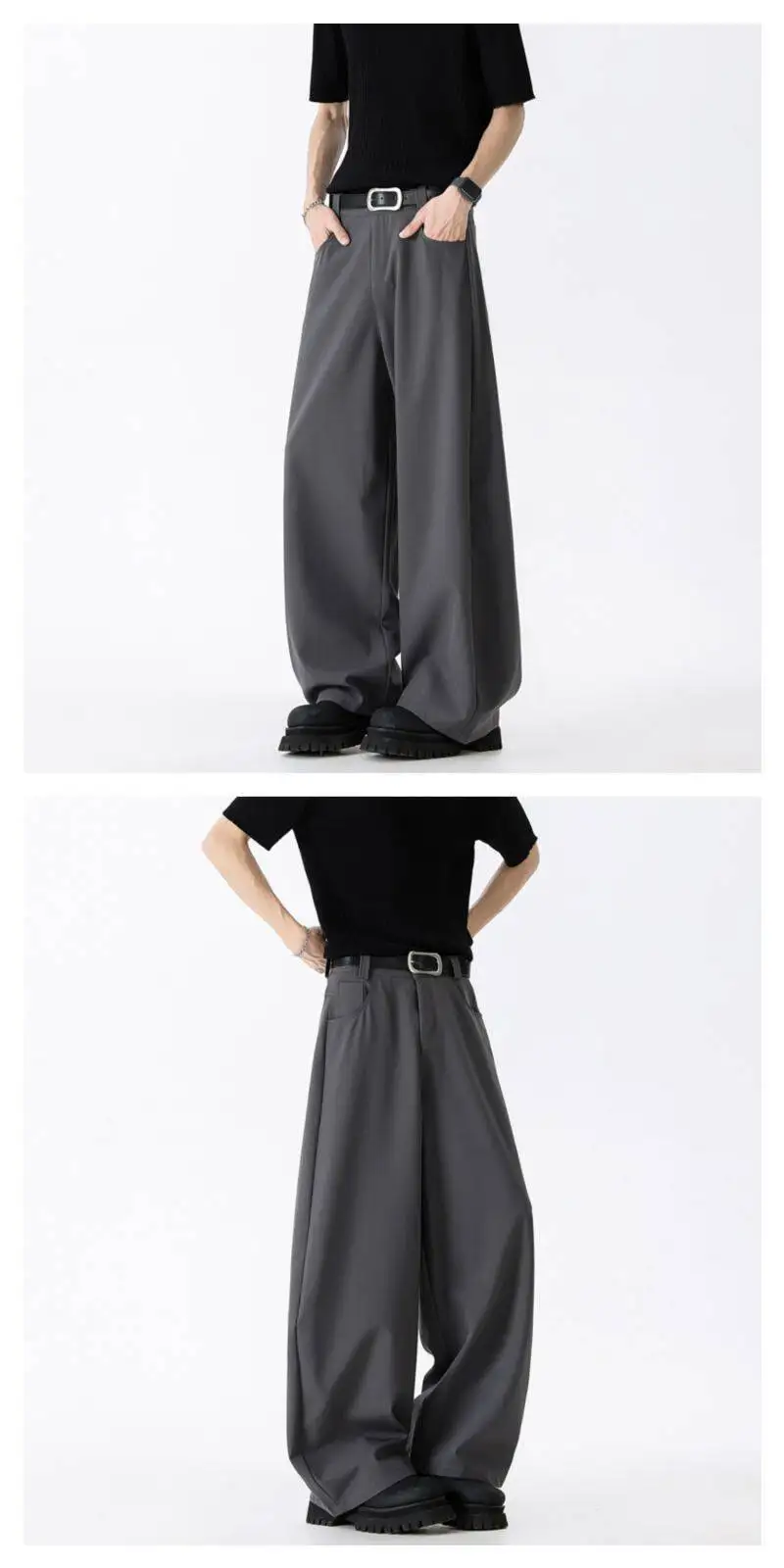 WIAOFELLAS - Simple Men's Suit Pants Solid Color Straight Wide Leg Summer Bottom Korean Silhouette Drape Cleanfit Male Trousers