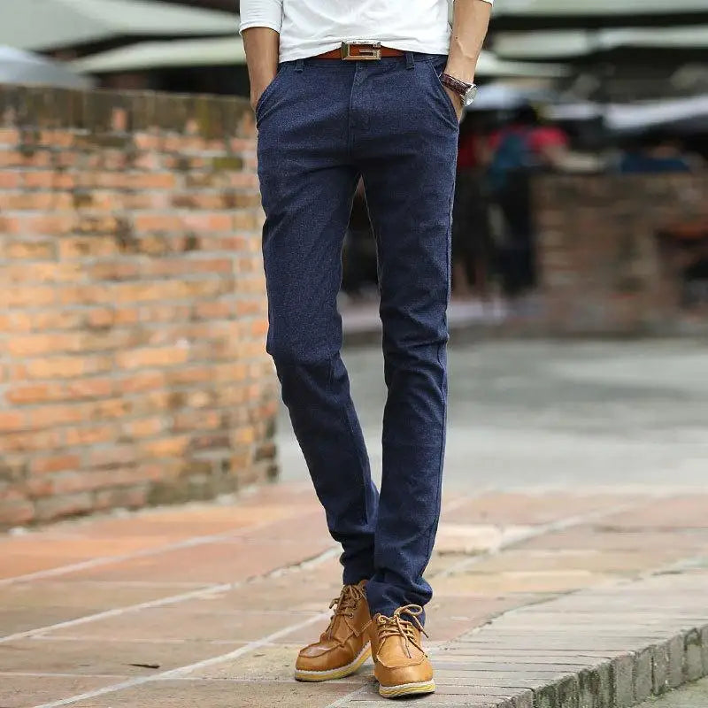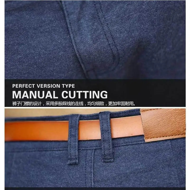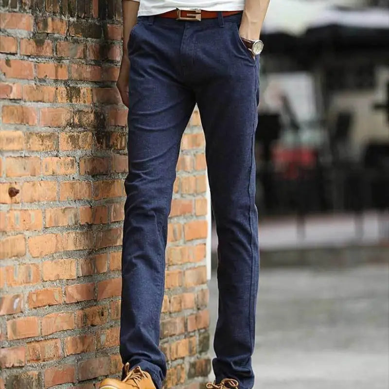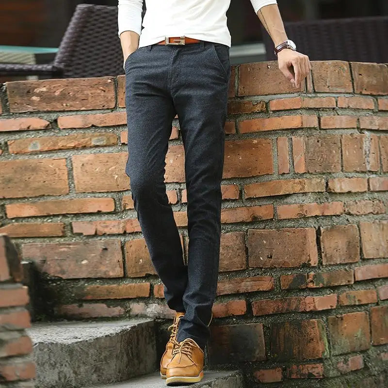 WIAOFELLAS  -  Size 28-38 Men Casual Pants Spring Autumn  Casual Cotton Slim  Straight  Long Business Chinos Slacks Black Blue