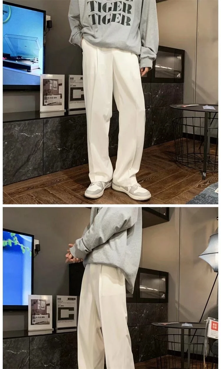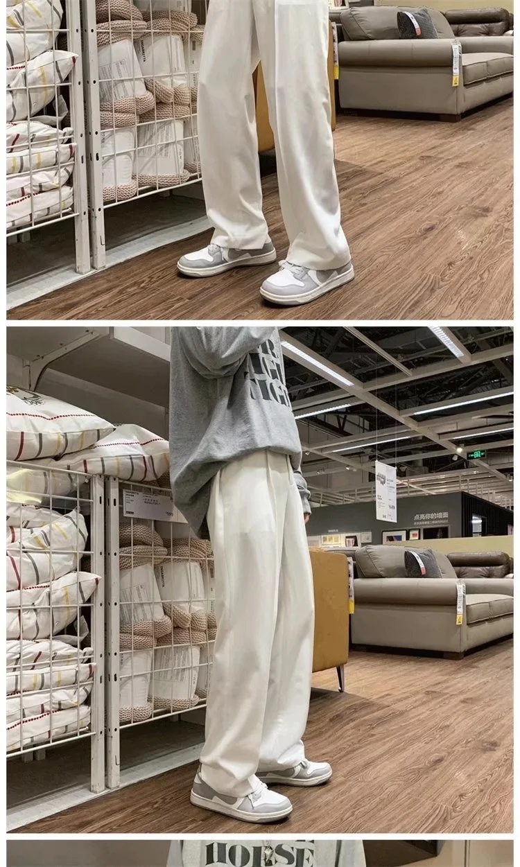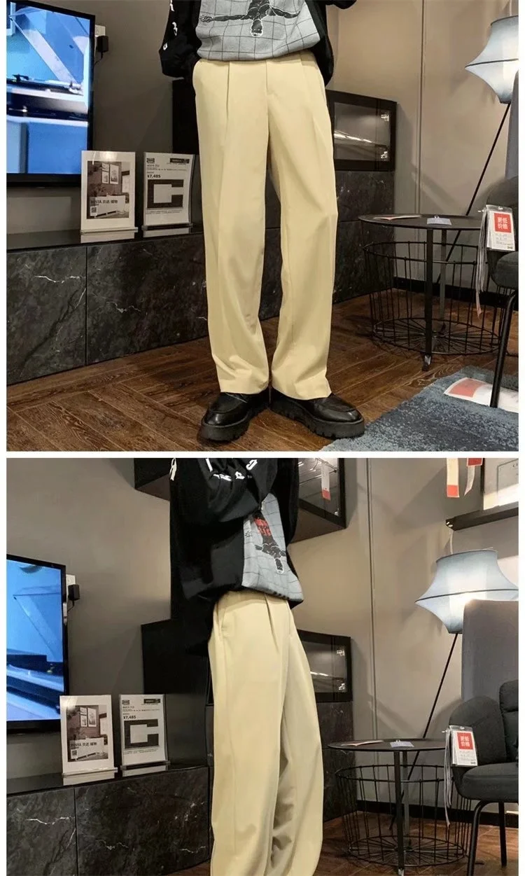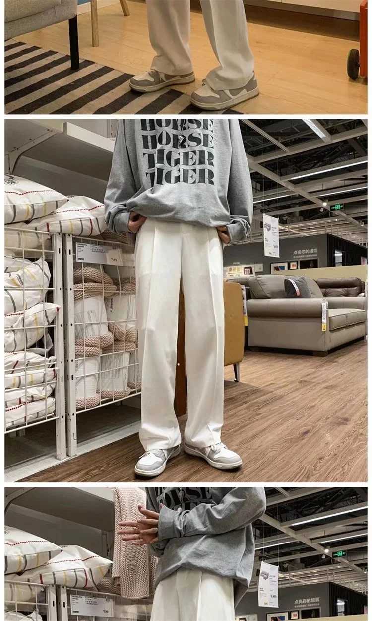 Wiaofellas Solid Color Suit Pants Spring Autumn Versatile Fashion Business Casual Loose Pants Loose Straight Wide Leg Trousers Thin