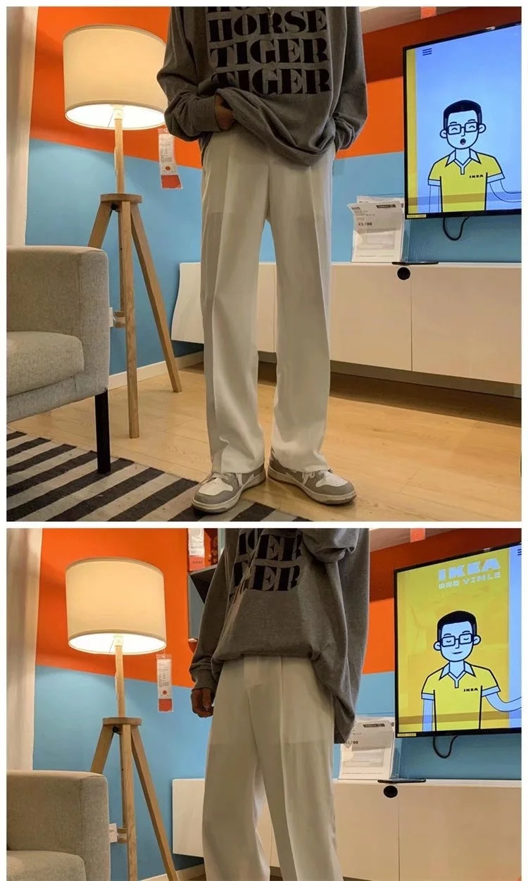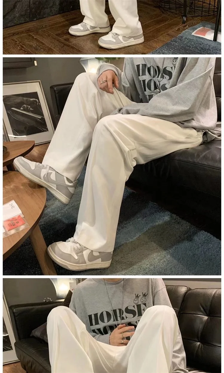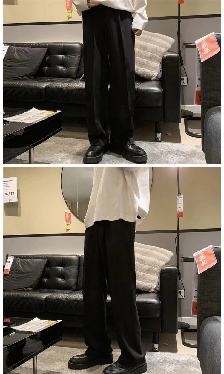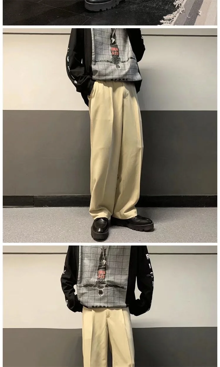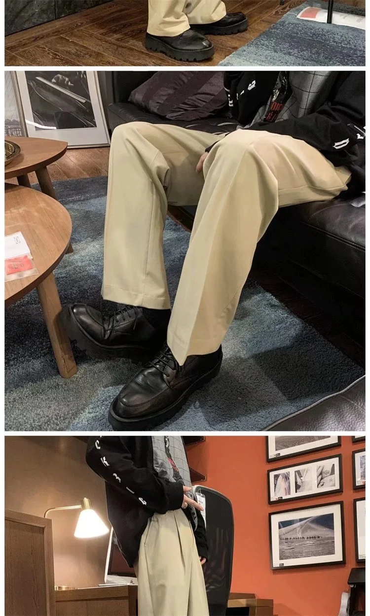 Wiaofellas Solid Color Suit Pants Spring Autumn Versatile Fashion Business Casual Loose Pants Loose Straight Wide Leg Trousers Thin