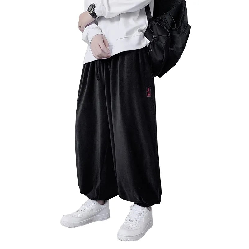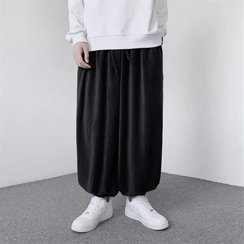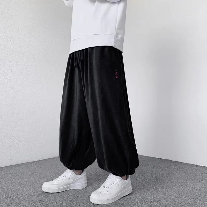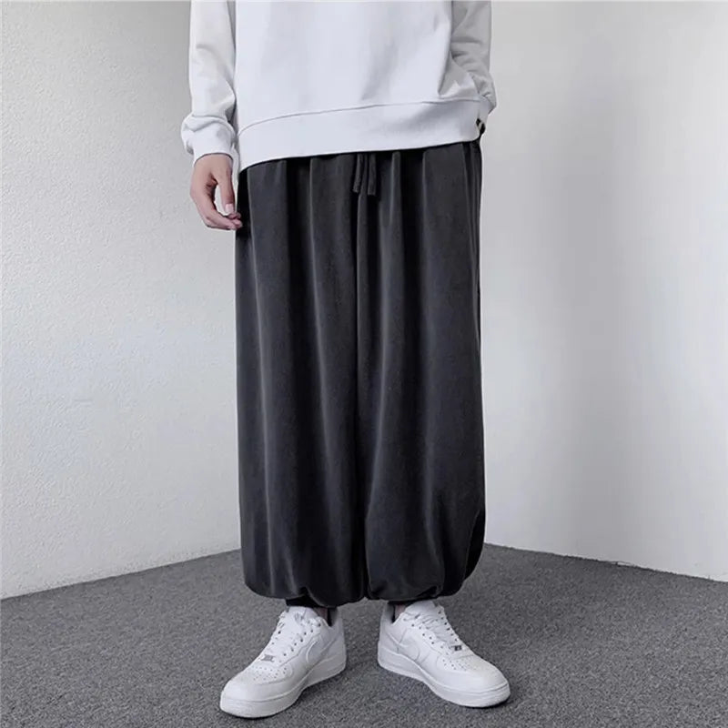 WIAOFELLAS  -  Spring Autumn Casual Pants Men Solid Loose Harem Pants Elastic Waist Wide Leg Trousers Male Harajuku Jogging Sports Trousers Man