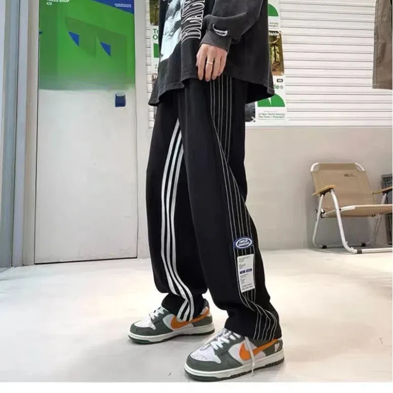 WIAOFELLAS  -  Spring Autumn Contrast Color Bloomers Trousers Pockets Elastic High Waisted Striped Men's Clothing England Style Casual Pants